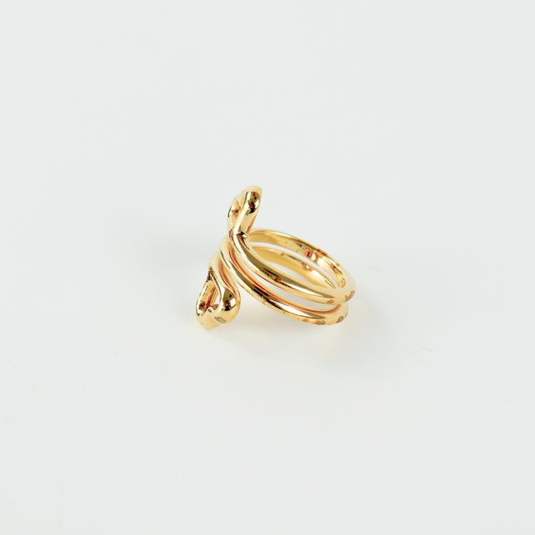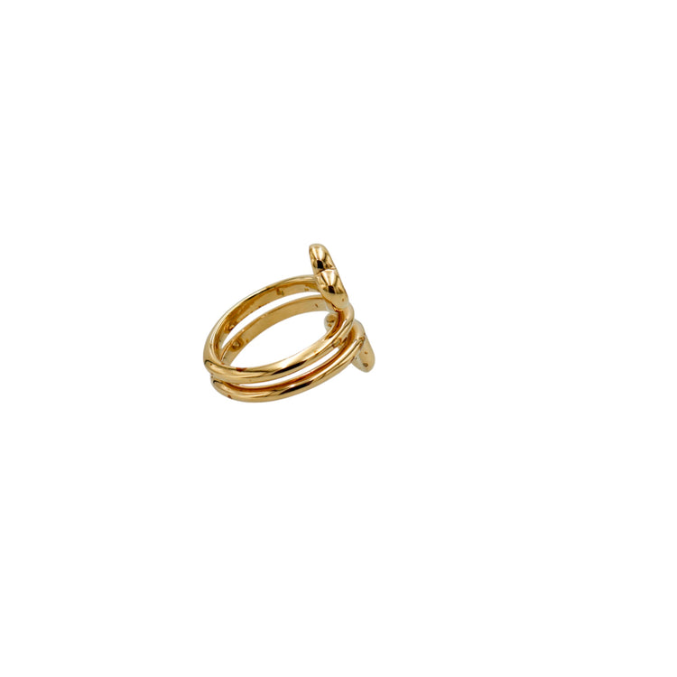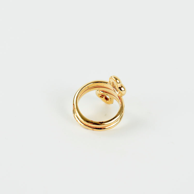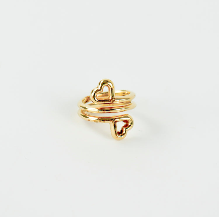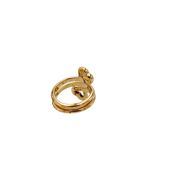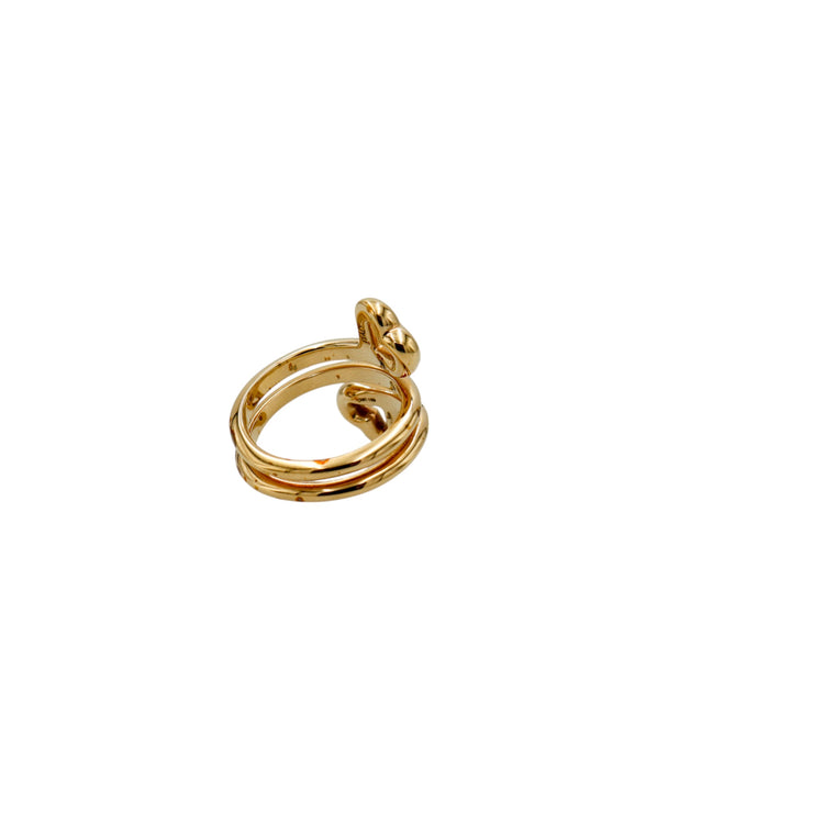 Anillo Louis Vuitton # 6, con diseño de doble corazón en espiral, fabricado en metal con baño dorado.