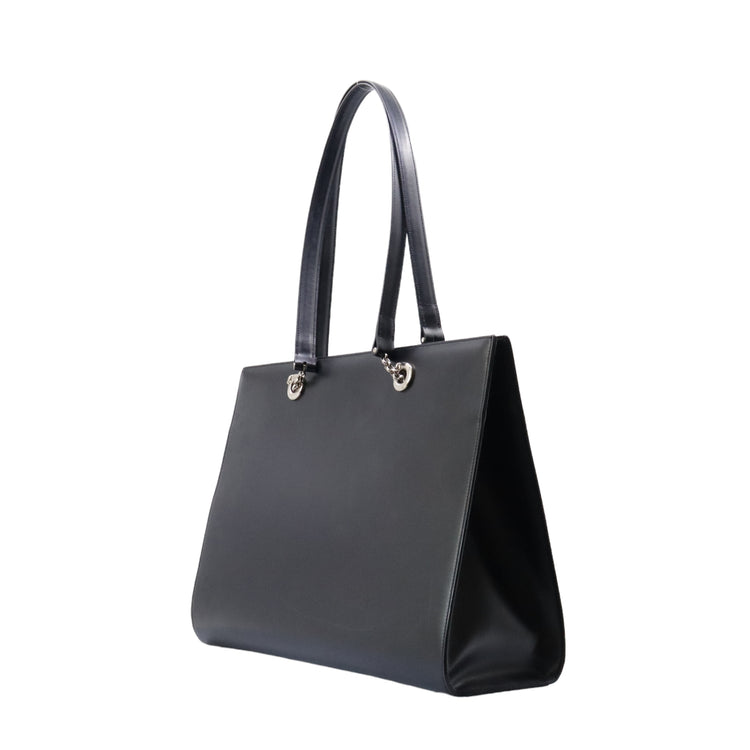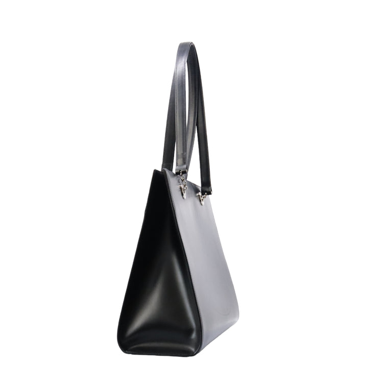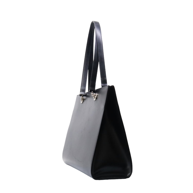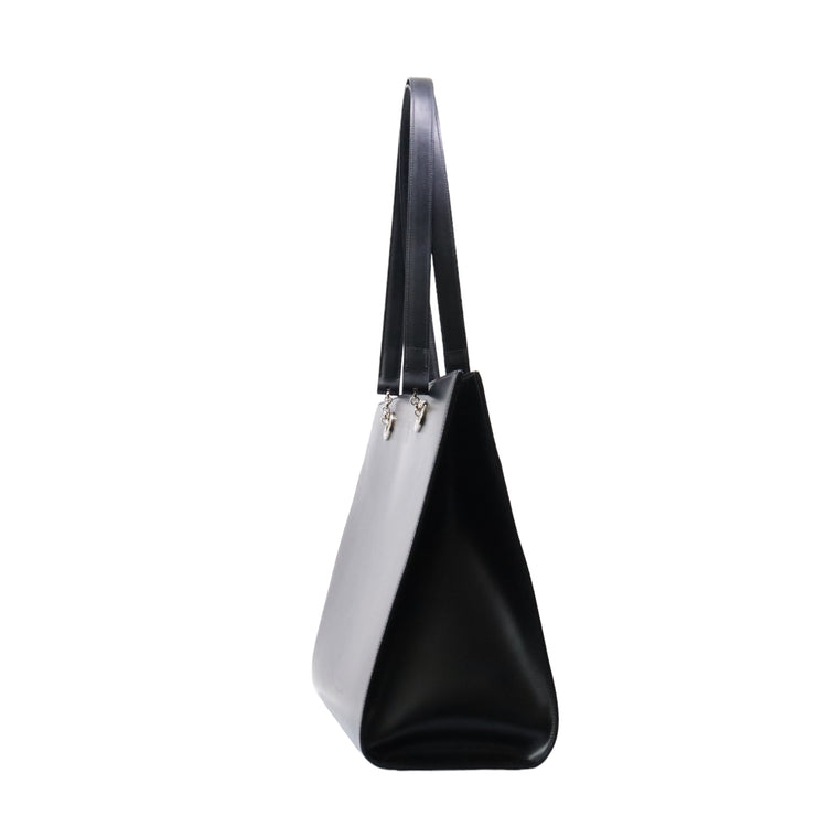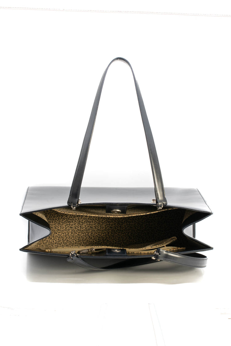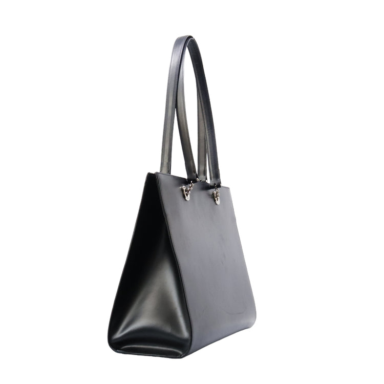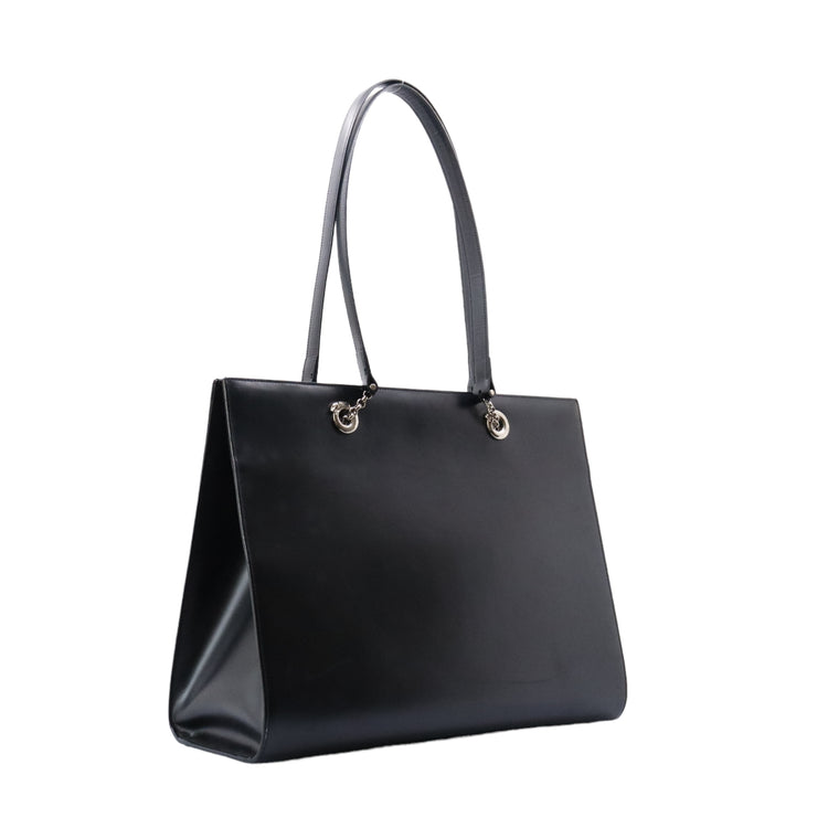 Bolso Tote Cartier modelo Panthere confeccionado en piel color negro, forro interno en tela con grabado en animal print, con 2 asas desmontables en piel con herrajes metálicos, 3 compartimentos internos uno de ellos con cierre de cremallera y cierre principal con botón magnético, poco uso. Buen estado, no cuenta con Dustbag.