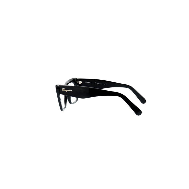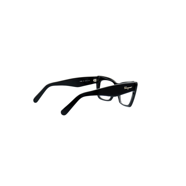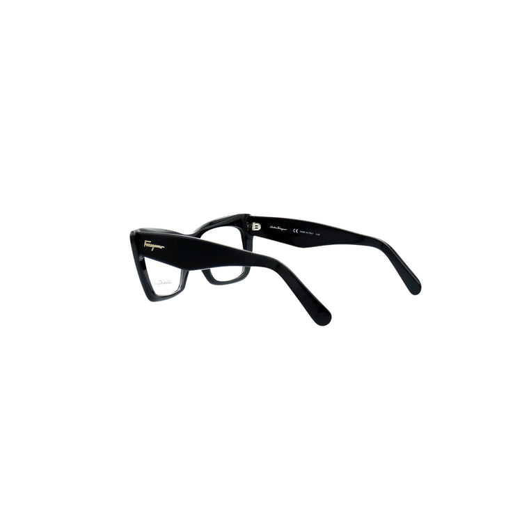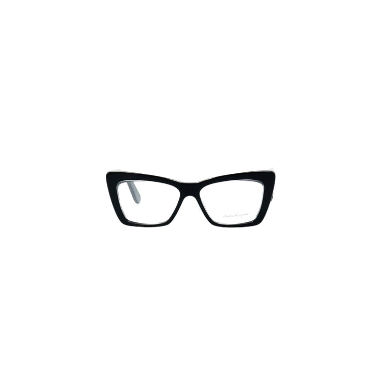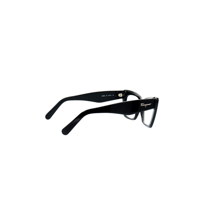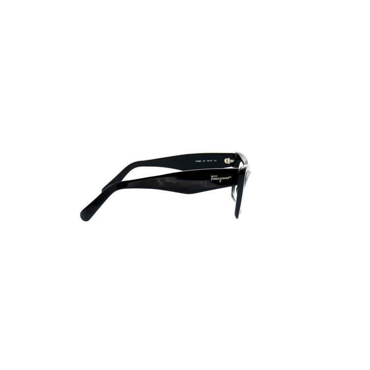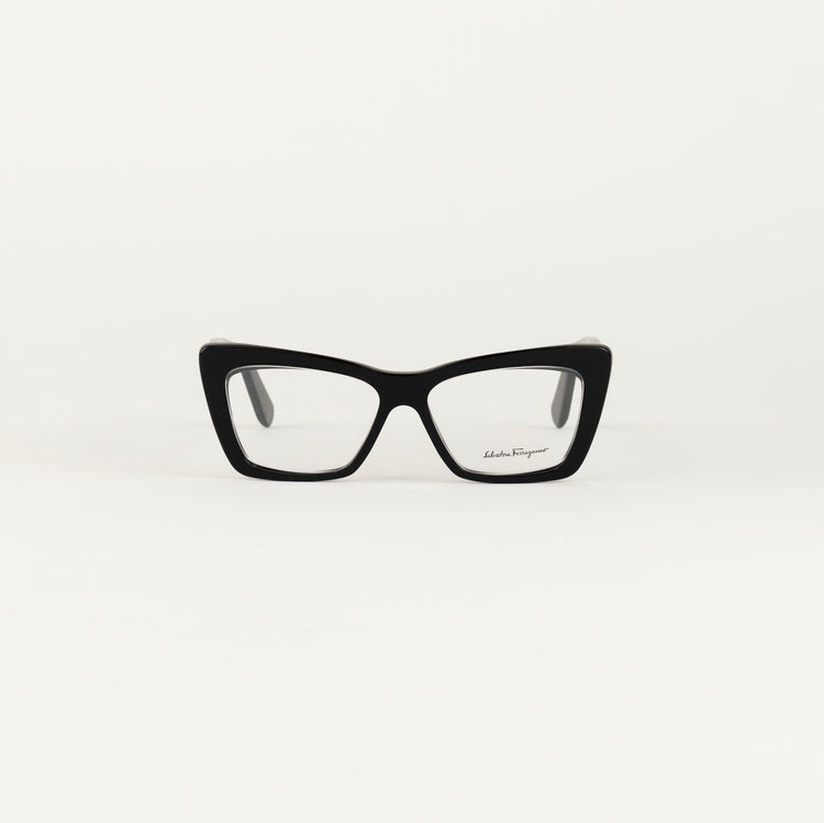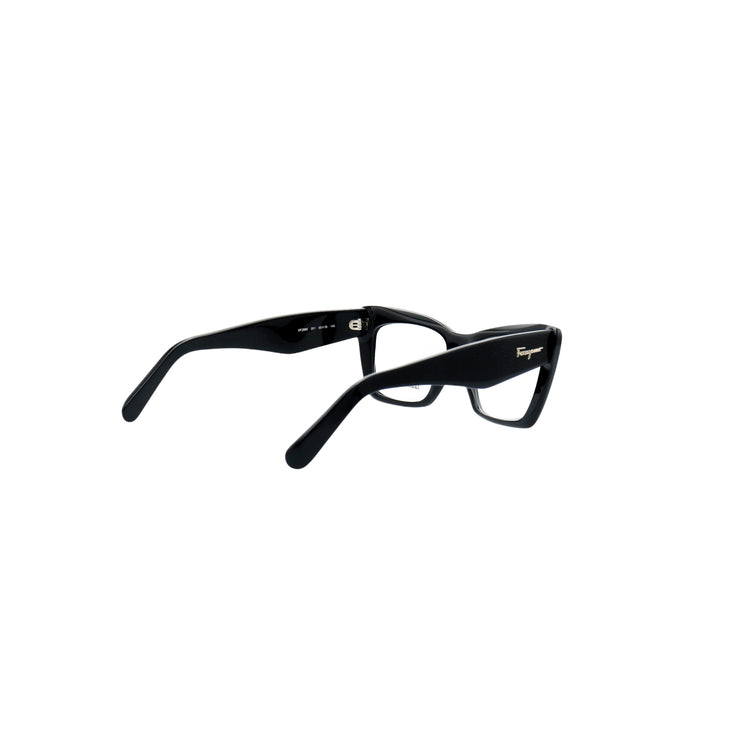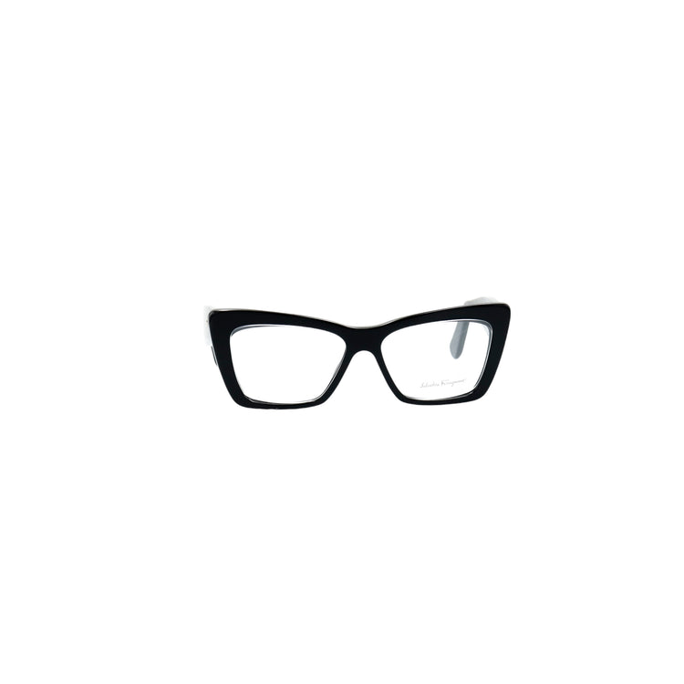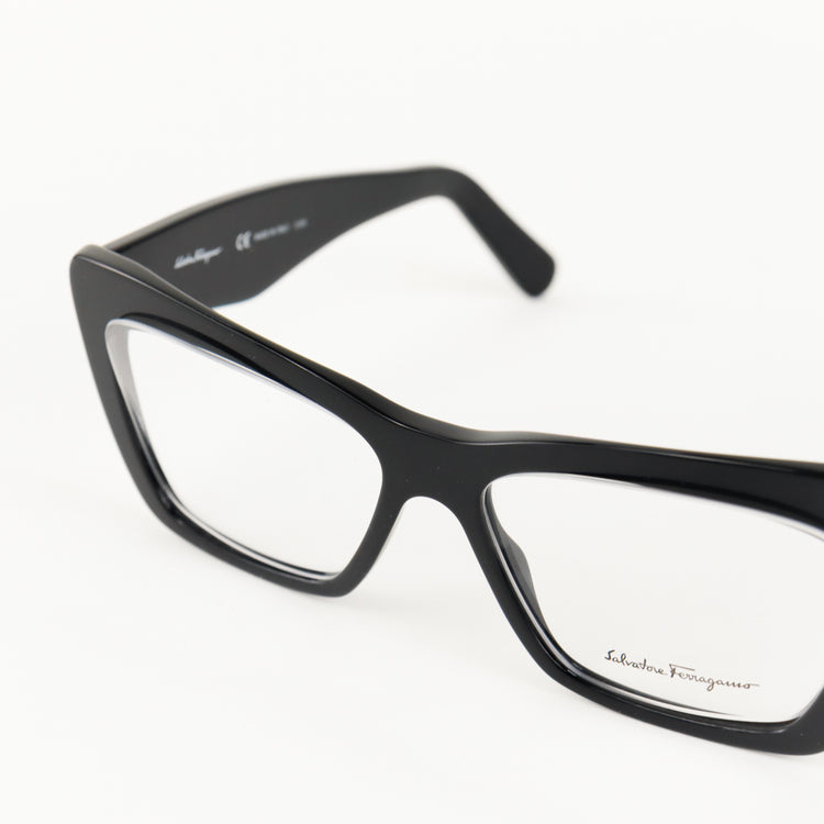 Armazón para micas oftálmicas graduables de la marca Salvatore Ferragamo modelo SF2865, en forma ojo de gato, confeccionado en acetato con alma de acero, con leves rayones en una de las varillas.