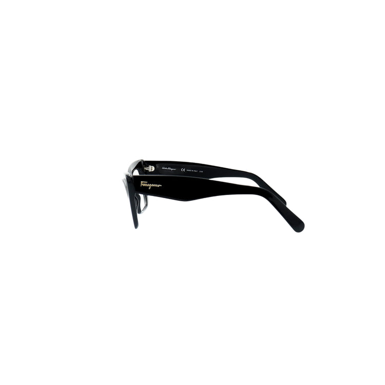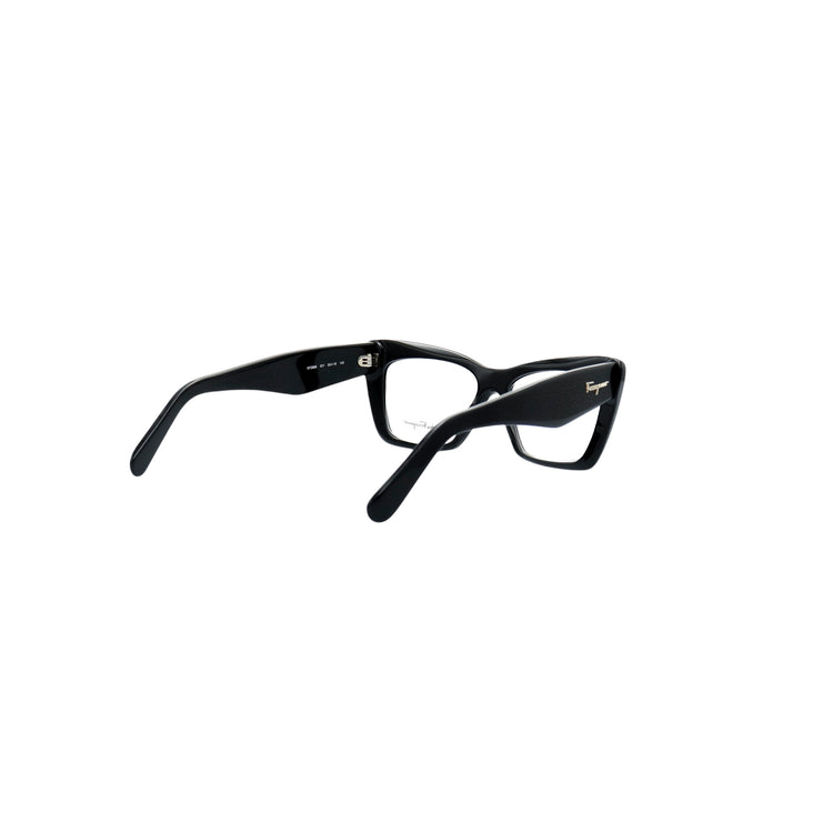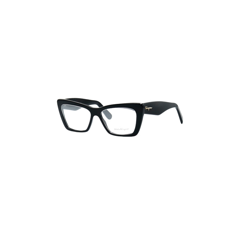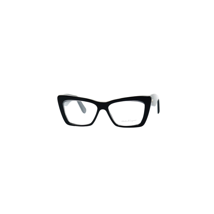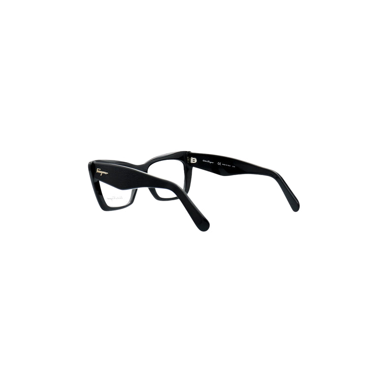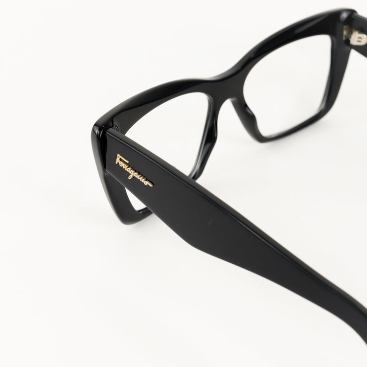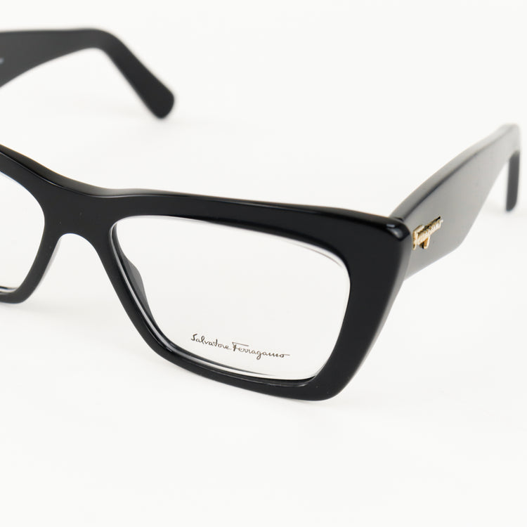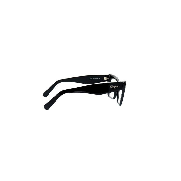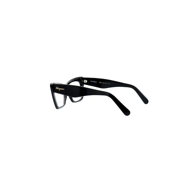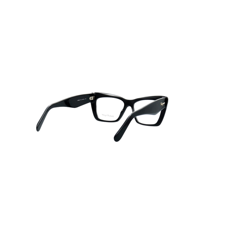 Armazón para micas oftálmicas graduables de la marca Salvatore Ferragamo modelo SF2865, en forma ojo de gato, confeccionado en acetato con alma de acero, con leves rayones en una de las varillas.