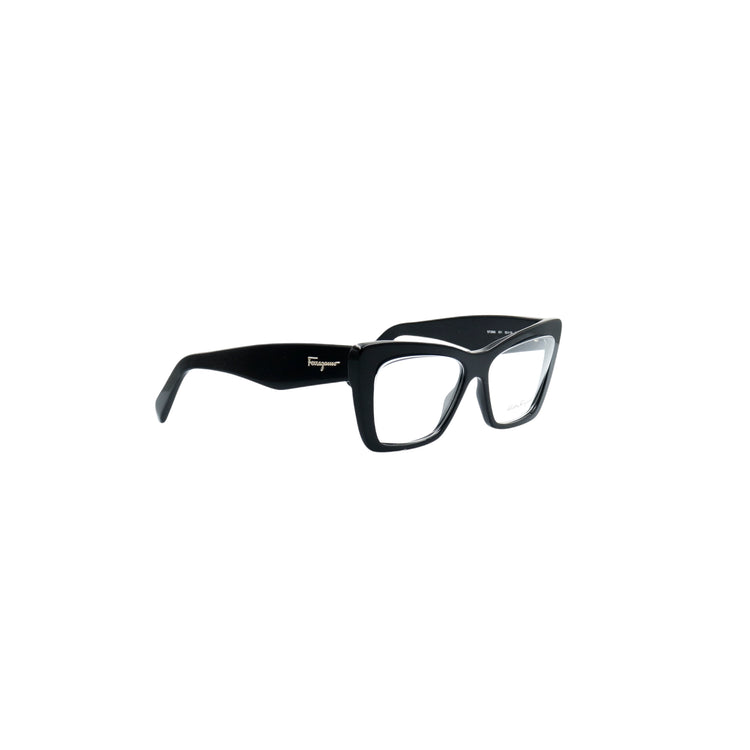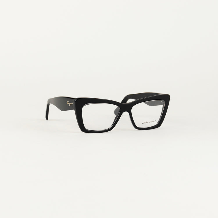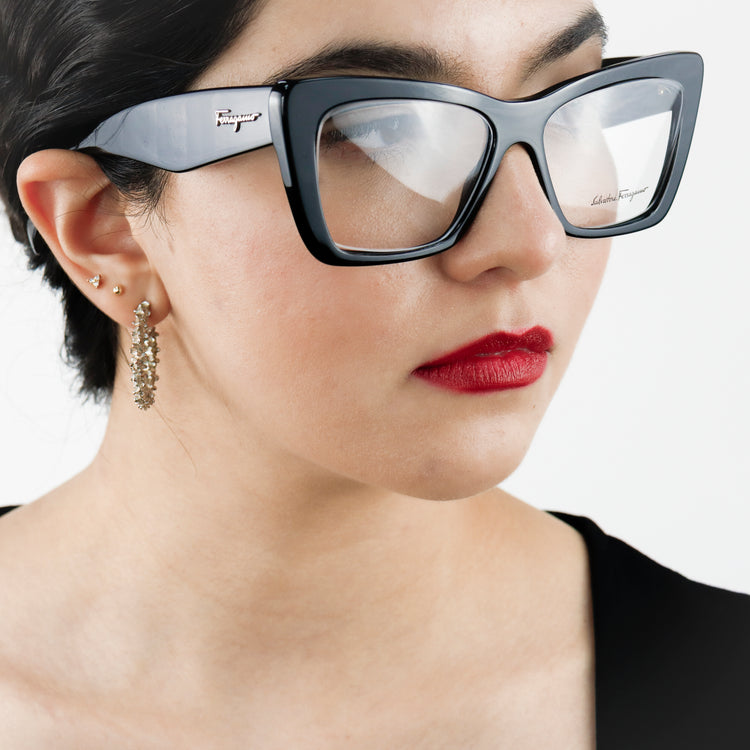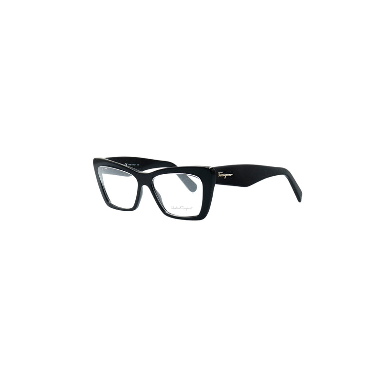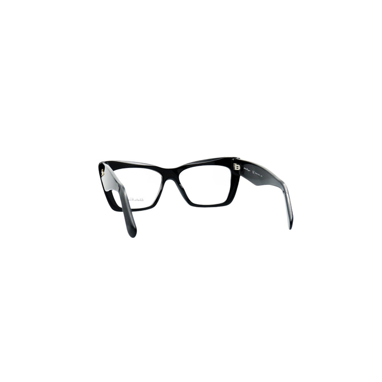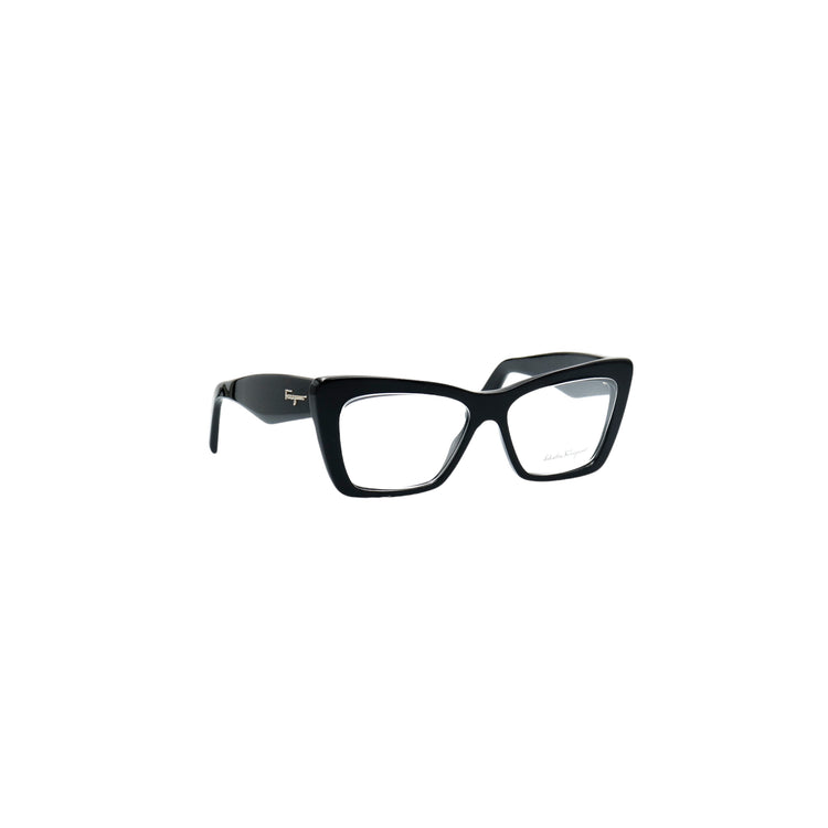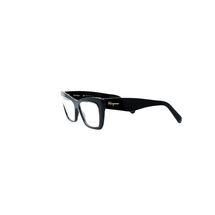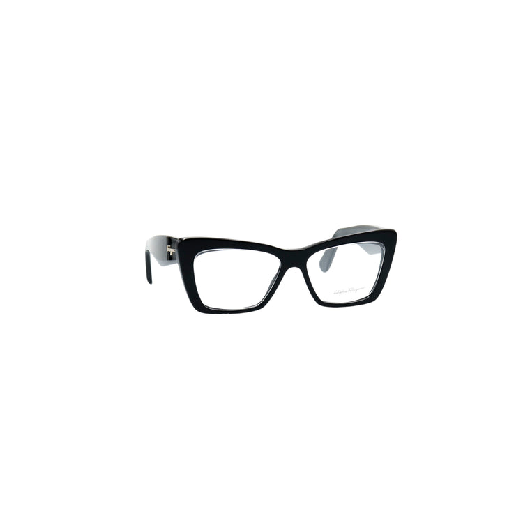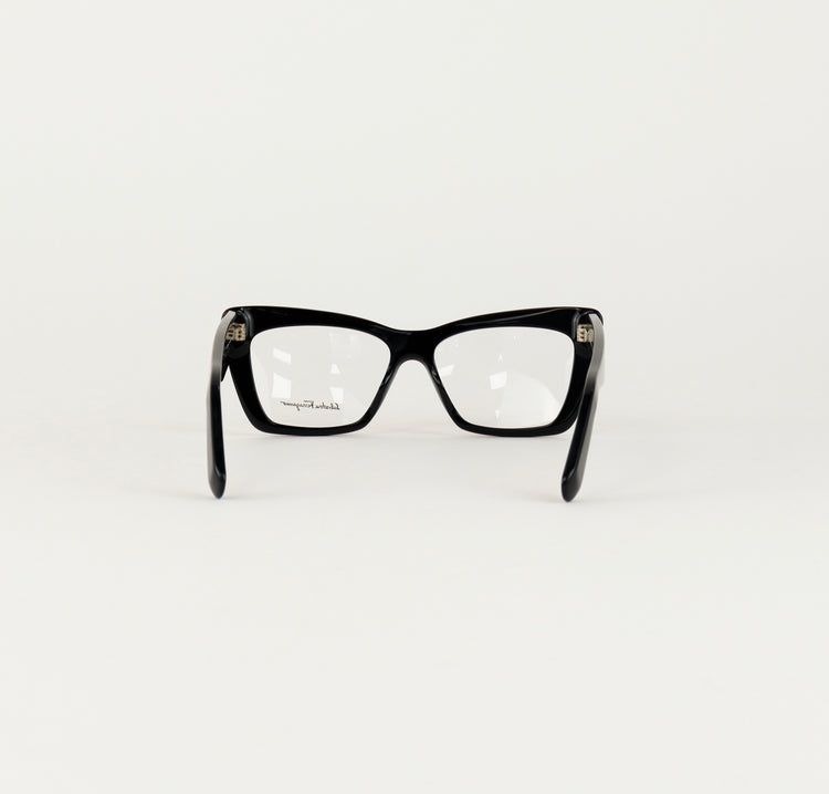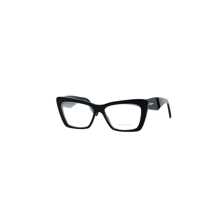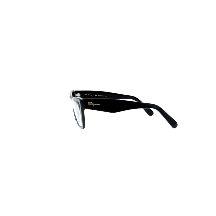Armazón para micas oftálmicas graduables de la marca Salvatore Ferragamo modelo SF2865, en forma ojo de gato, confeccionado en acetato con alma de acero, con leves rayones en una de las varillas.