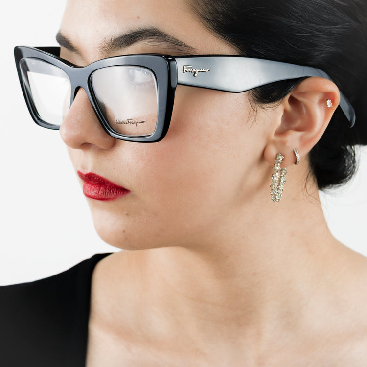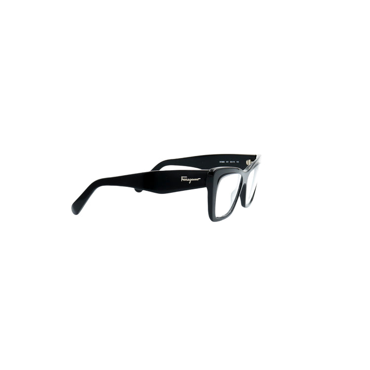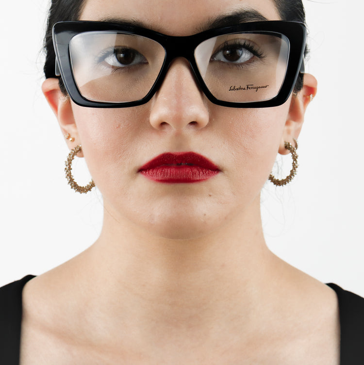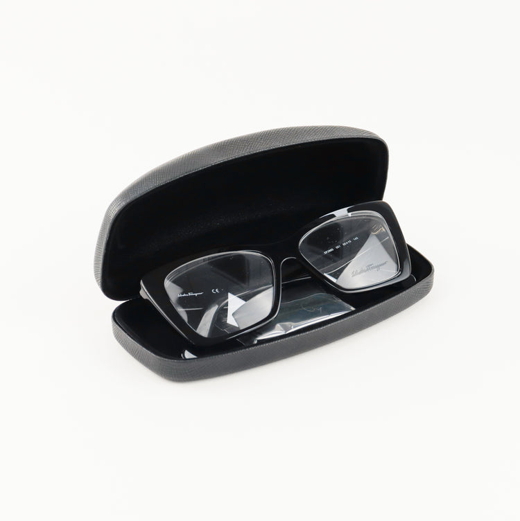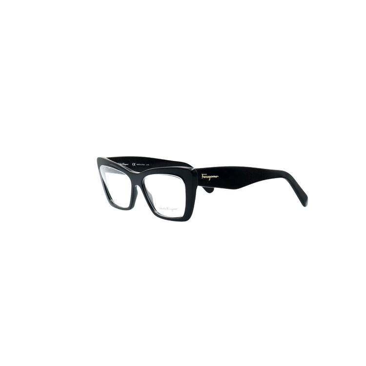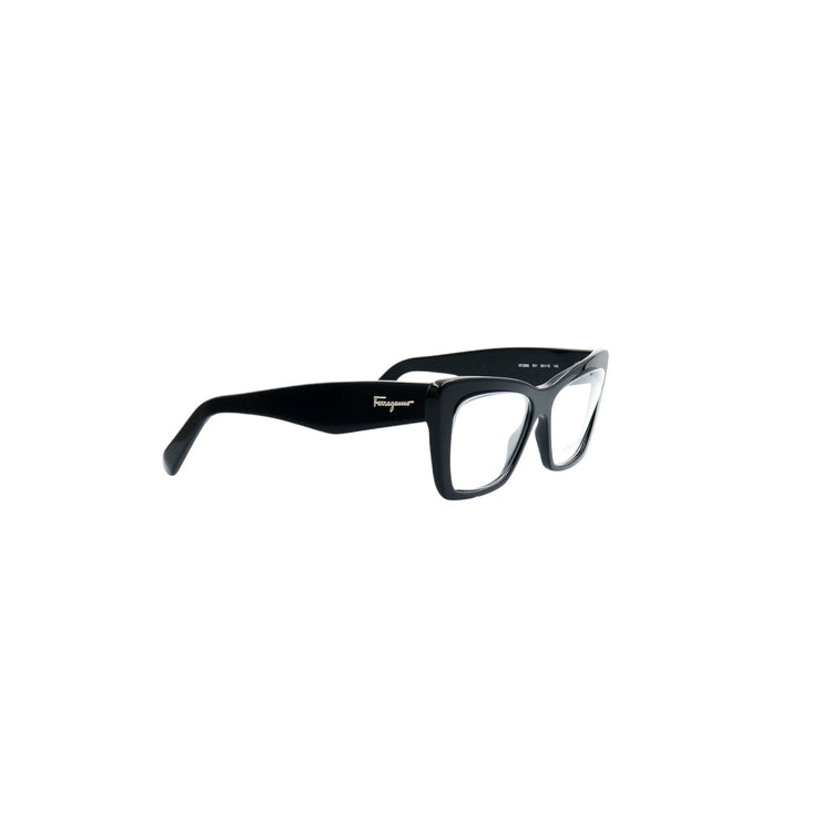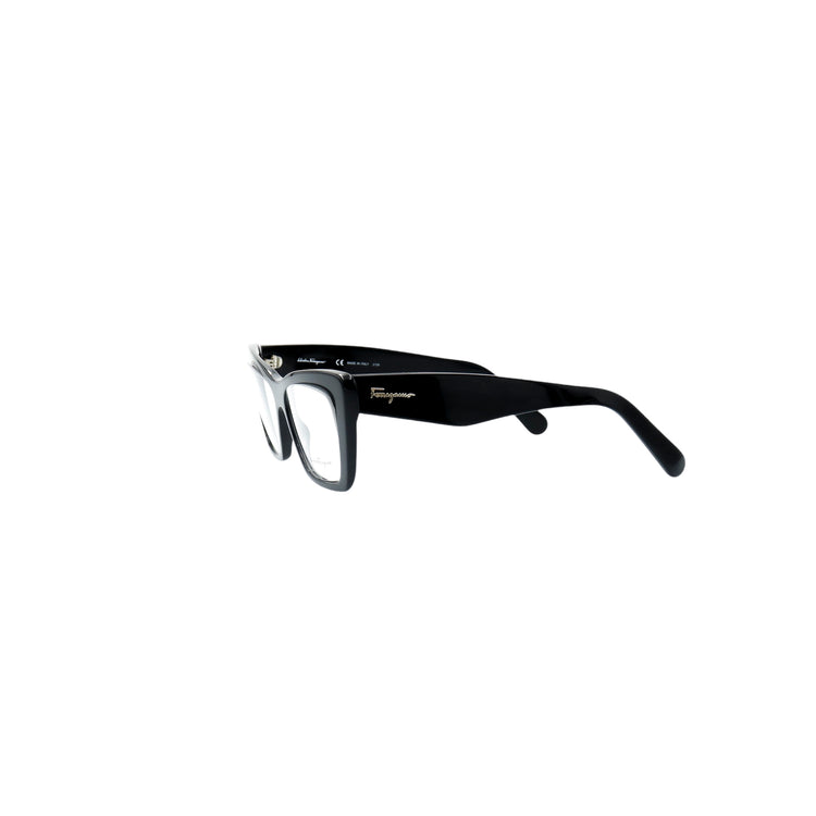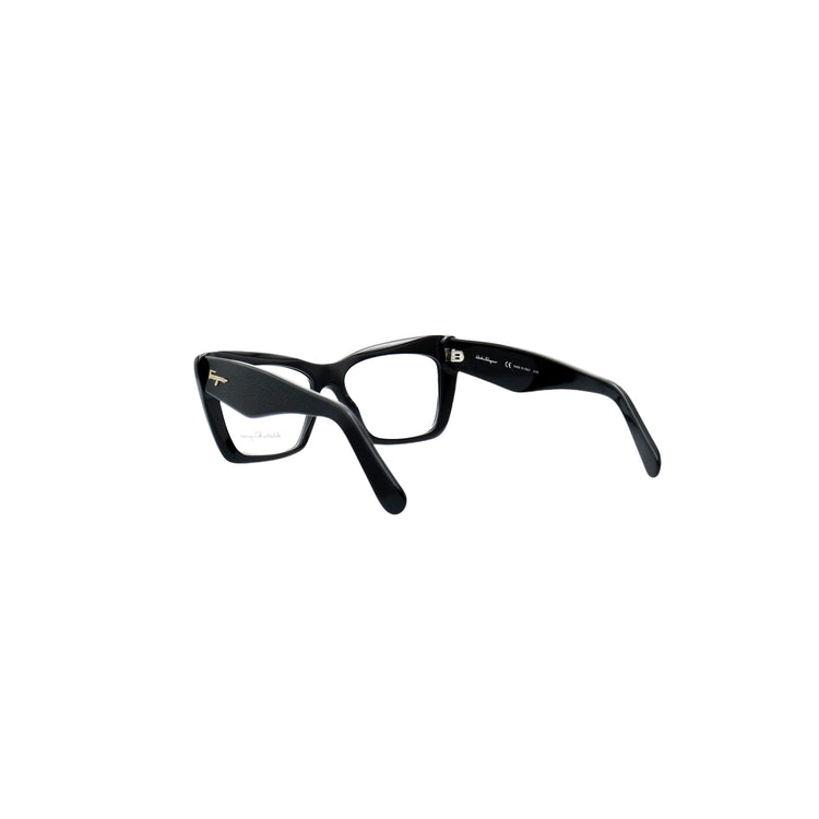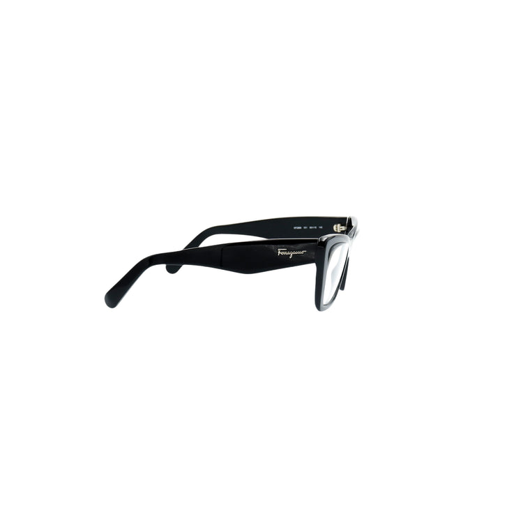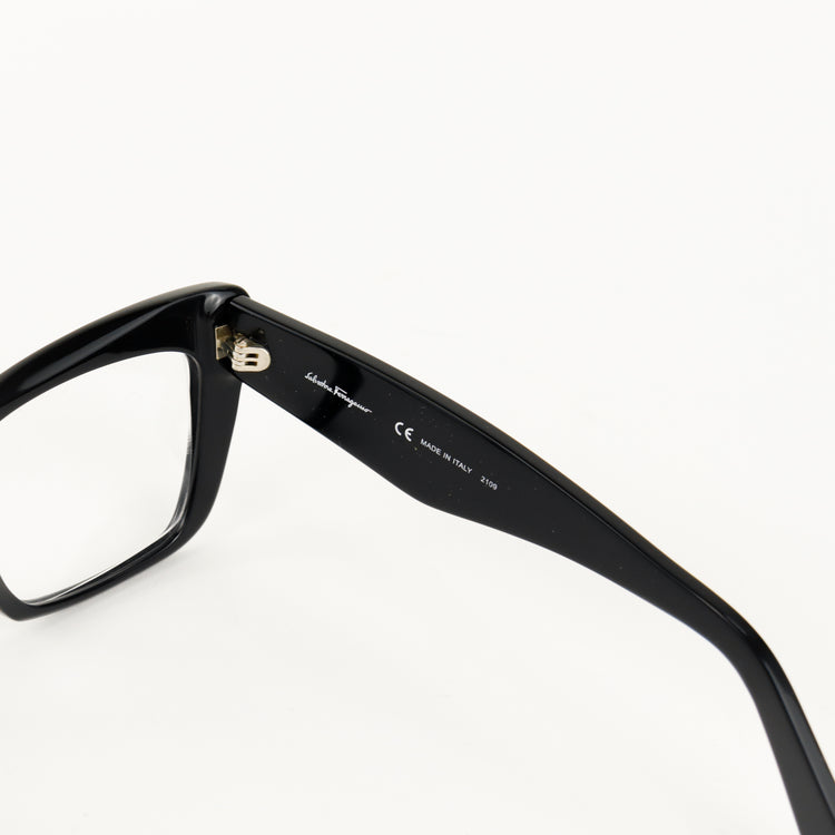 Armazón para micas oftálmicas graduables de la marca Salvatore Ferragamo modelo SF2865, en forma ojo de gato, confeccionado en acetato con alma de acero, con leves rayones en una de las varillas.