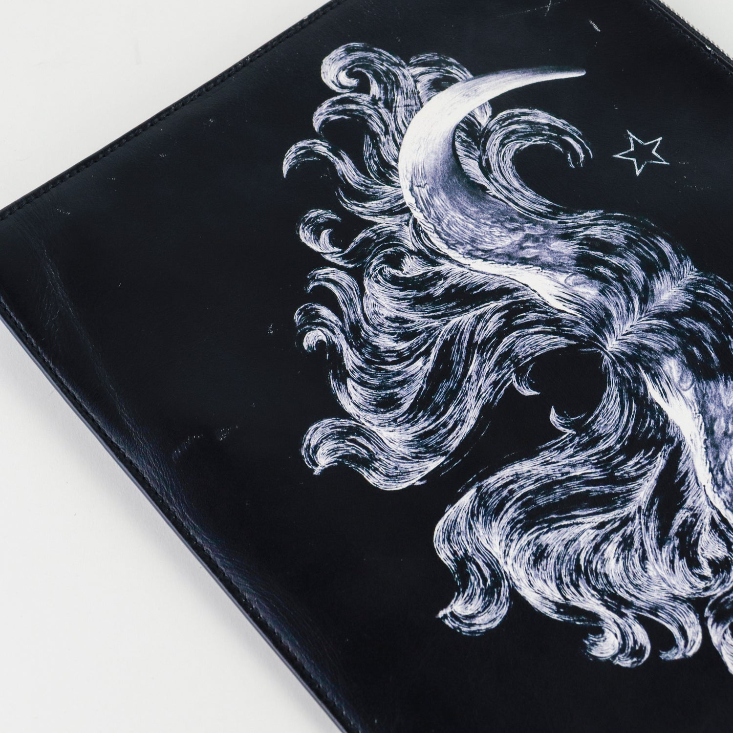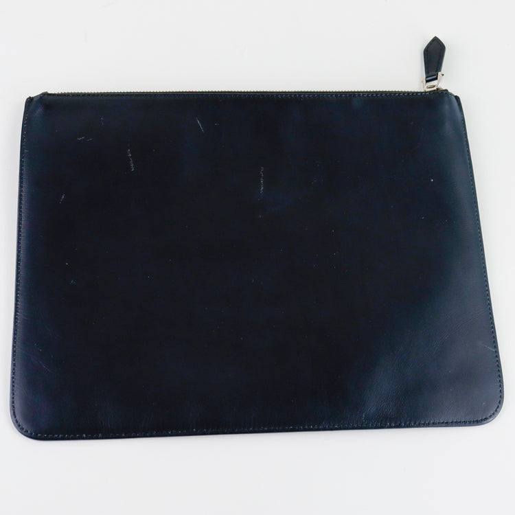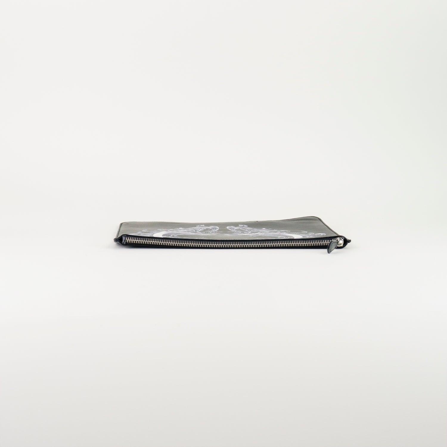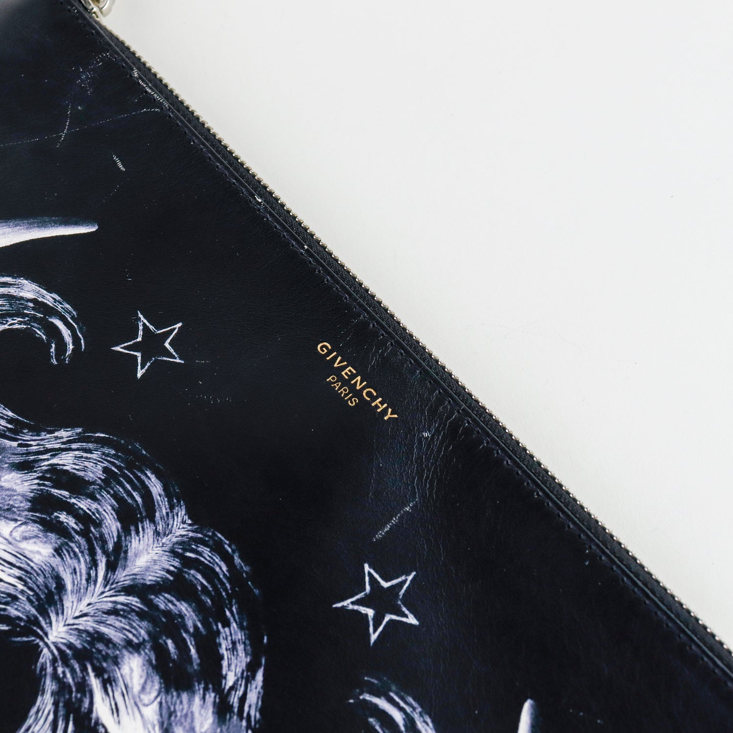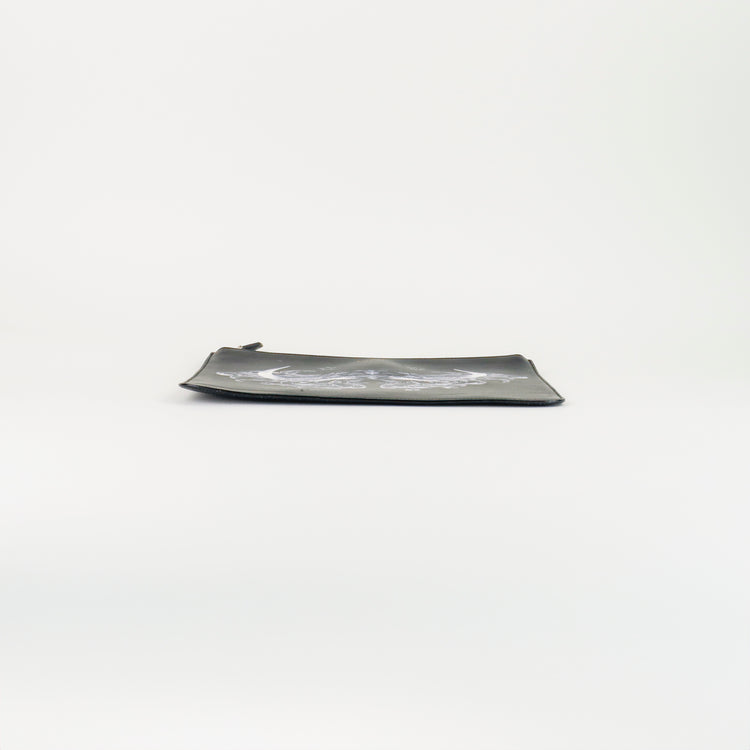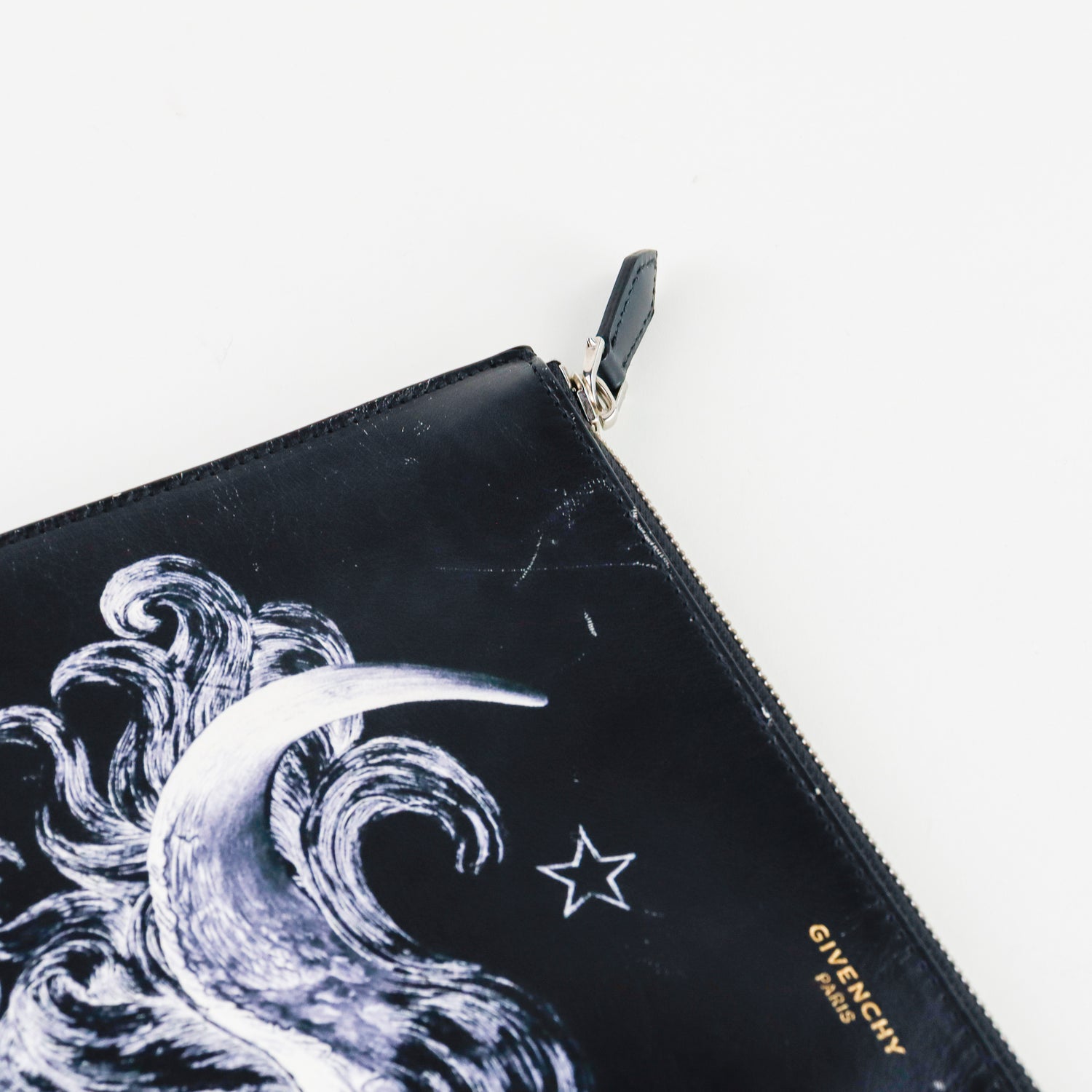 Clutch Givenchy en piel negra con detalle impreso y cierre superior de cremallera.