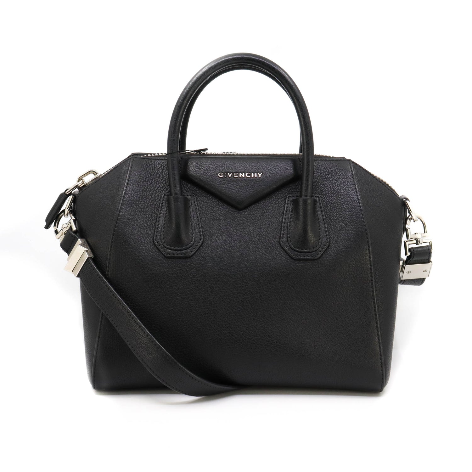 Bolso crossbody Givenchy Antígona en piel granulada de cabra color negro, con asas superiores, bandolera ajustable y logotipo metálico plateado. Un diseño elegante y funcional.