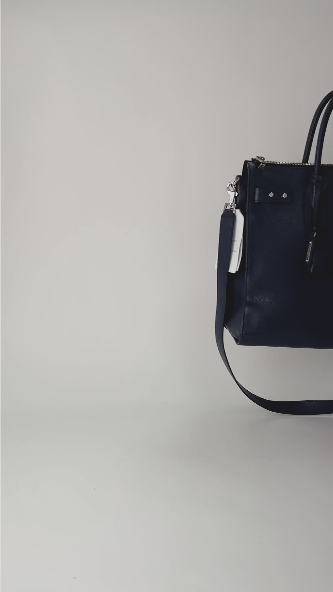 Bolso tipo tote Yves Saint Laurent Sac de Jour North/South en piel granulada color azul marino, con correas laterales, herrajes plateados y bandolera extraíble. Un diseño elegante y versátil.