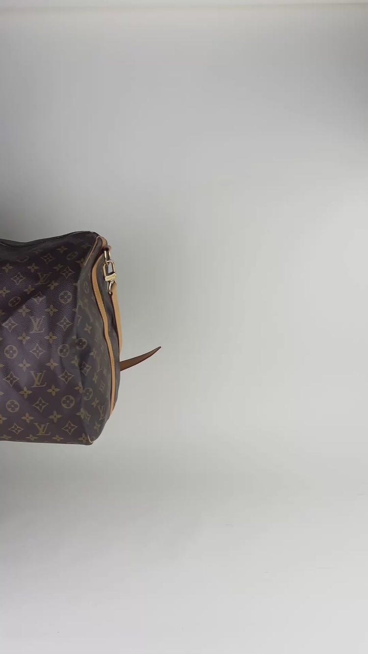 Bolso de mano Louis Vuitton Keepall 60 en lona Monogram con asas de cuero y herrajes dorados.