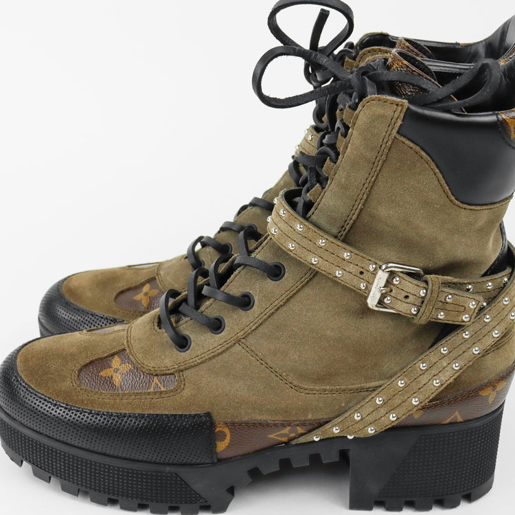 Botas Tipo Militar Louis Vuitton en Gamuza Verde Caqui y Lona Monogram