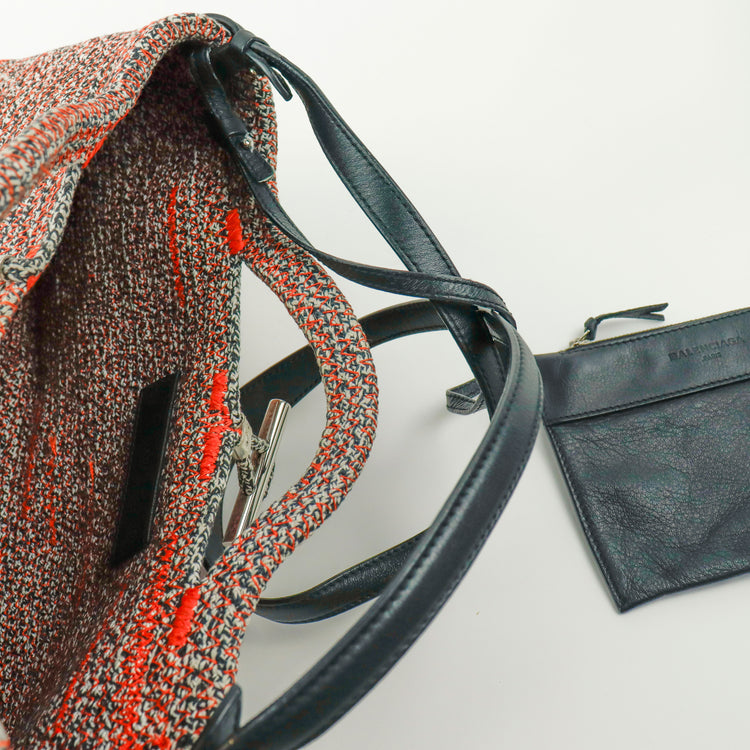 Bolso Balenciaga ZigZagger Tweed Toggle de la colaboración 2015 con Alexander Wang, confeccionado en lienzo multicolor, con cartera interna extraíble y strap en piel color negro, herrajes en acero color plata.
