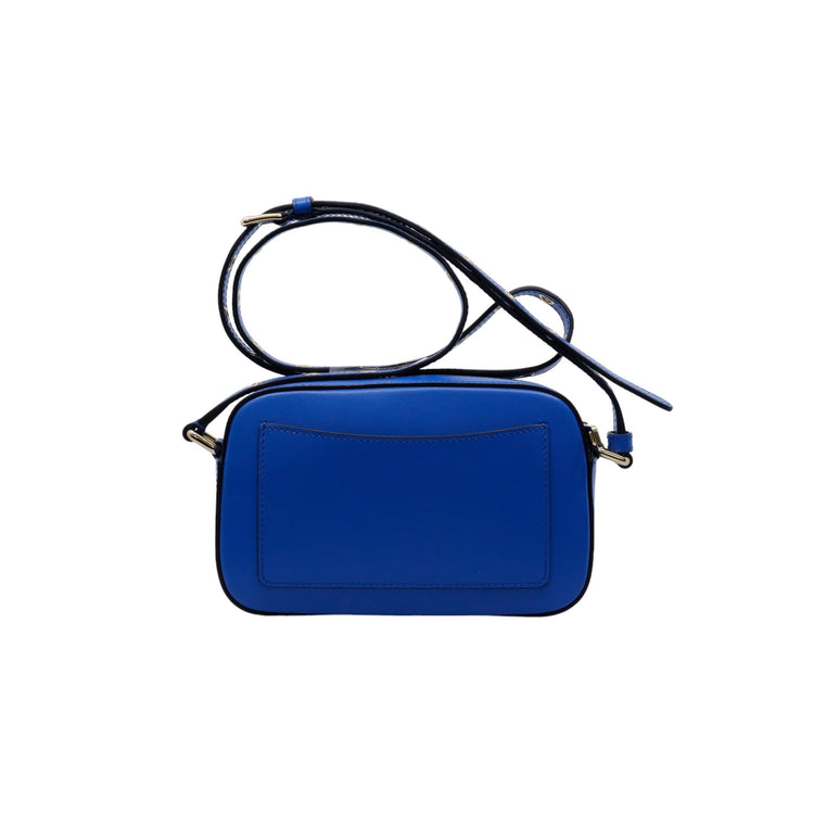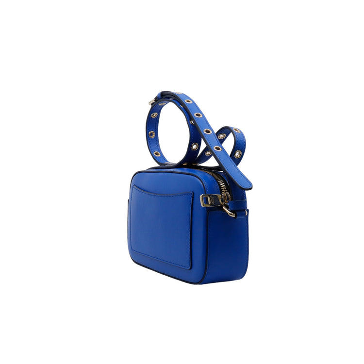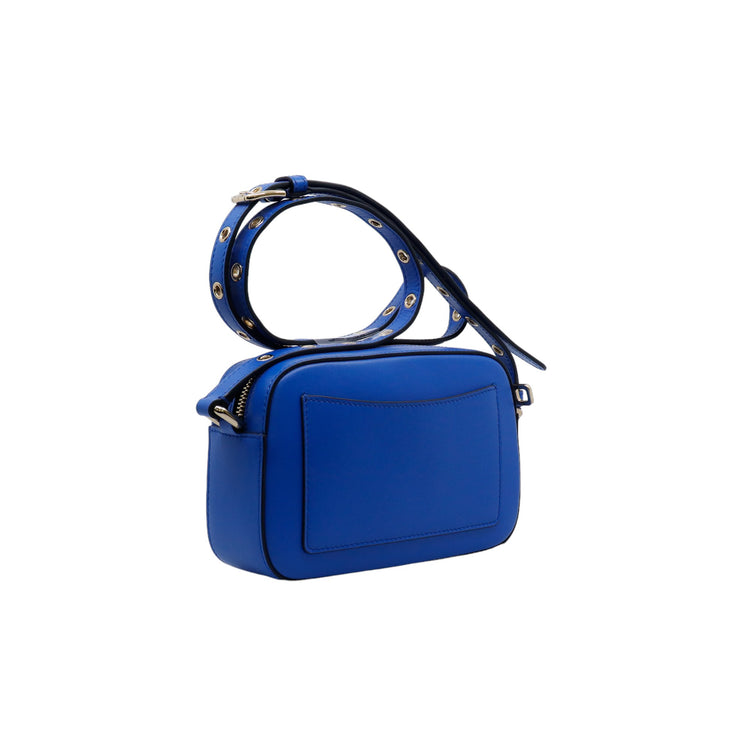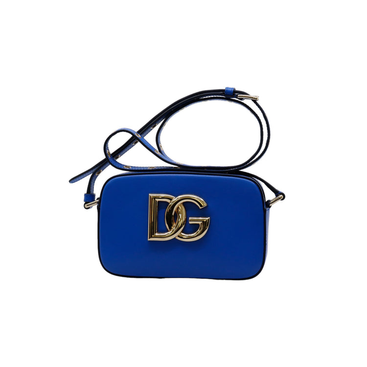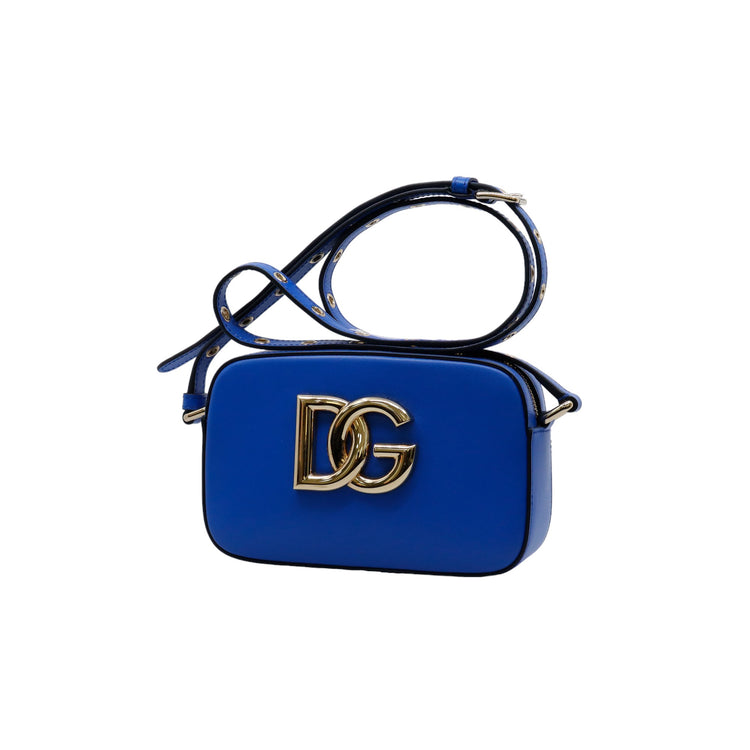 Bolso pequeño Dolce & Gabbana de la línea 3.5, confeccionado en piel color azul, con strap ajustable y zipper en la parte superior, herrajes y distintivo DG de la marca en color dorado. ARTÍCULO DE SEGUNDA MANO EN BUEN ESTADO. Cuenta con cubre polvo.