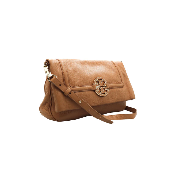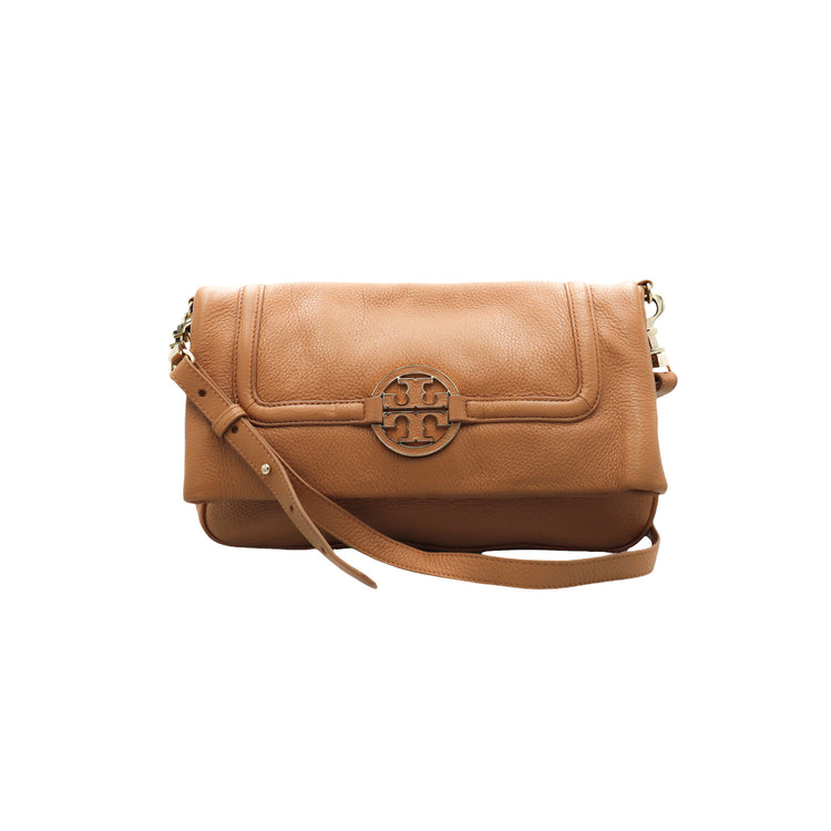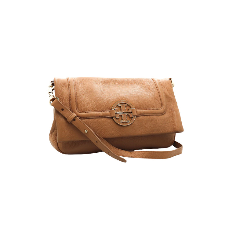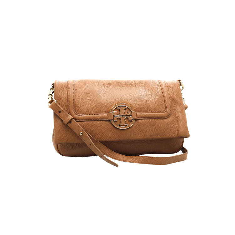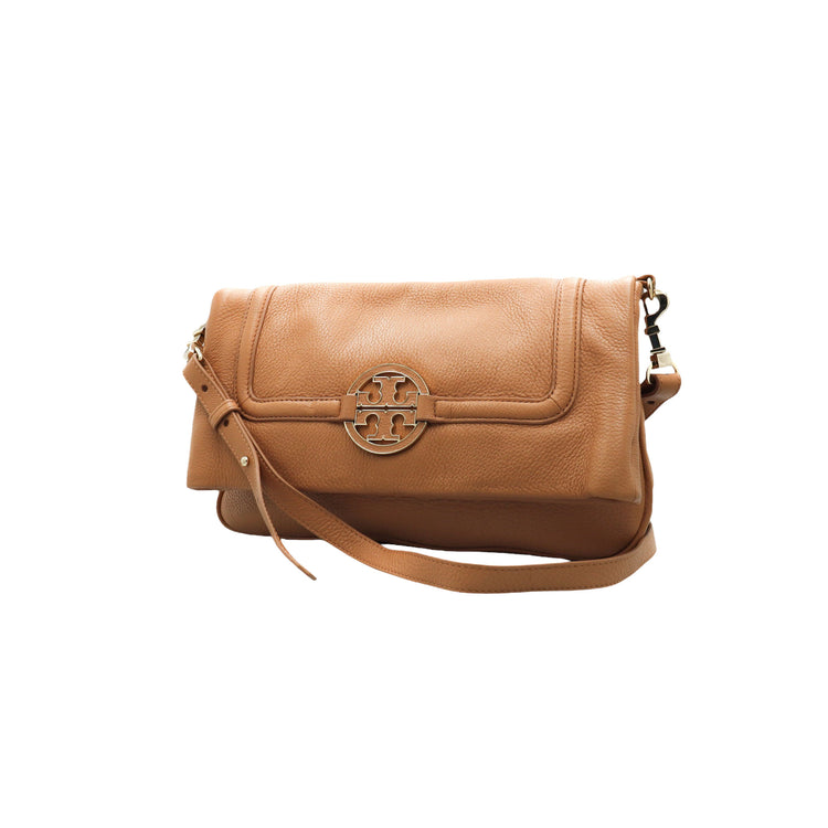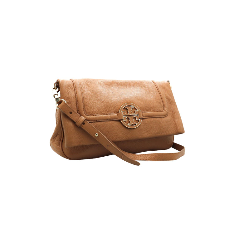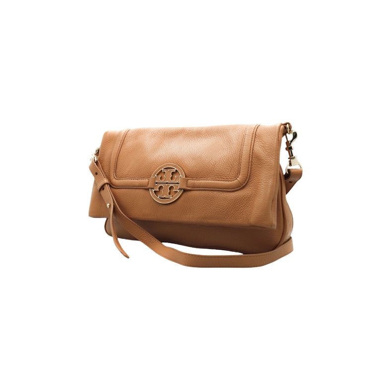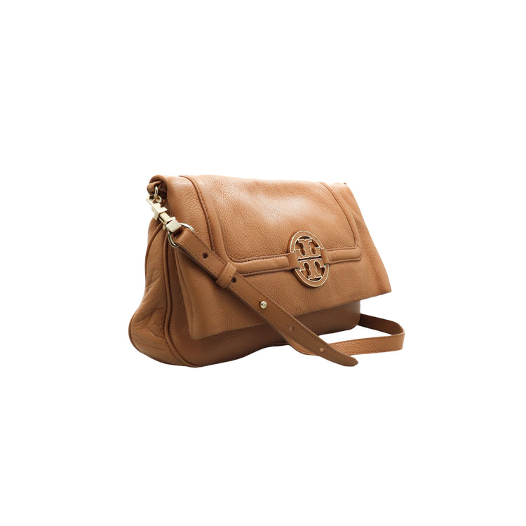 Tory Burch Amanda Fold Over Messenger, color camello, en piel, con herrajes dorados. Incluye strap con el cual puedes convertir el bolso en un tote de gran profundidad. ARTÍCULO DE SEGUNDA MANO EN BUEN ESTADO. Incluye cubre polvo.