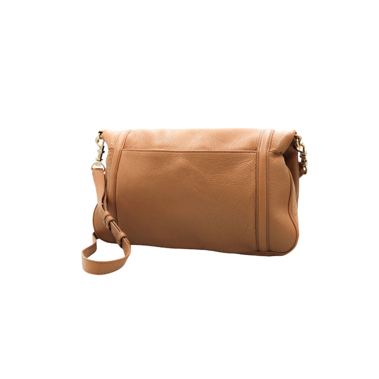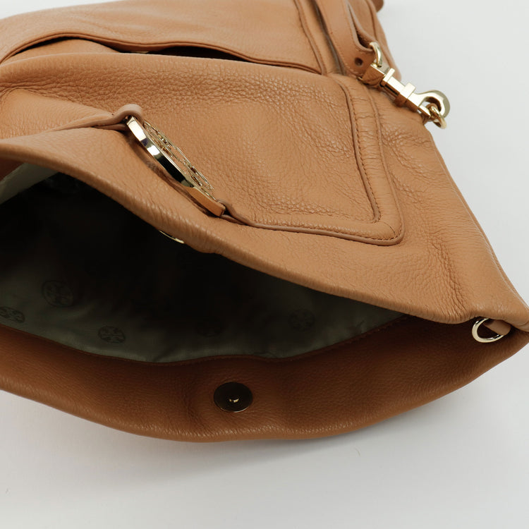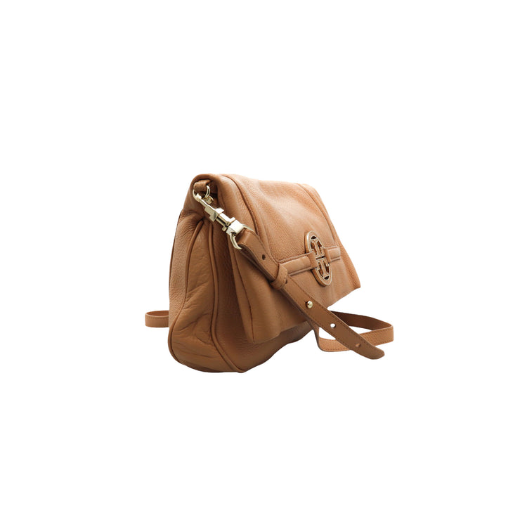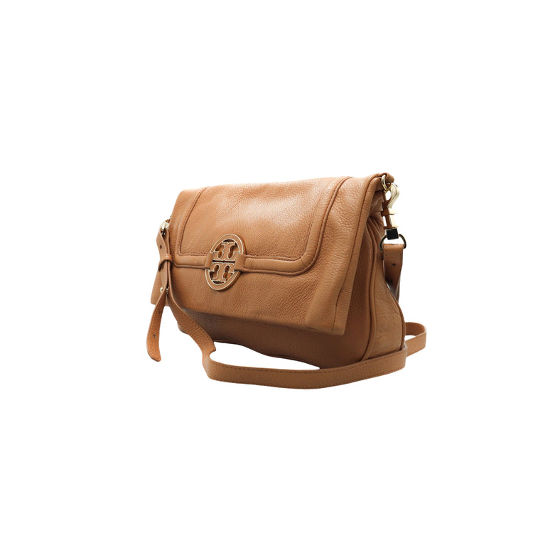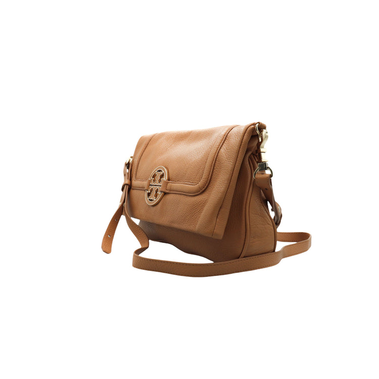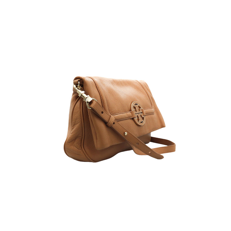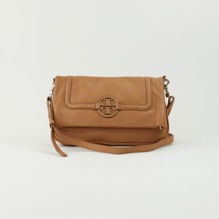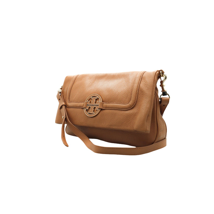 Tory Burch Amanda Fold Over Messenger, color camello, en piel, con herrajes dorados. Incluye strap con el cual puedes convertir el bolso en un tote de gran profundidad. ARTÍCULO DE SEGUNDA MANO EN BUEN ESTADO. Incluye cubre polvo.