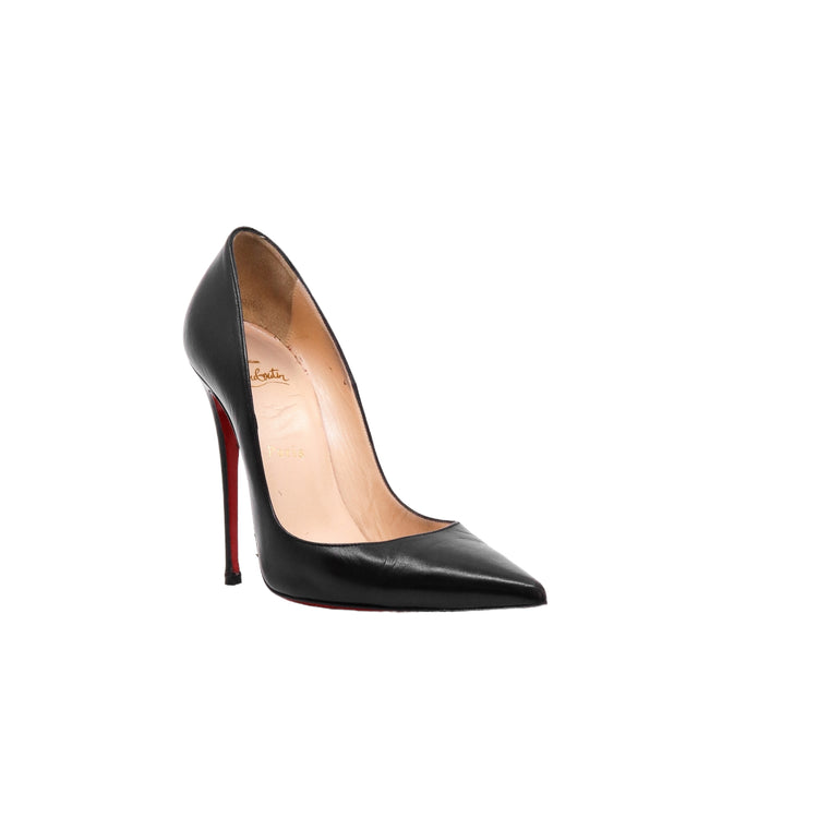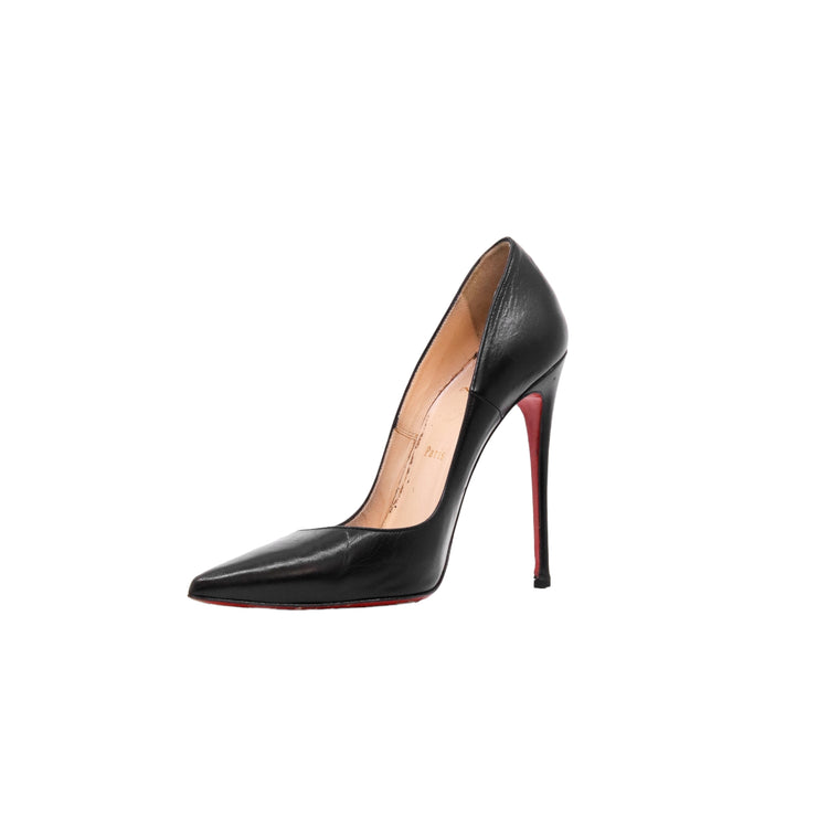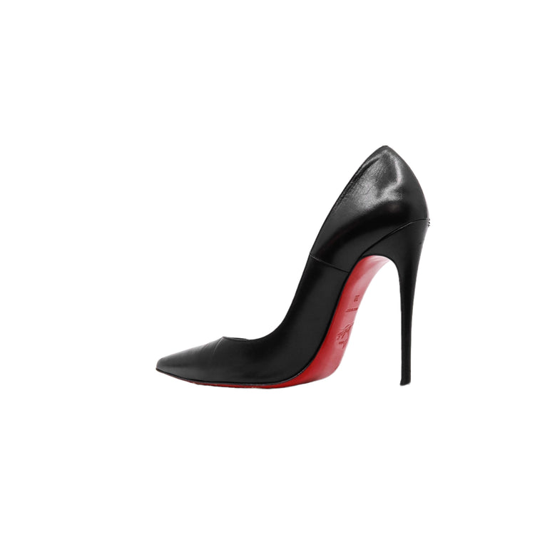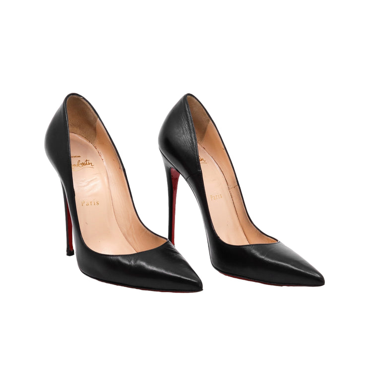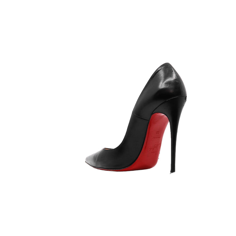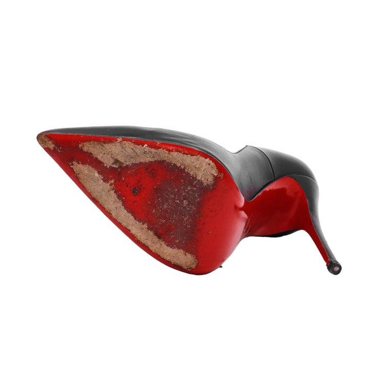 Tacones marca Christian Louboutin modelo Kate, en suave piel color negro, tacón stiletto, con puntera en V, detalles por uso regular.