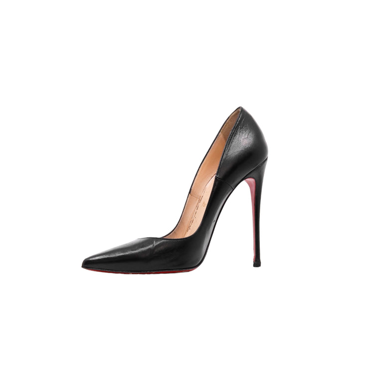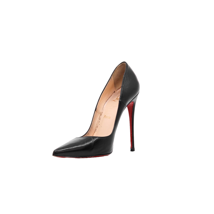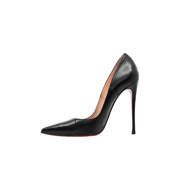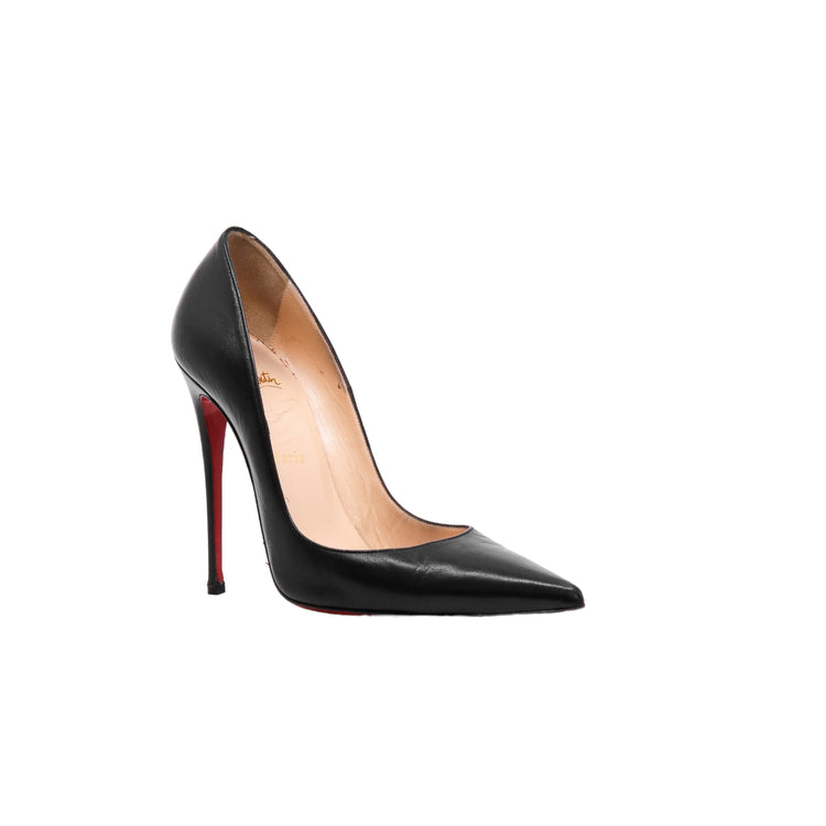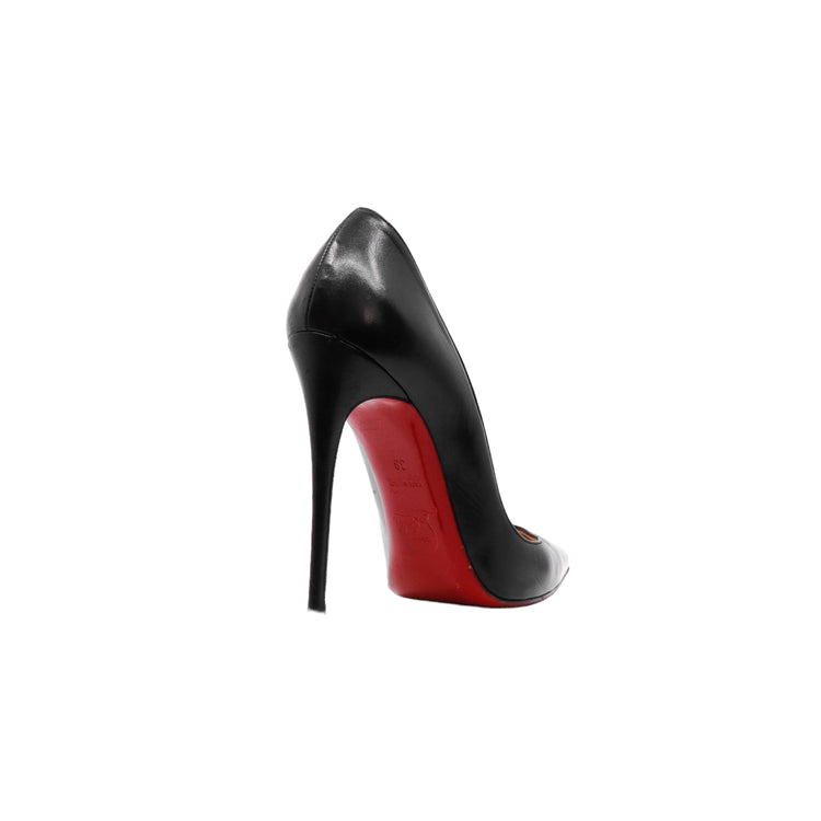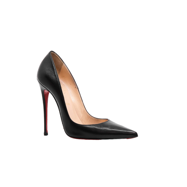 Tacones marca Christian Louboutin modelo Kate, en suave piel color negro, tacón stiletto, con puntera en V, detalles por uso regular.