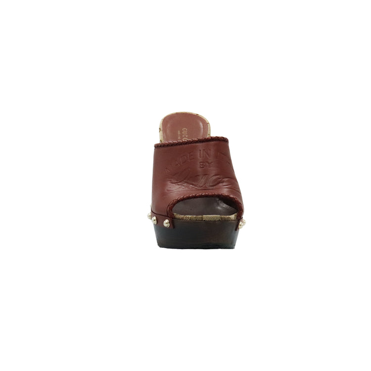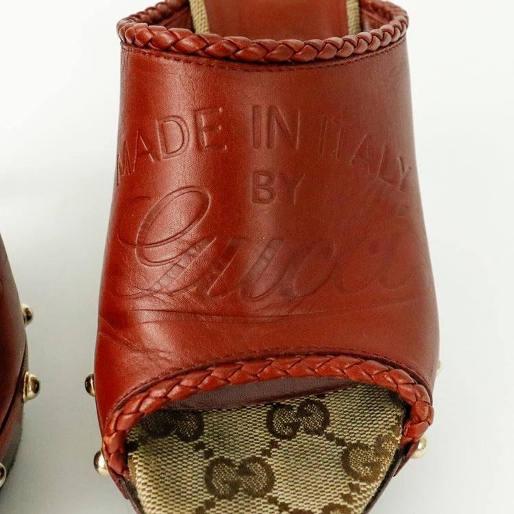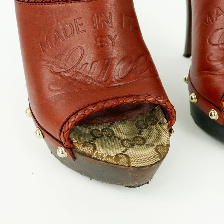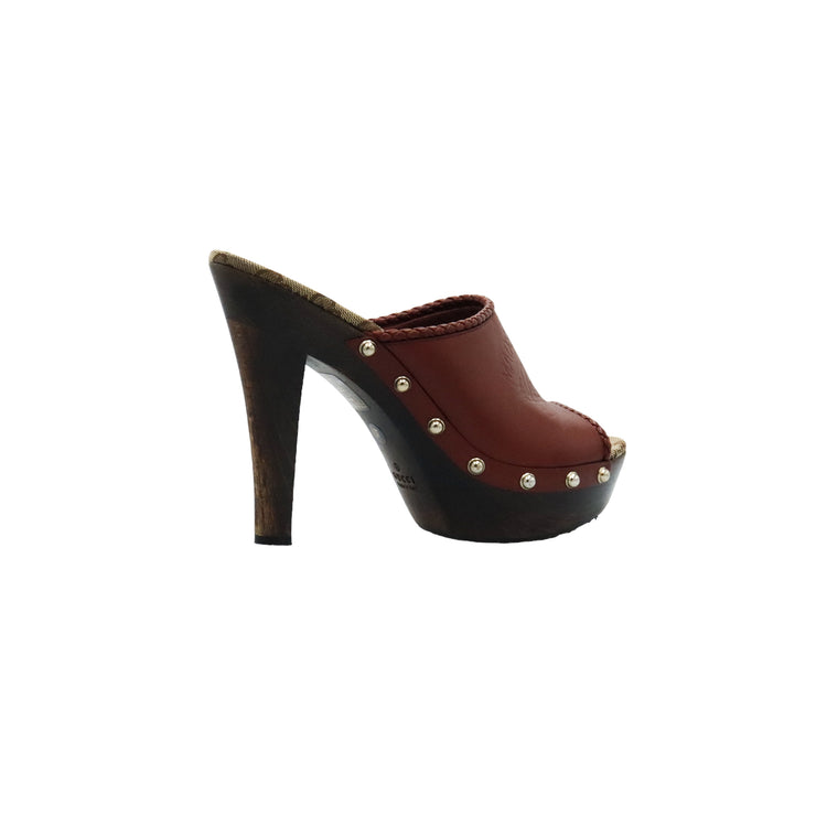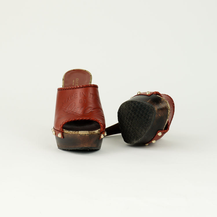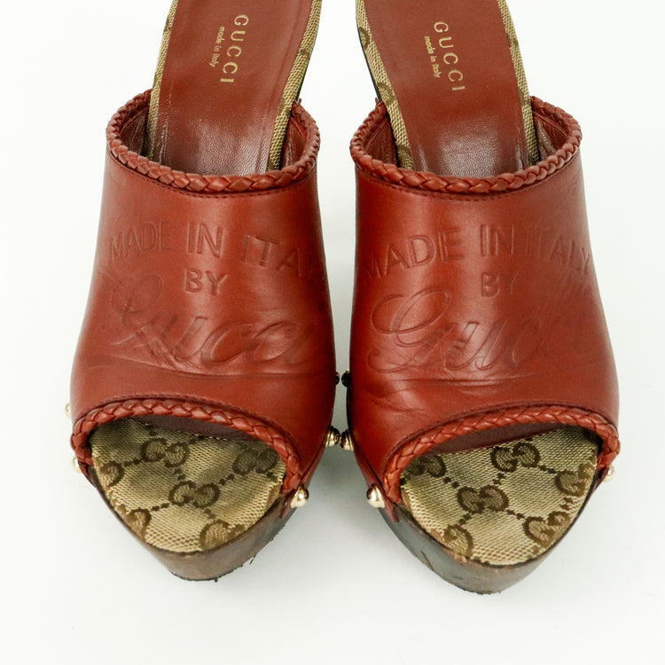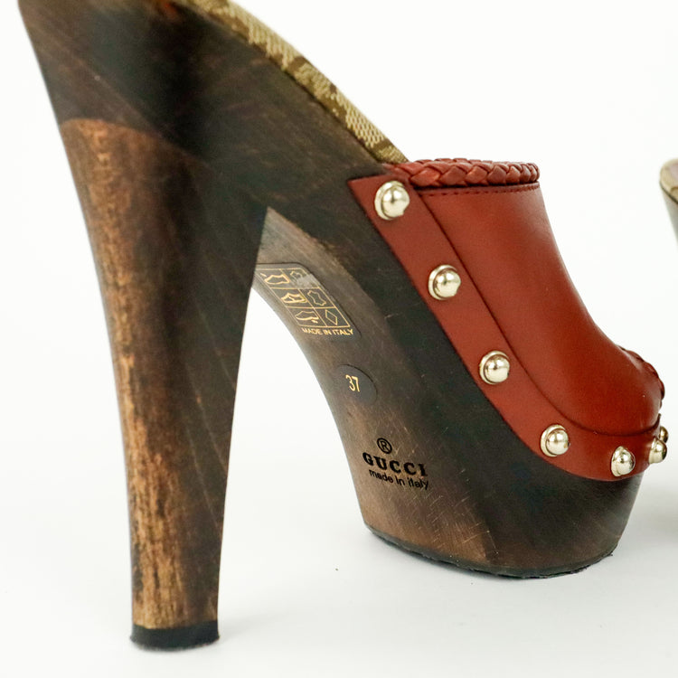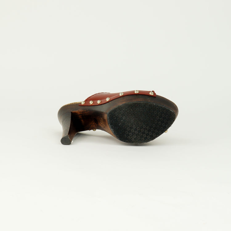 Zapatos de tacón tipo sueco Gucci, confeccionados en piel color marrón, suela amaderada con muy poco desgaste.