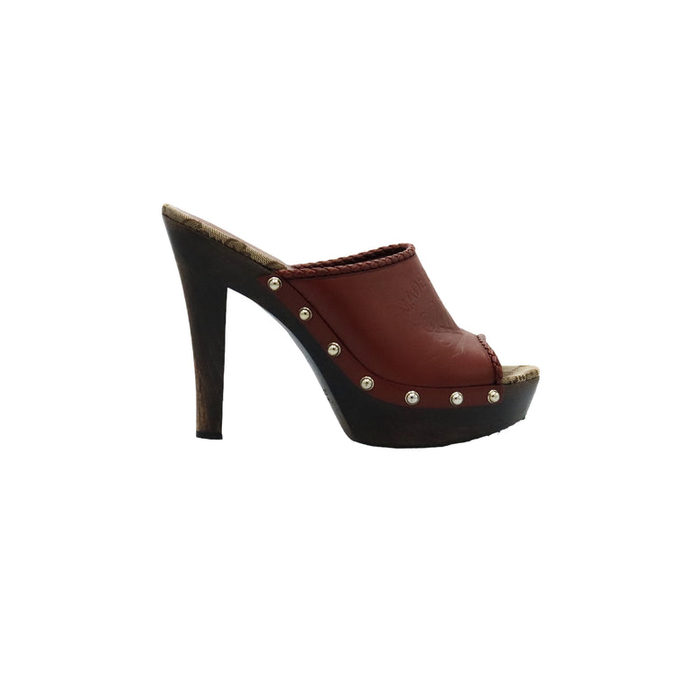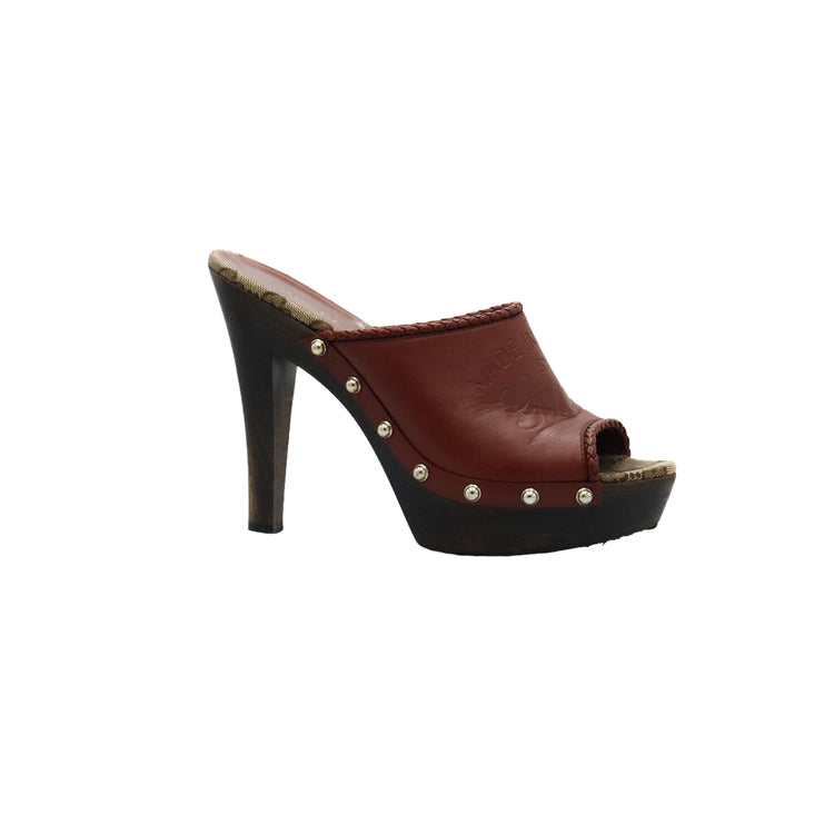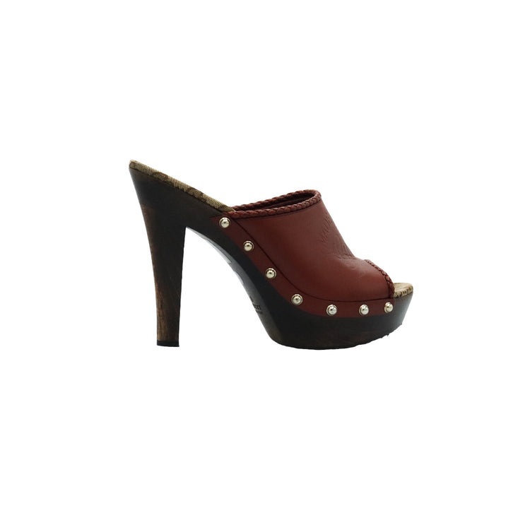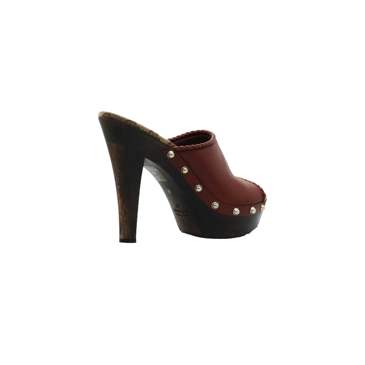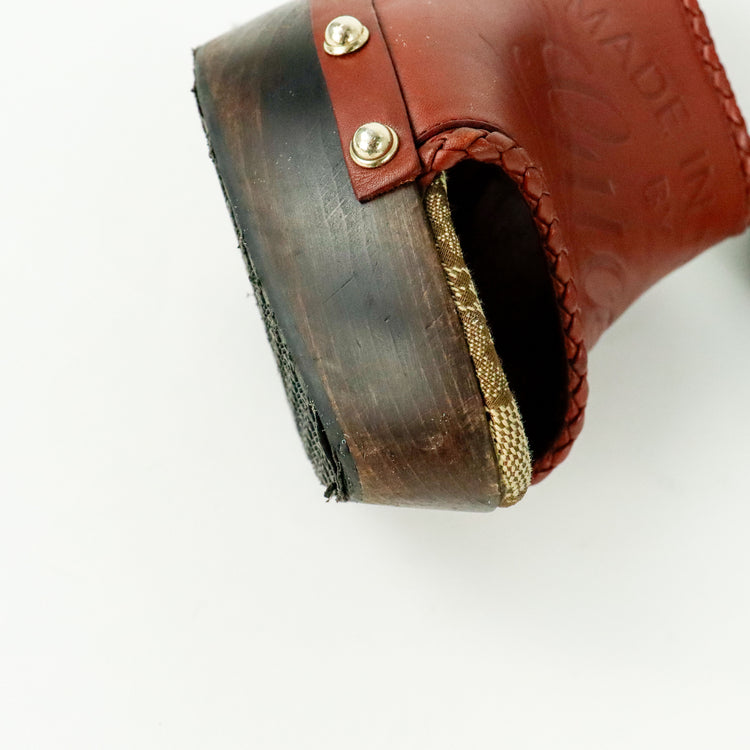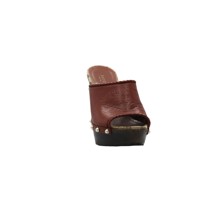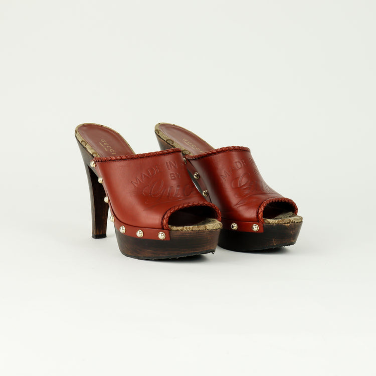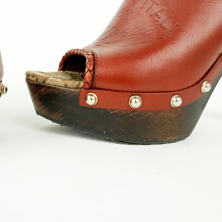 Zapatos de tacón tipo sueco Gucci, confeccionados en piel color marrón, suela amaderada con muy poco desgaste.