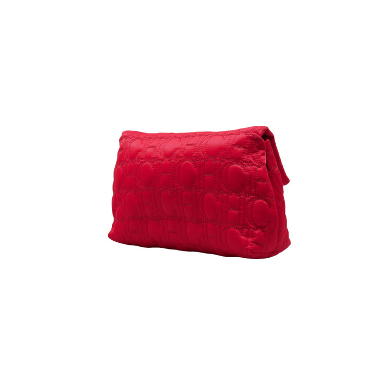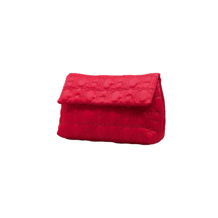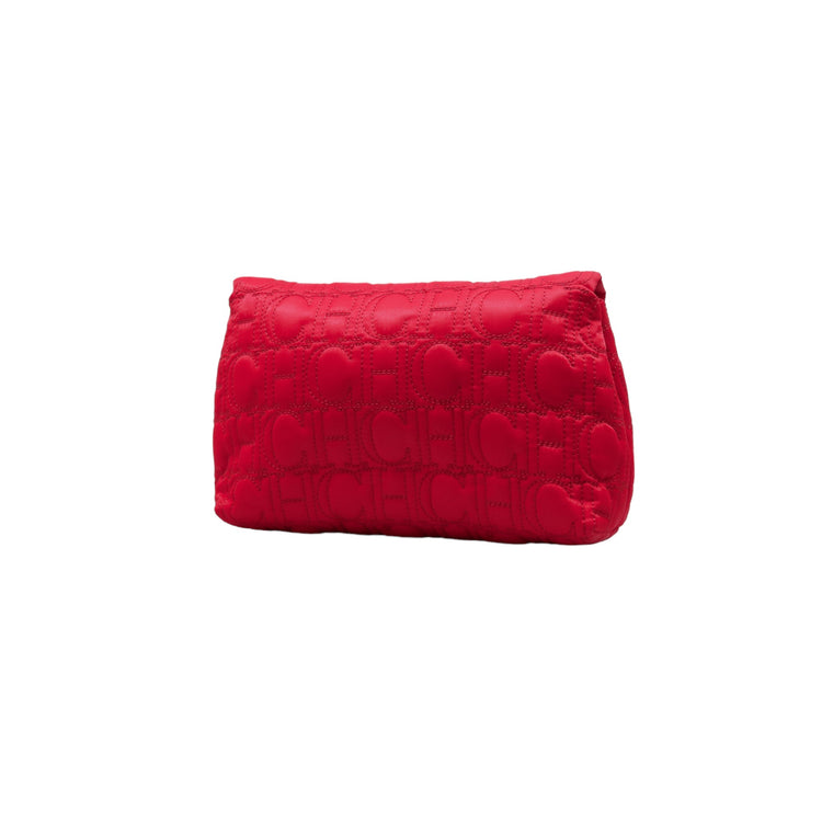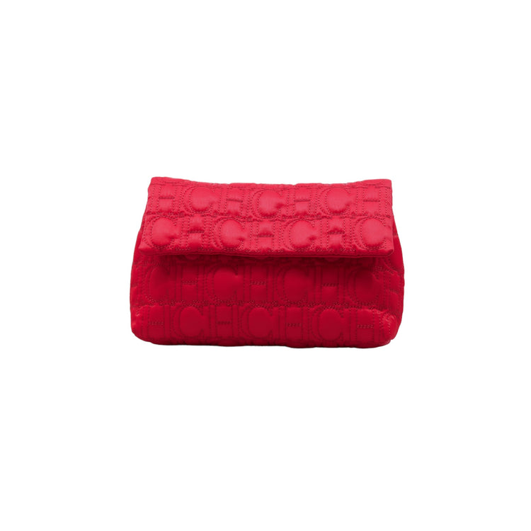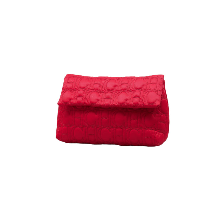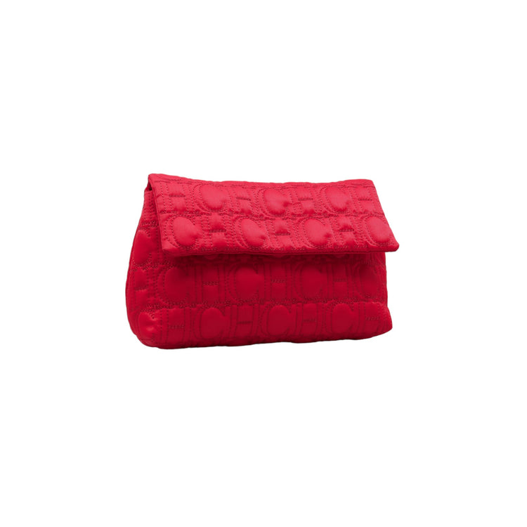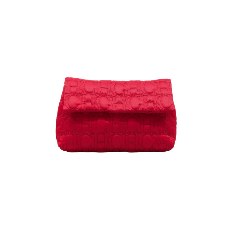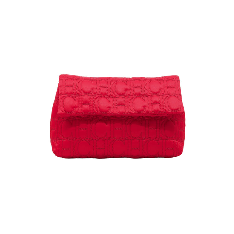 Clutch Carolina Herrera confeccionado en textil (poliuretano) color rojo con el monograma de la marca en relieve.