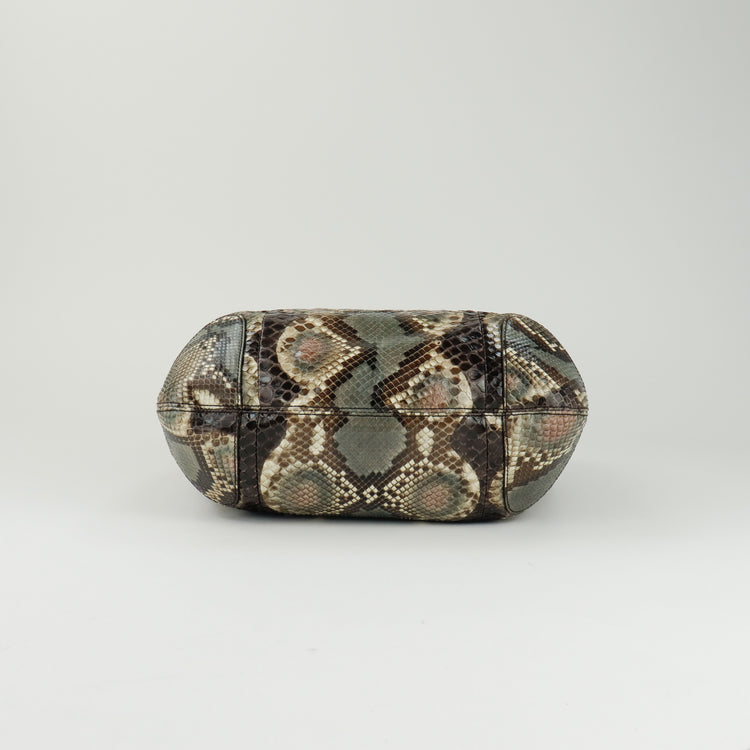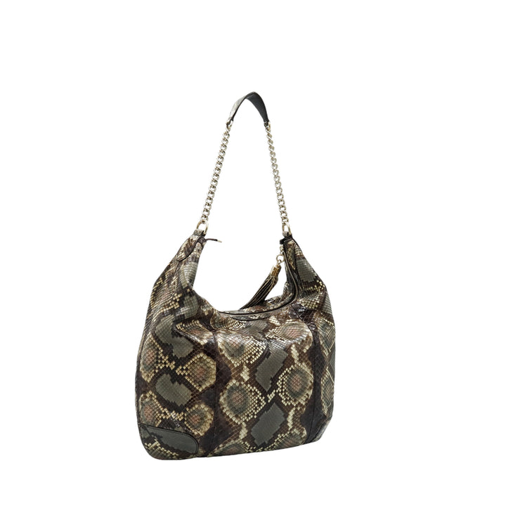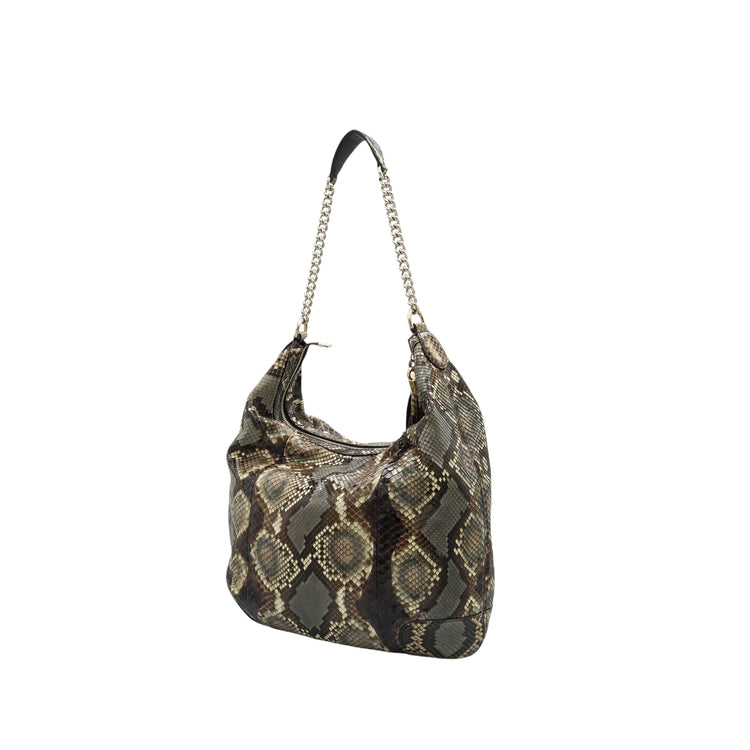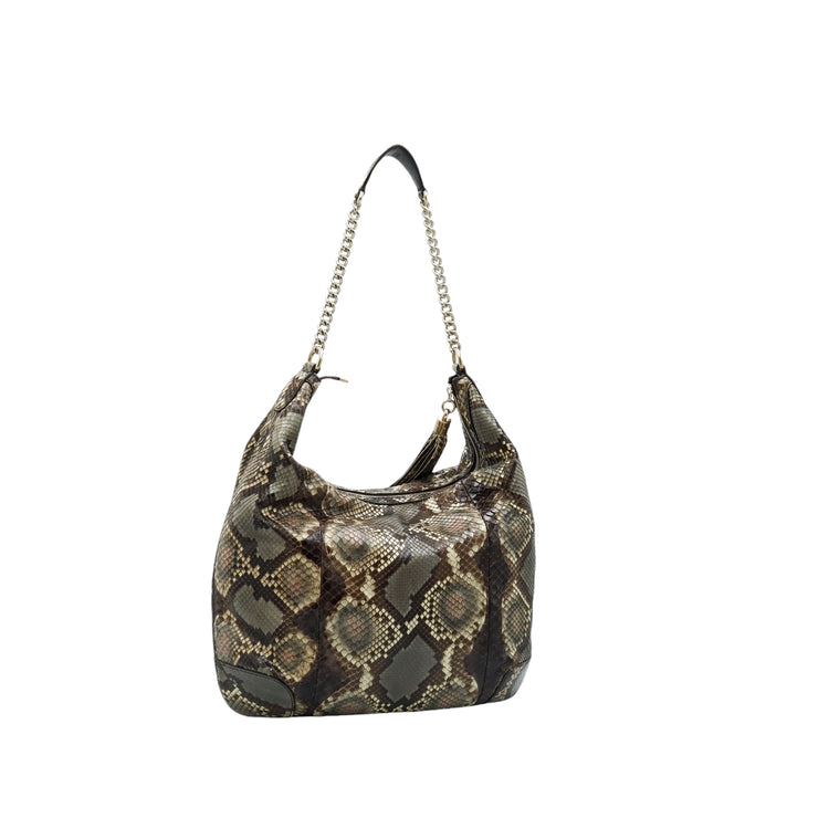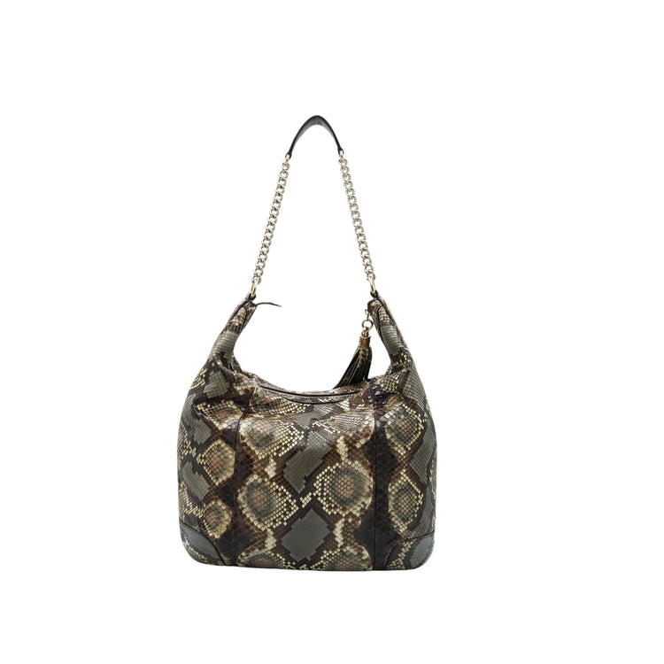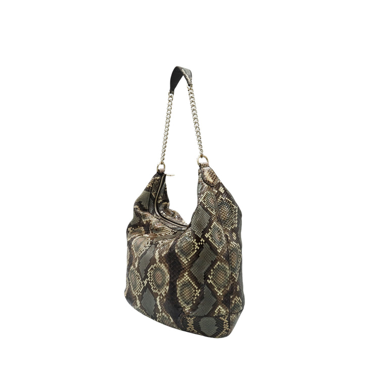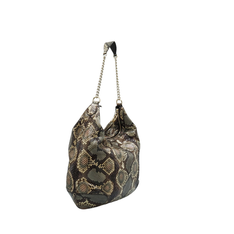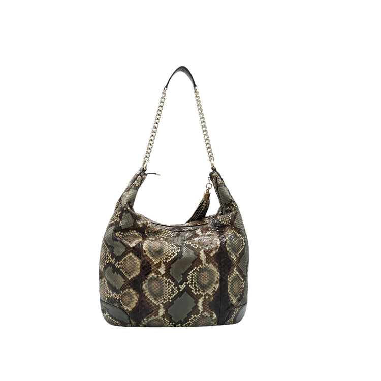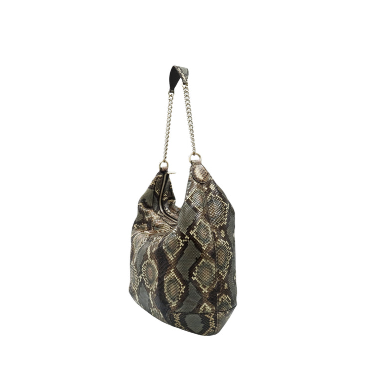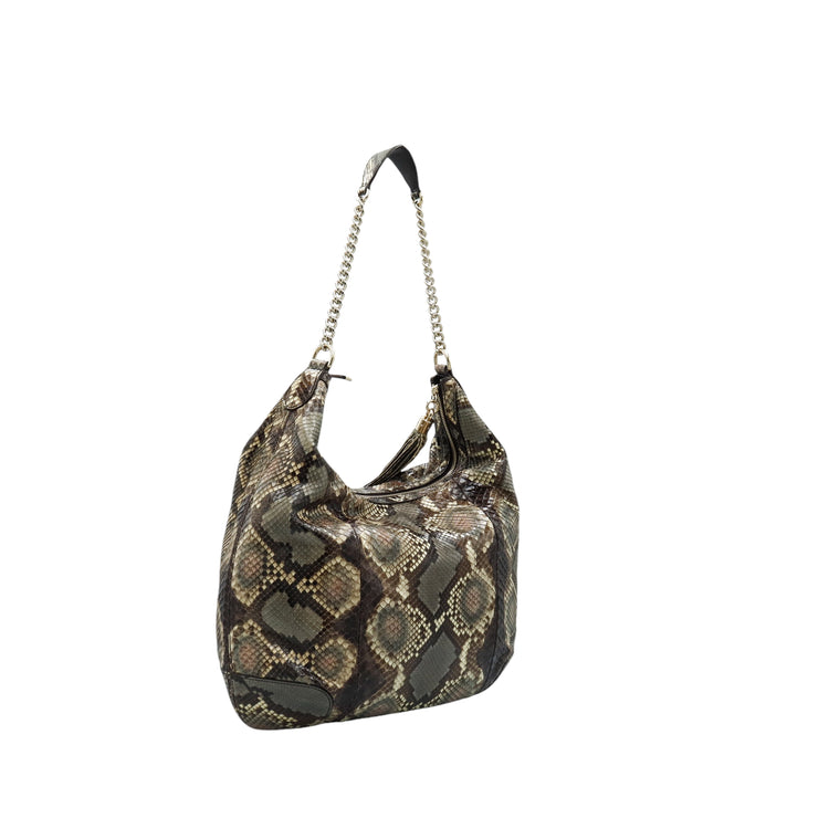 Bolso Gucci modelo Soho, confeccionado en tipo piel exótica, con forro interno en textil, herrajes en color dorado con cierre de cremallera. (Con olor a humedad).