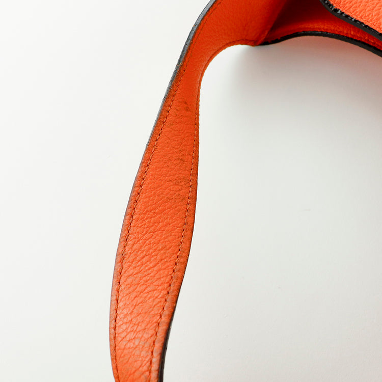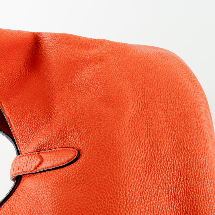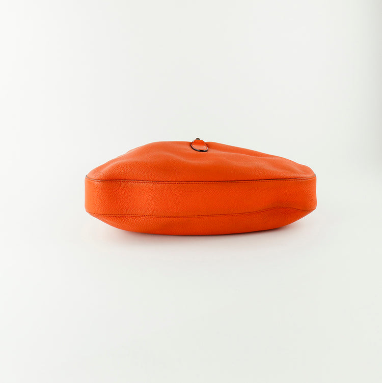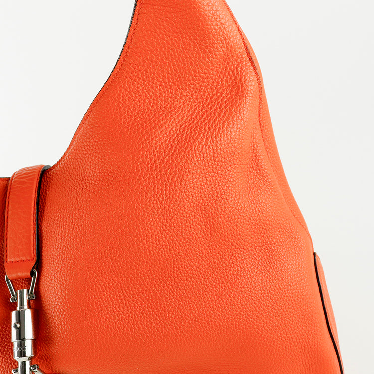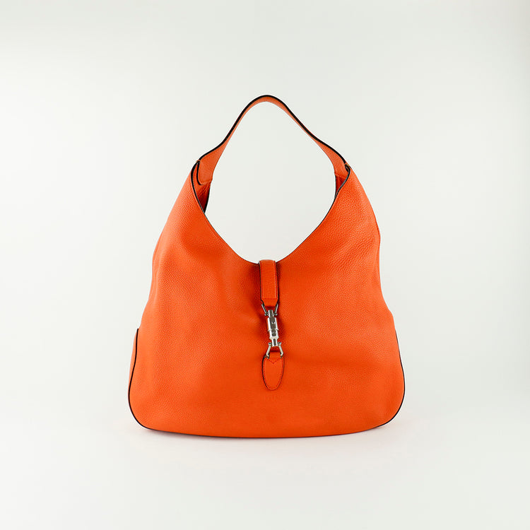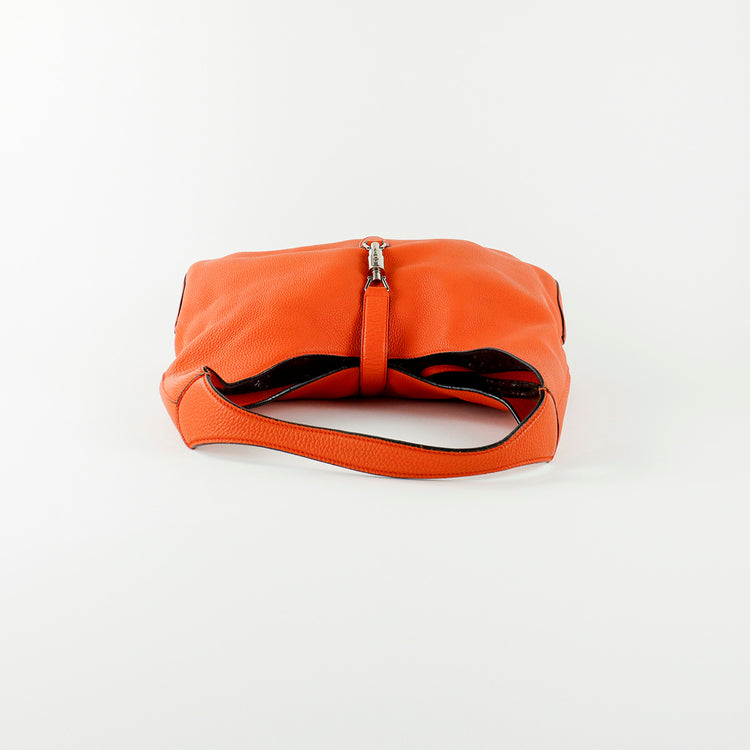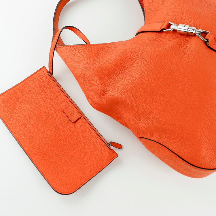 Bolso de la marca Gucci colección Jackie en su versión soft con pochette, confeccionada en piel color naranja, con cartera/pochette en mismo color, herrajes en color plata.