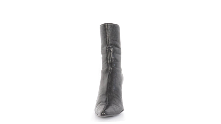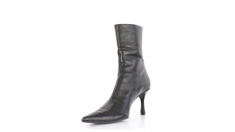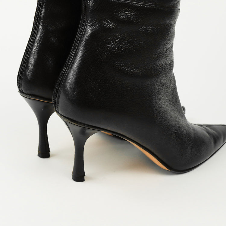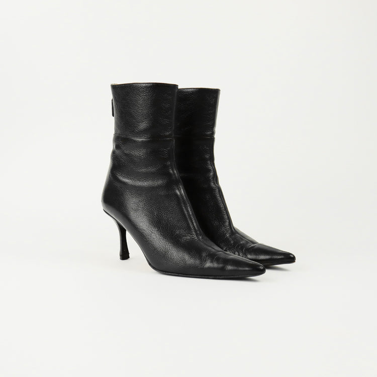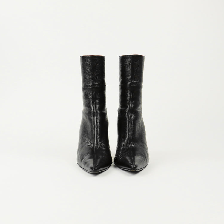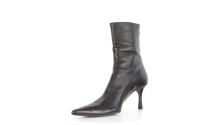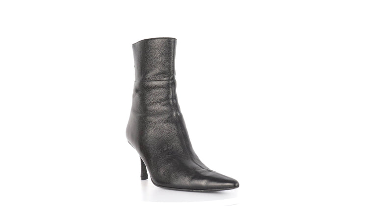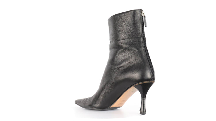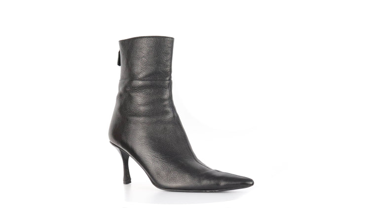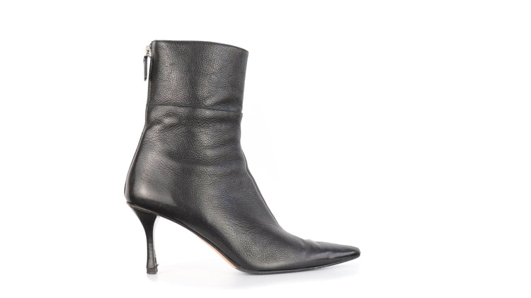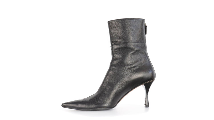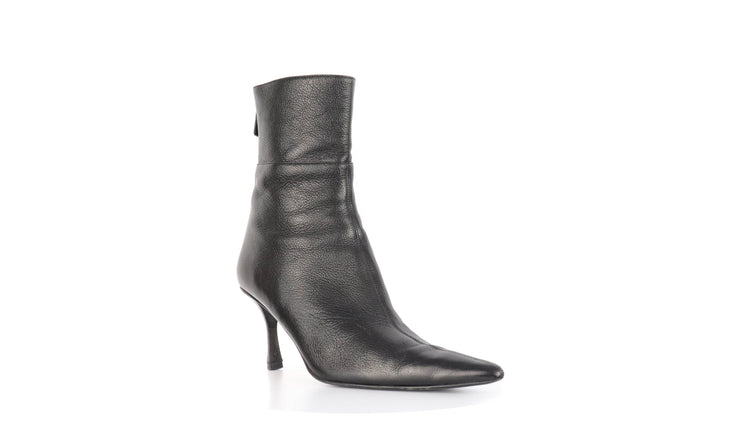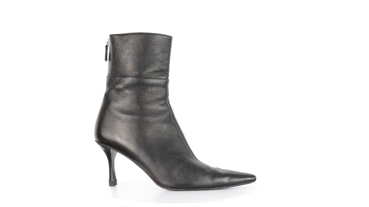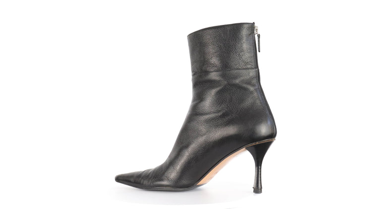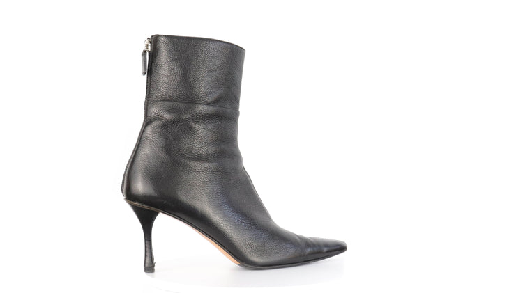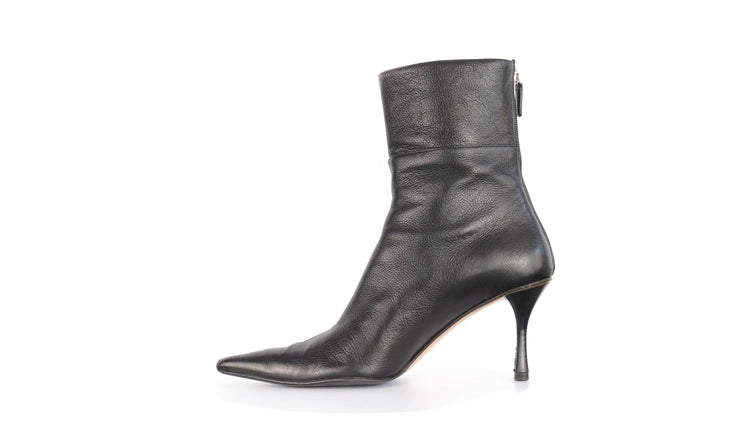 Botines Gucci, elaborados en piel color negro, puntera en v y cierre con cremallera en talón.