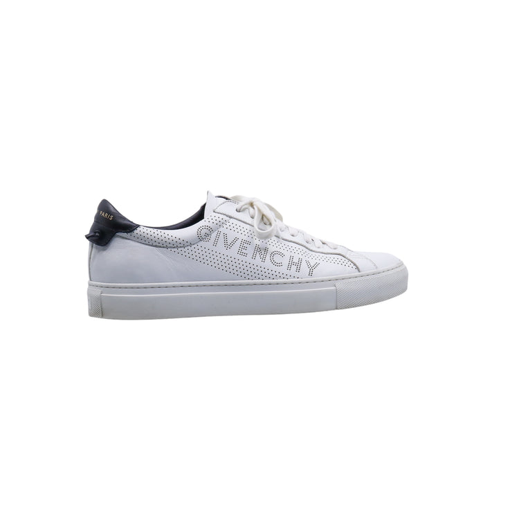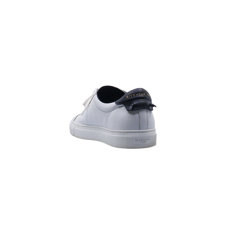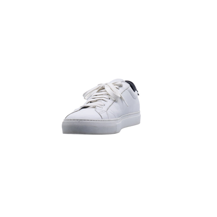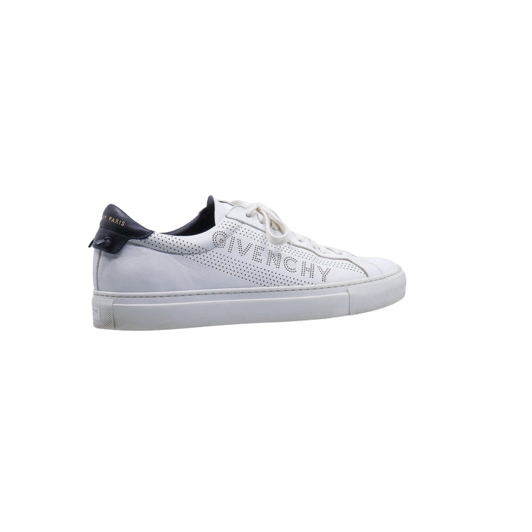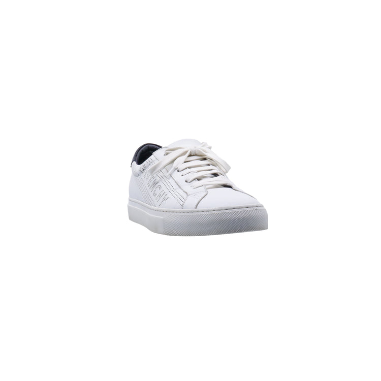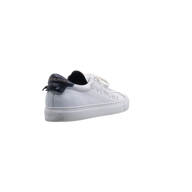 Sneakers Givenchy de la línea B Urban Street, confeccionados en piel color blanco con la marca perforada en los costados y parche de color negro en el talón, pocos sucios con desgaste por uso regular.