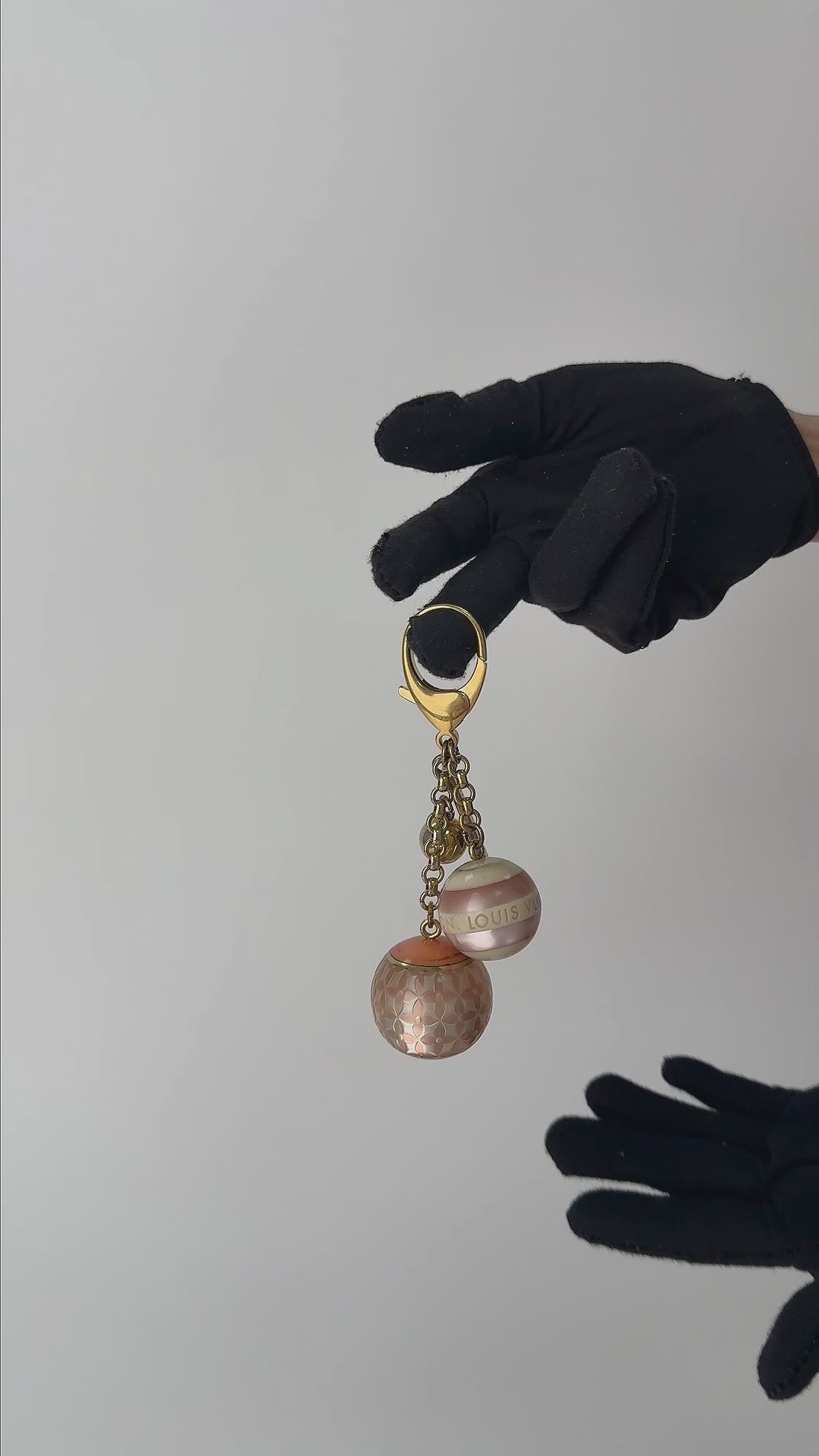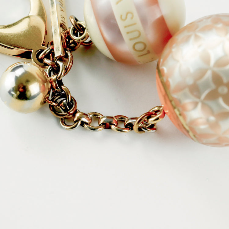 Llavero Miniland Croisette Louis Vuitton en metal dorado con esferas en acrílico. Un accesorio distintivo con diseño elegante y carácter icónico.