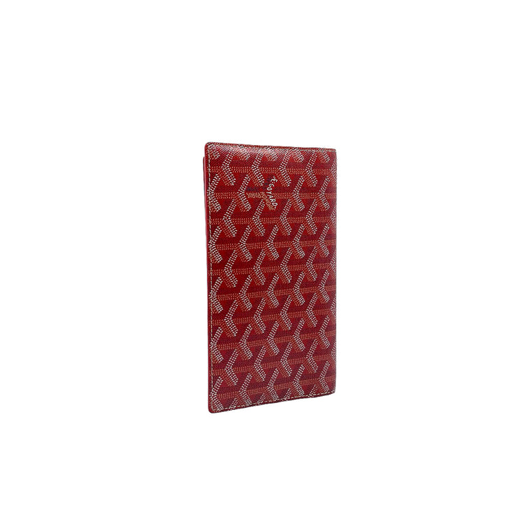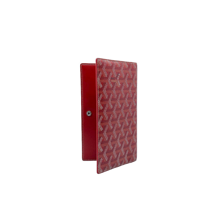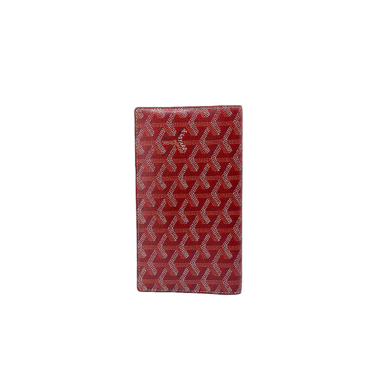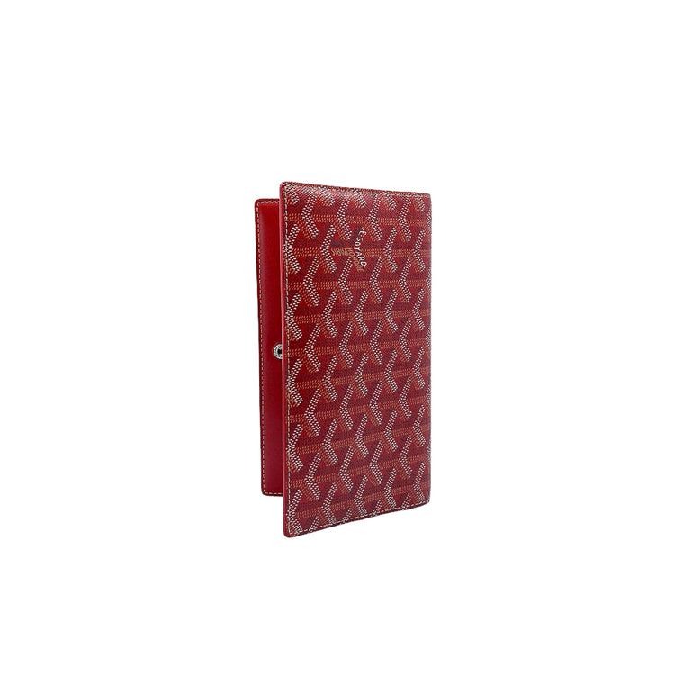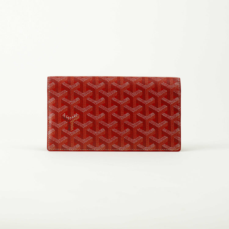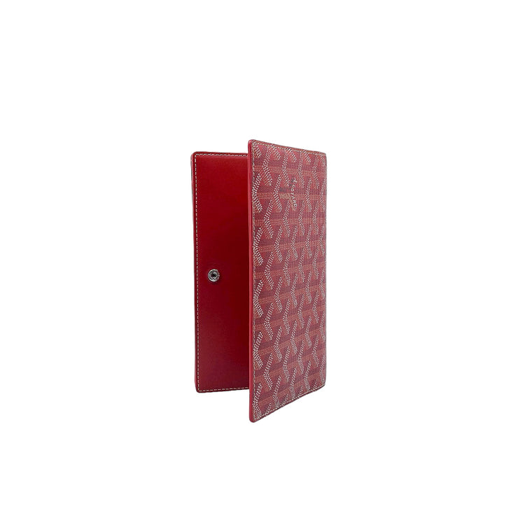 Cartera Goyard Richelieu, confeccionada en lona revestida Goyardine color rojo, con ranuras para tarjetas y compartimento con cierre de cremallera.
