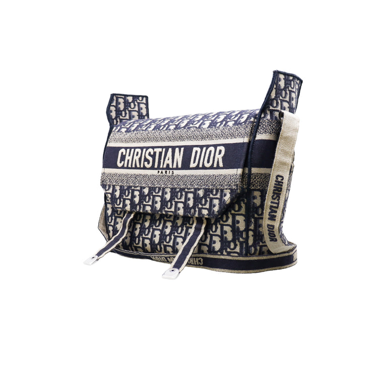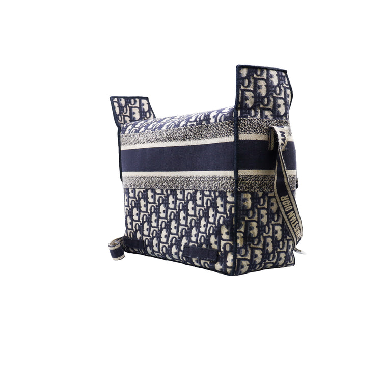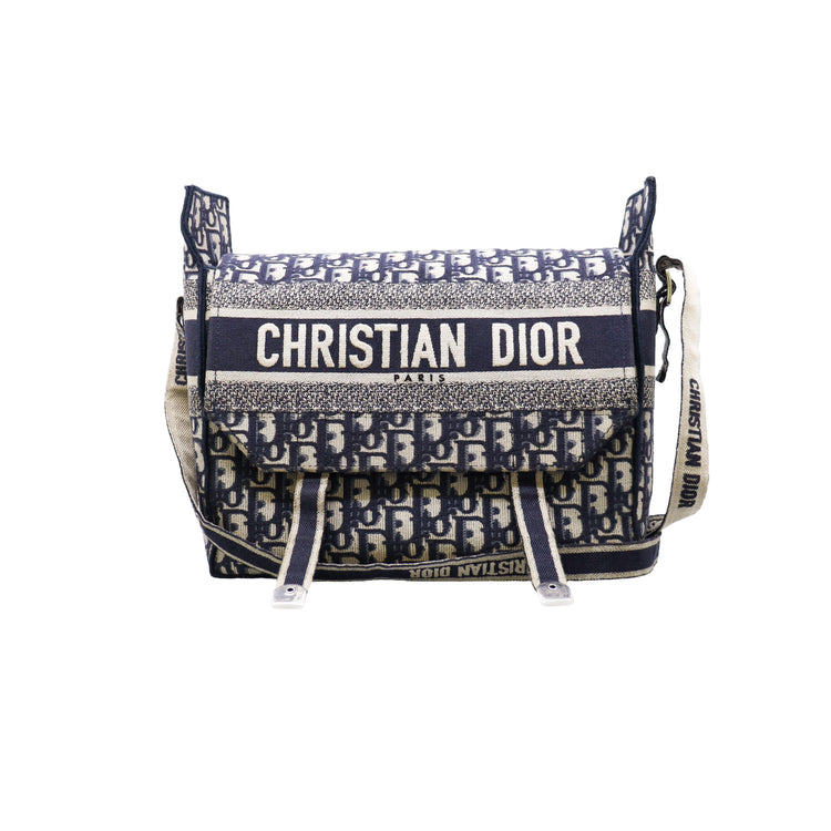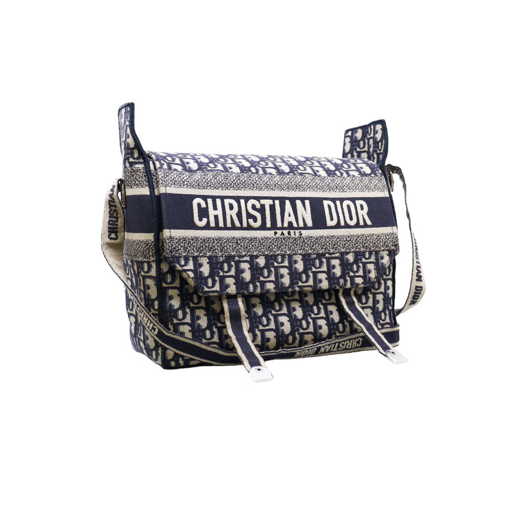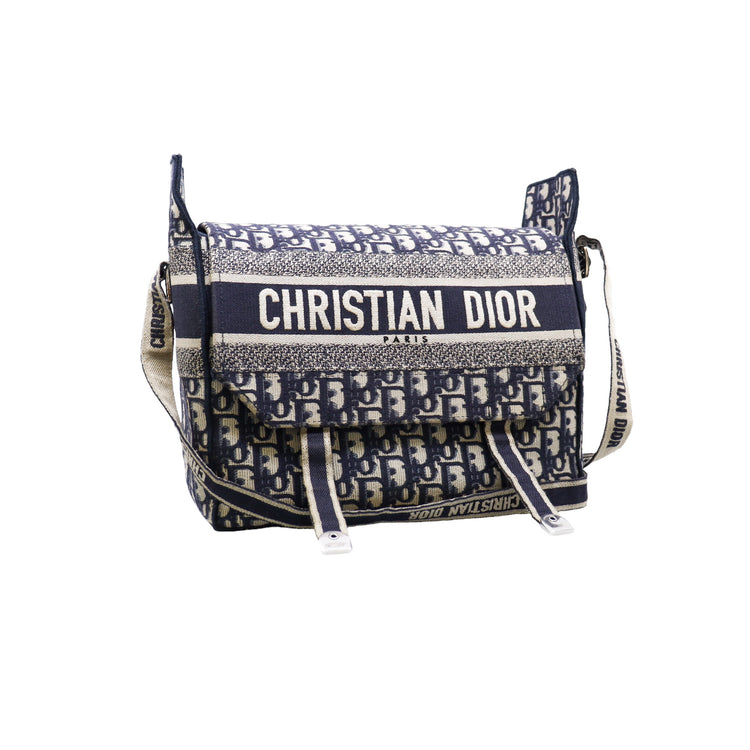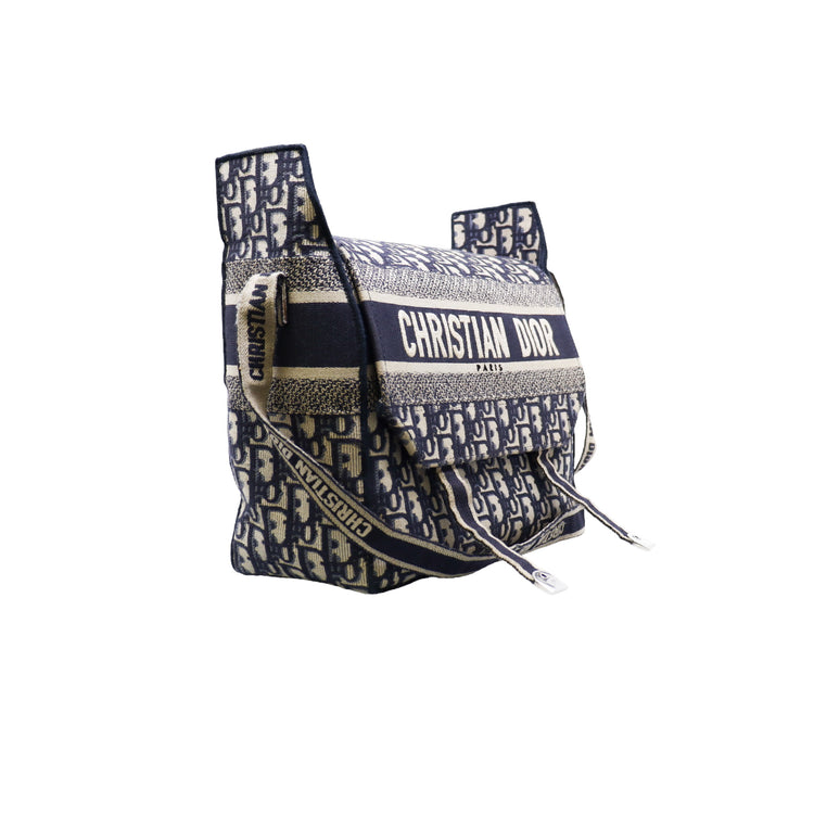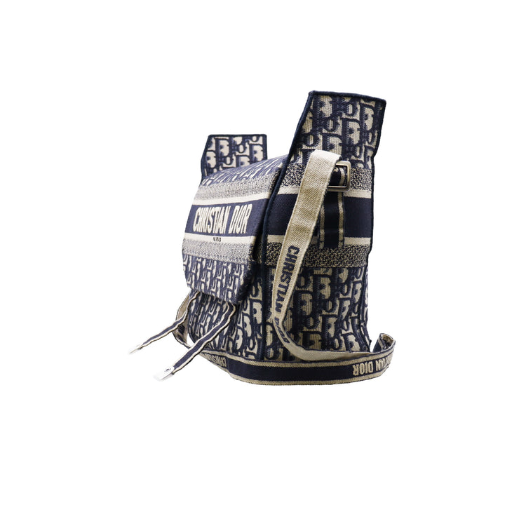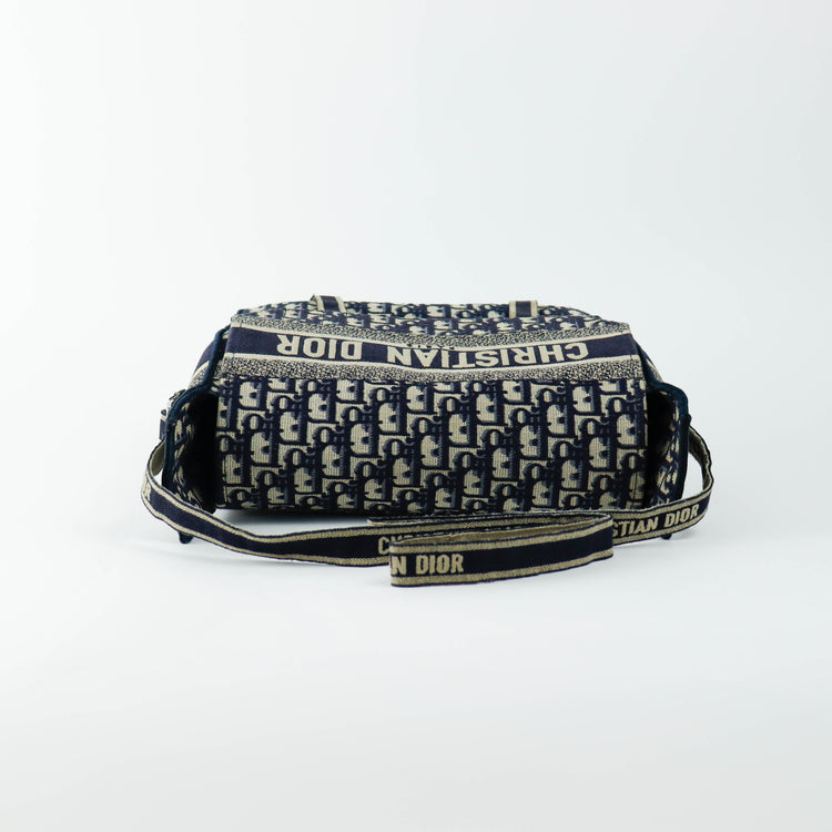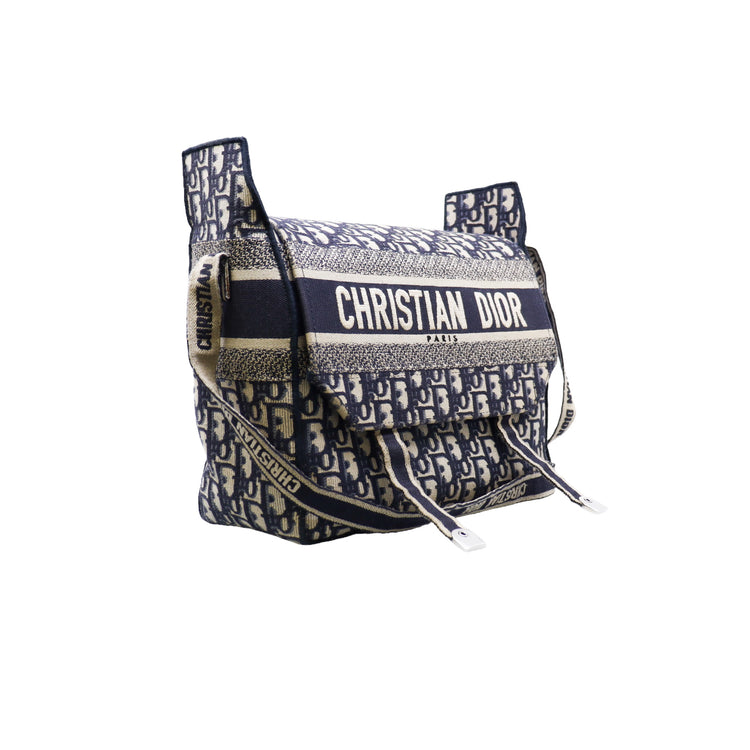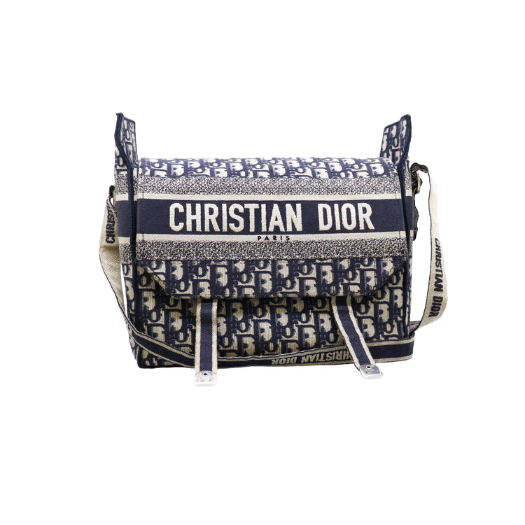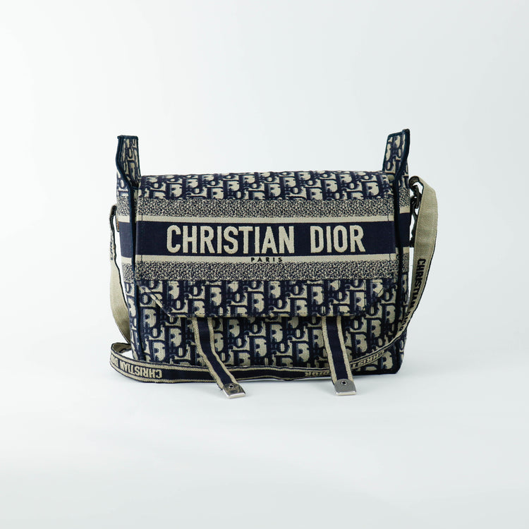 Bolso Christian Dior Diorcamp, confeccionado en Jacquard Oblique Monogram, herrajes en color plata desgastada, con bandolera ajustable, cierre en la solapa con hebillas y tirantes ajustables.