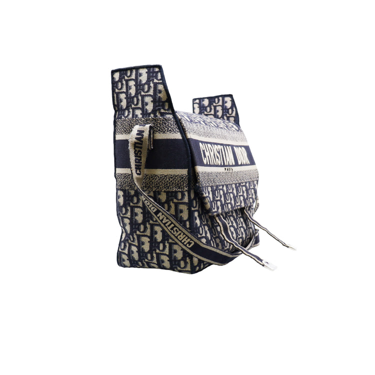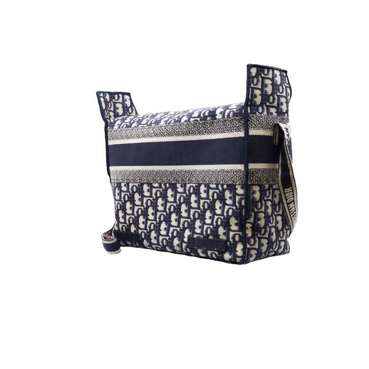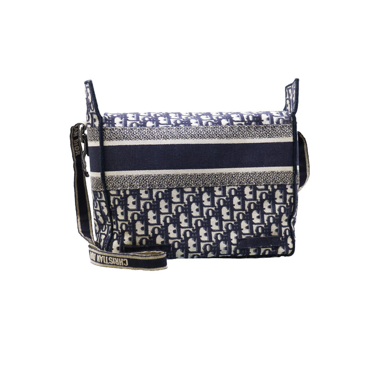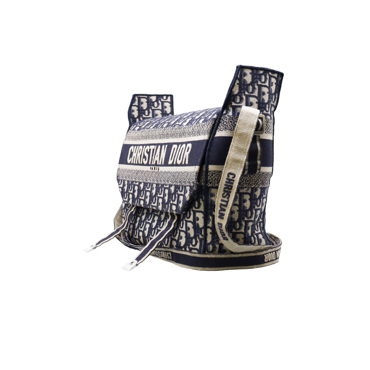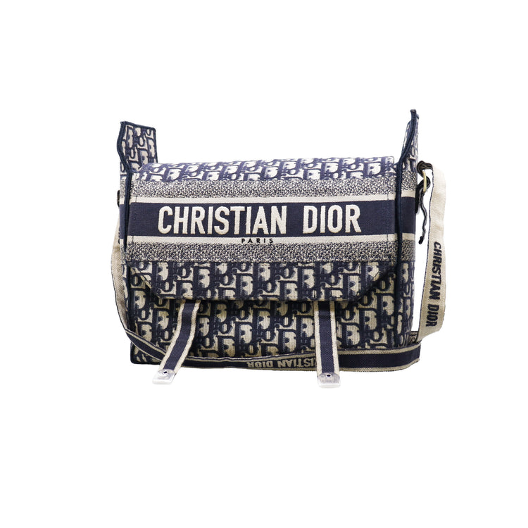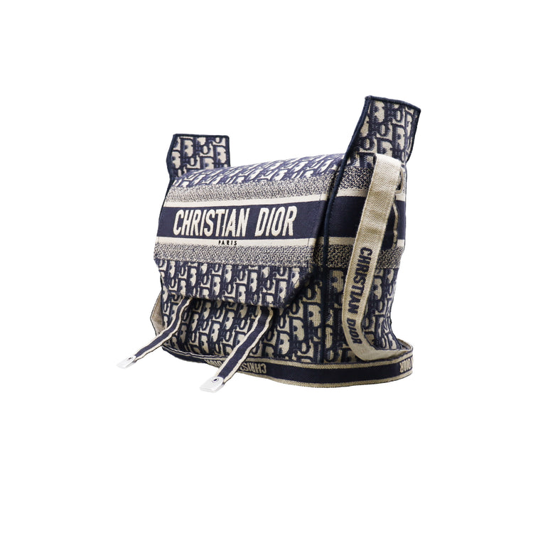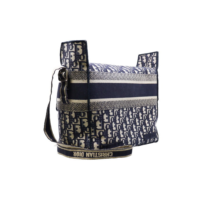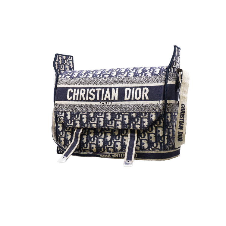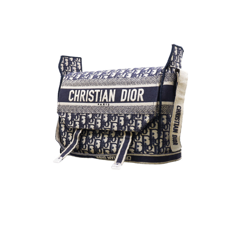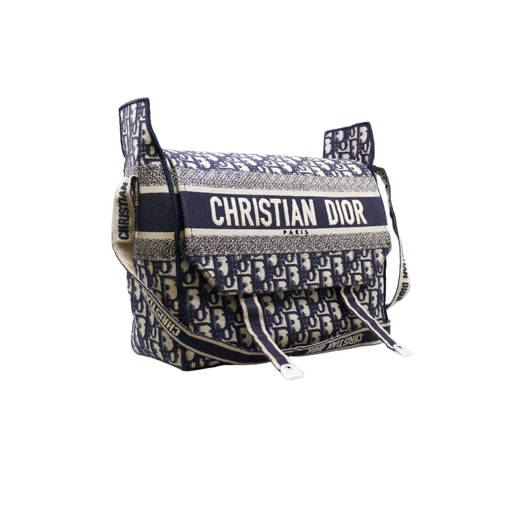 Bolso Christian Dior Diorcamp, confeccionado en Jacquard Oblique Monogram, herrajes en color plata desgastada, con bandolera ajustable, cierre en la solapa con hebillas y tirantes ajustables.