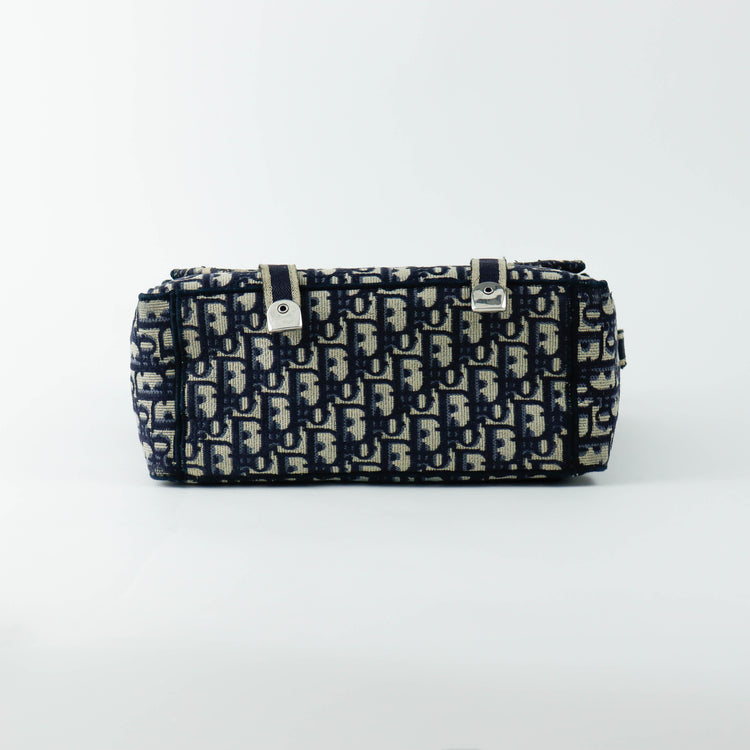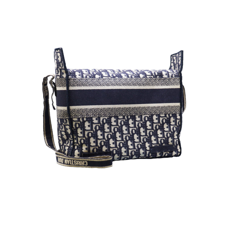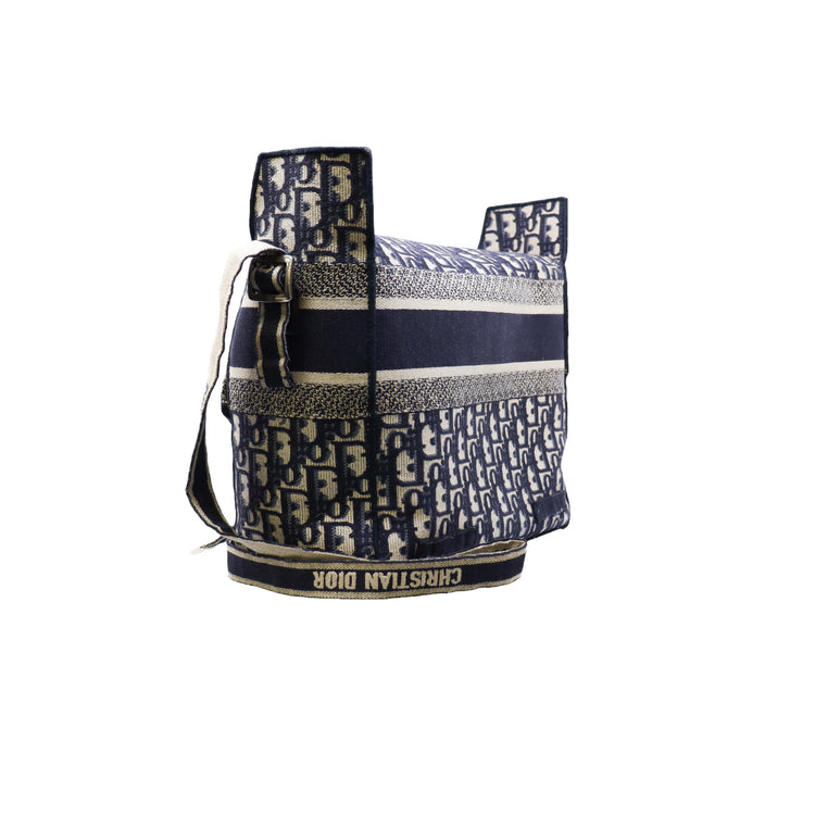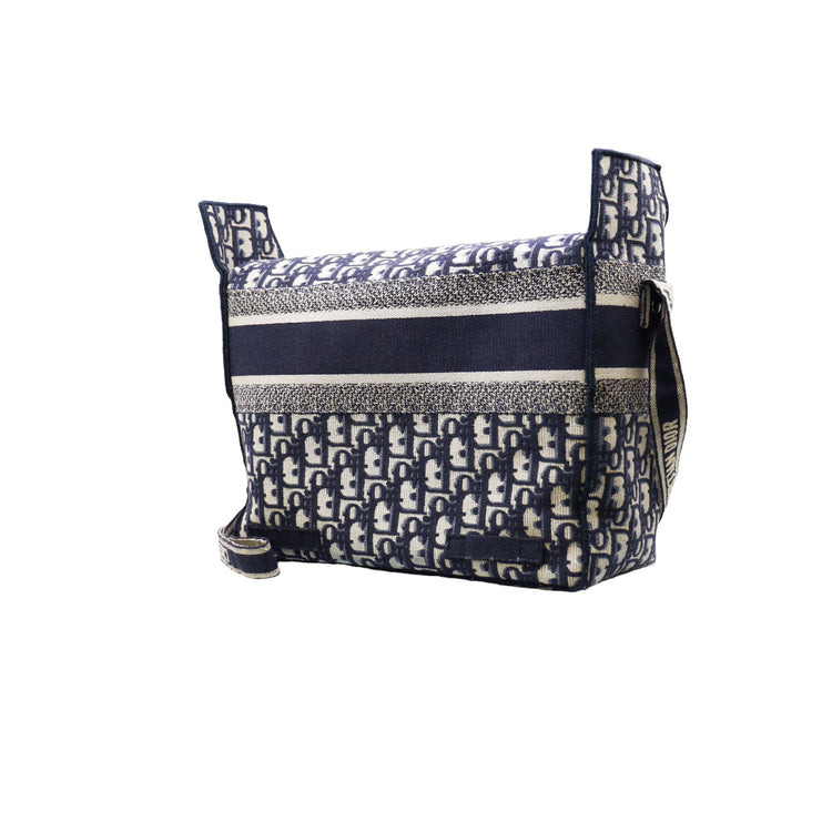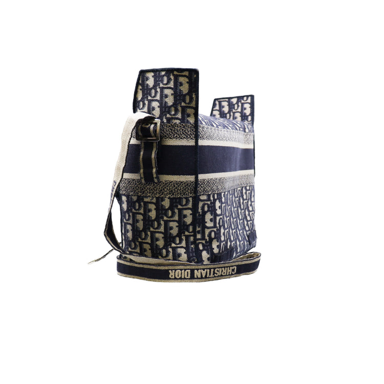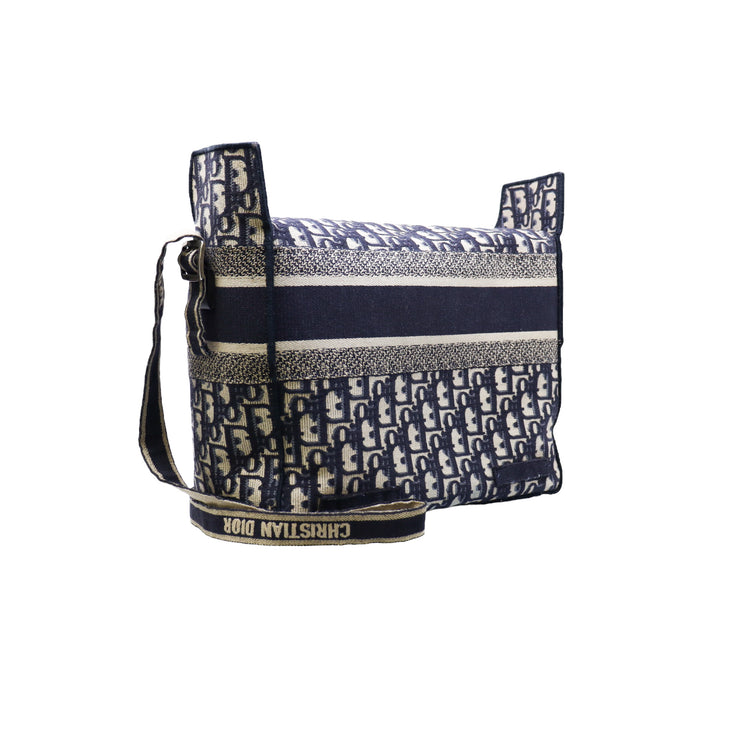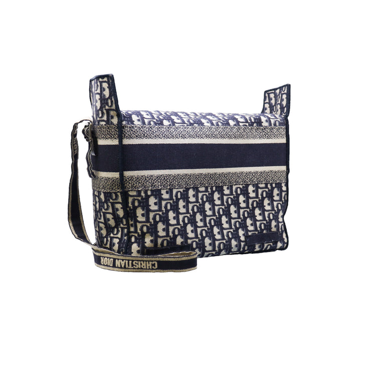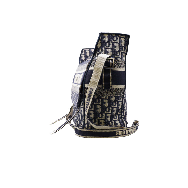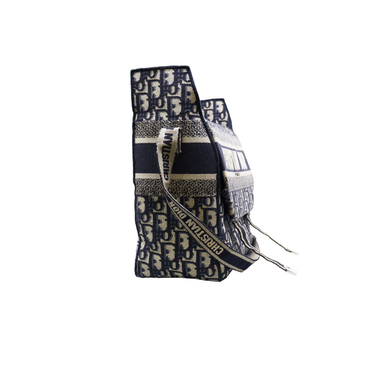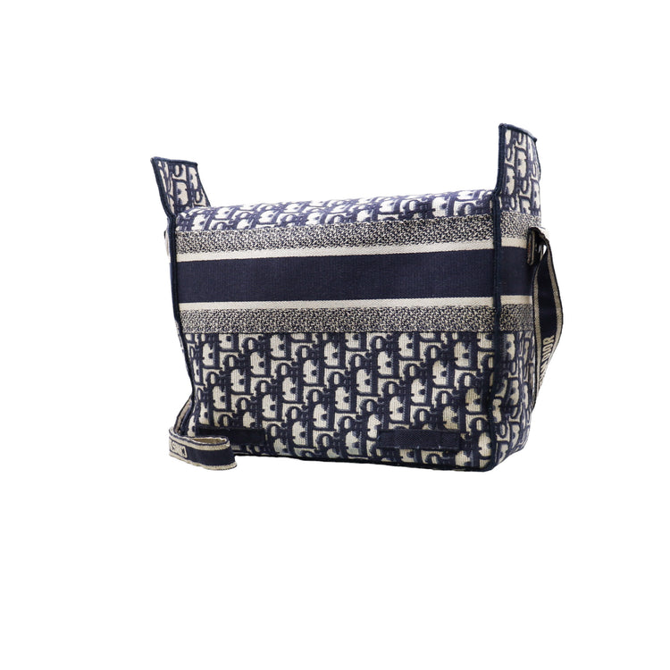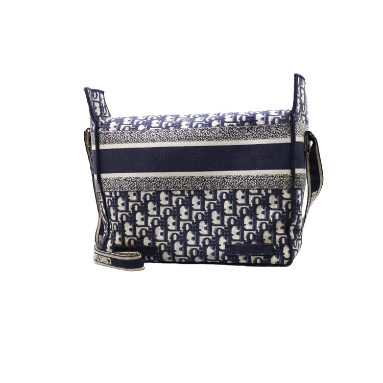 Bolso Christian Dior Diorcamp, confeccionado en Jacquard Oblique Monogram, herrajes en color plata desgastada, con bandolera ajustable, cierre en la solapa con hebillas y tirantes ajustables.