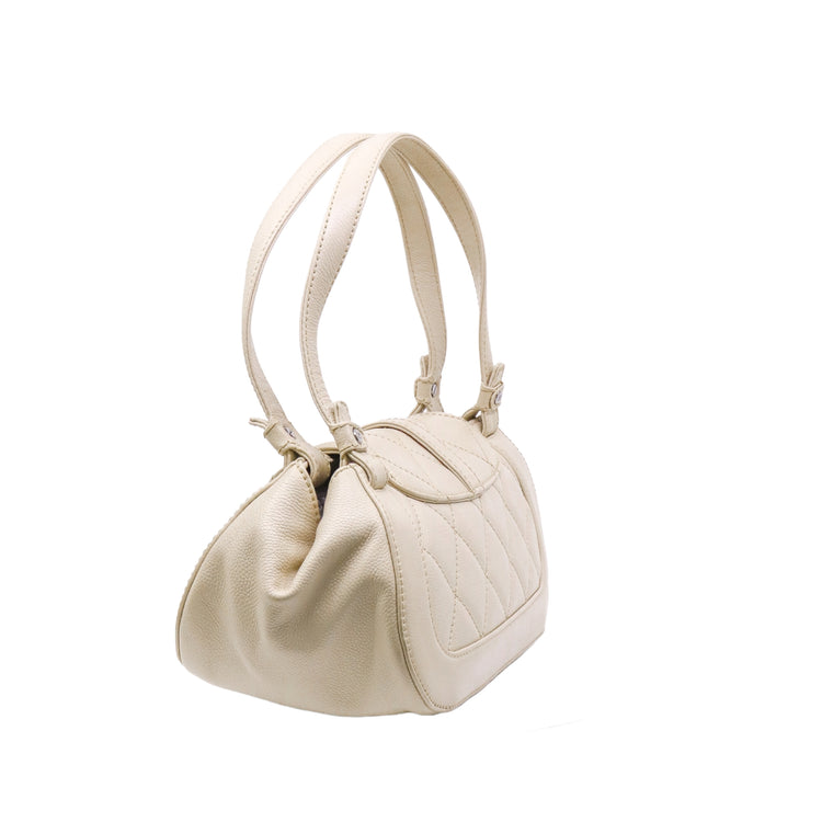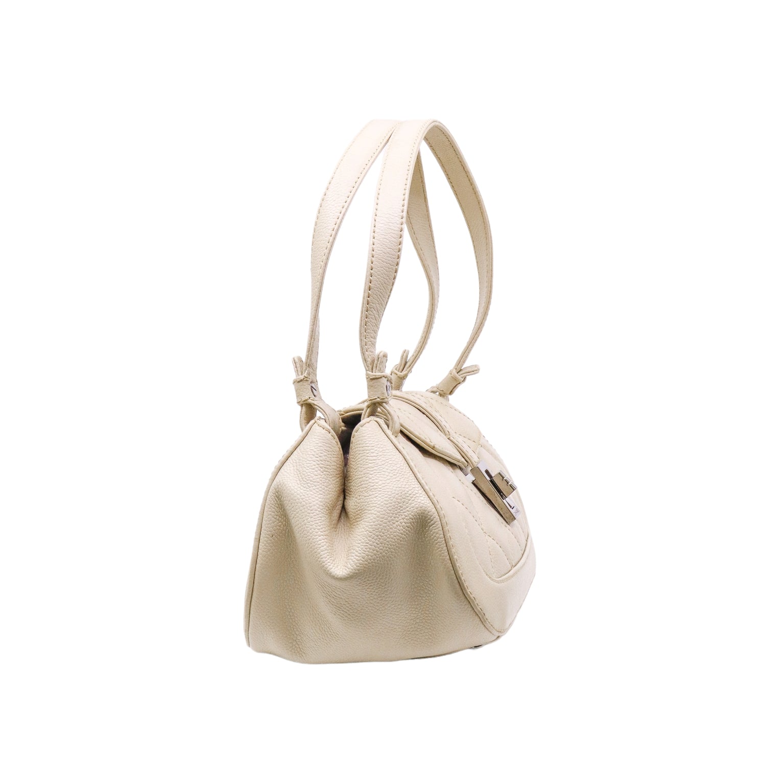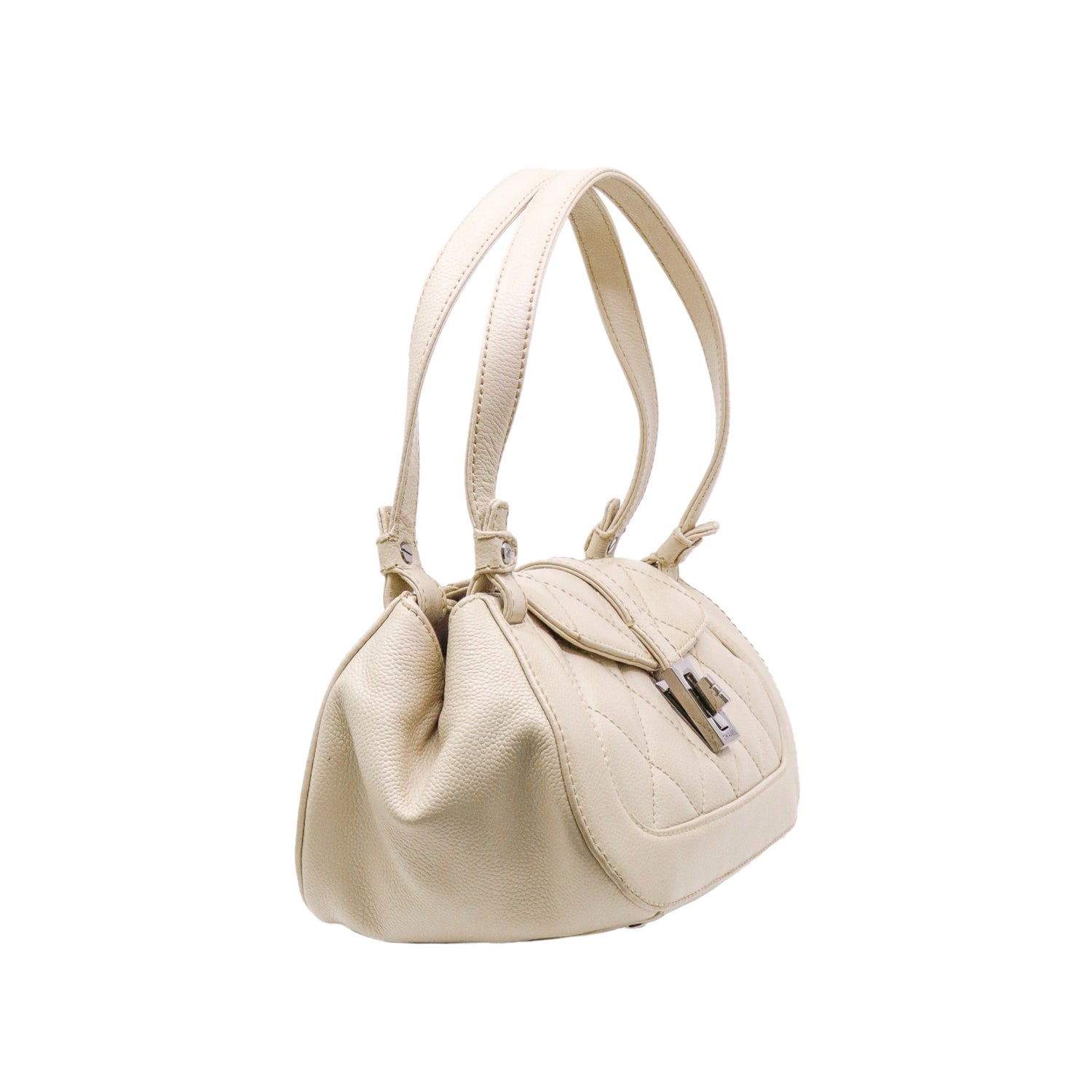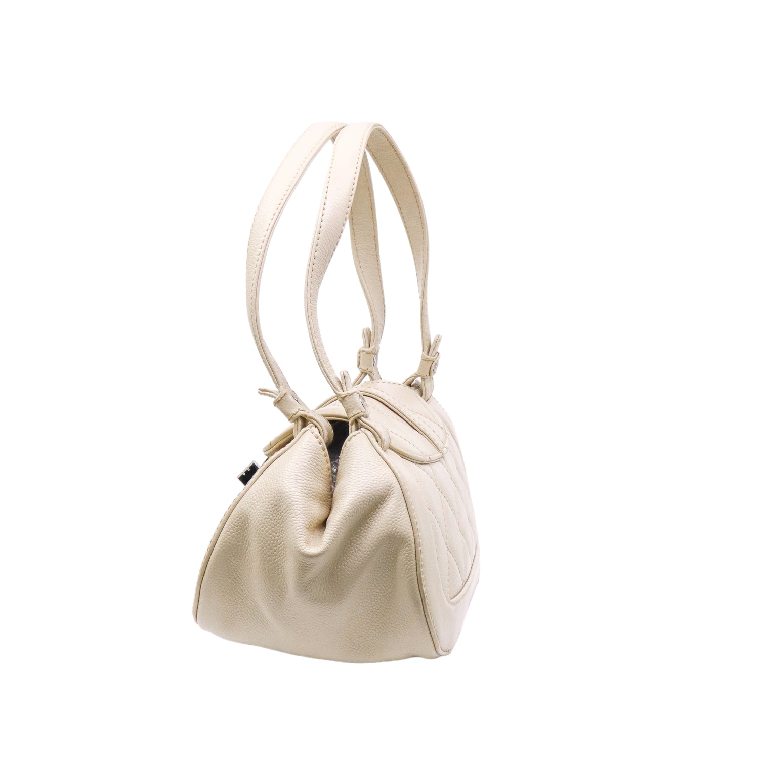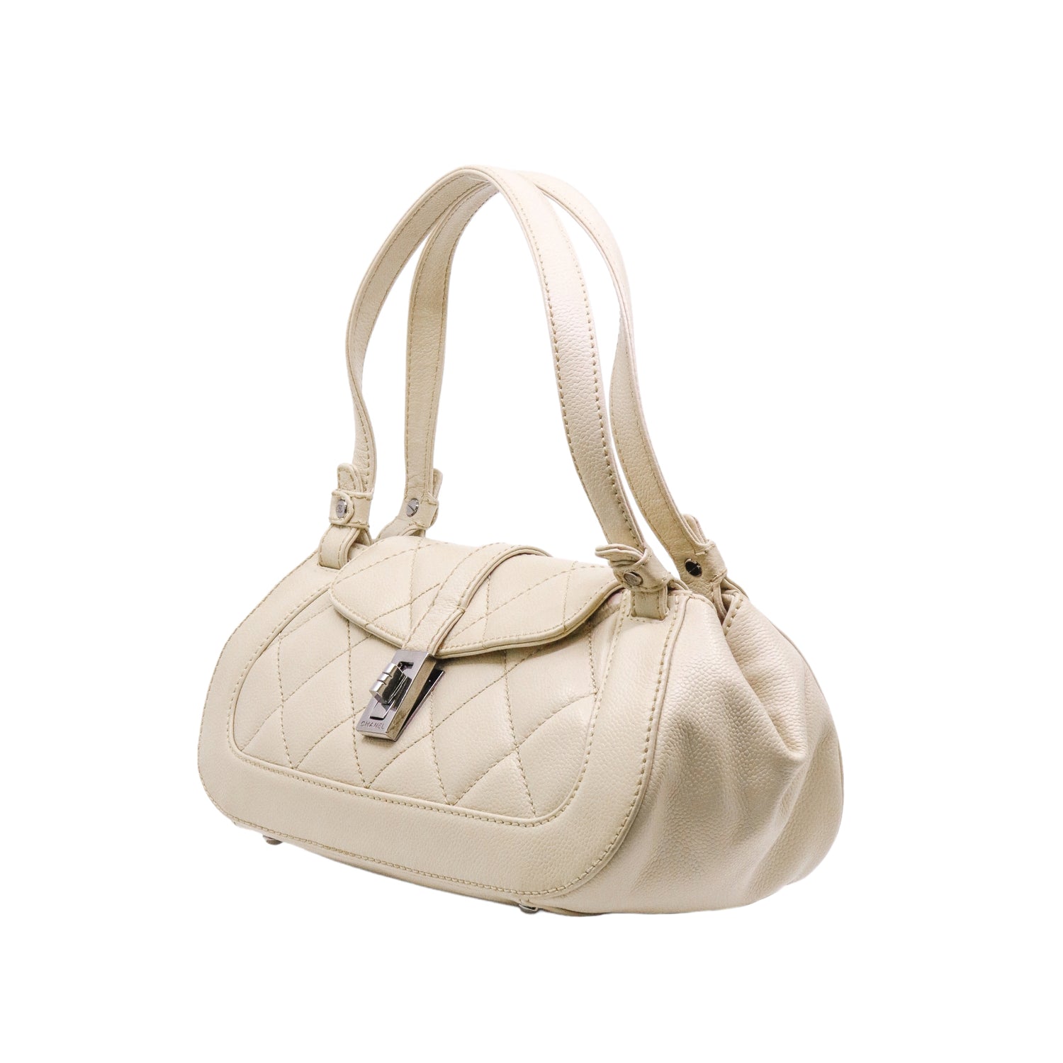 Bolso clásico Chanel Mademoiselle en piel tipo caviar acolchada en color beige, forro interno poco sucio en mismo tono, con 2 asas semi-rígidas, bolso interno con cierre de cremallera, broche frontal y herrajes en metal plateado.