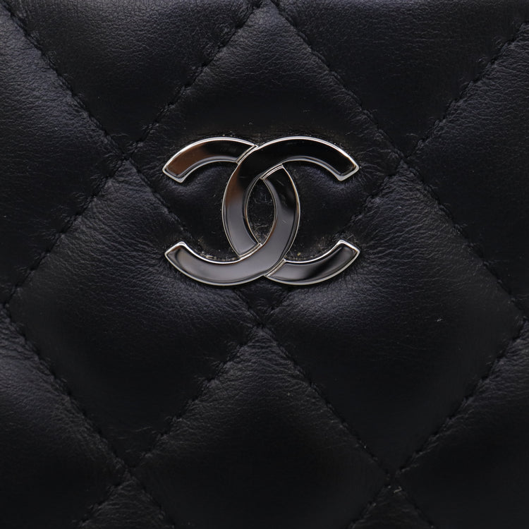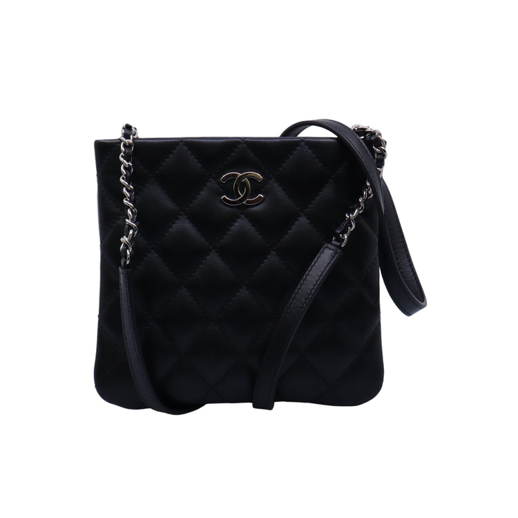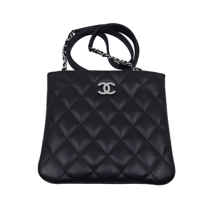 Mini bolso Employee Uniform Chanel, confeccionado en suave piel acochada de cordero color negro, con bandolera de piel con cadena no ajustable de 55 cms de caída, herraje en color plateado.