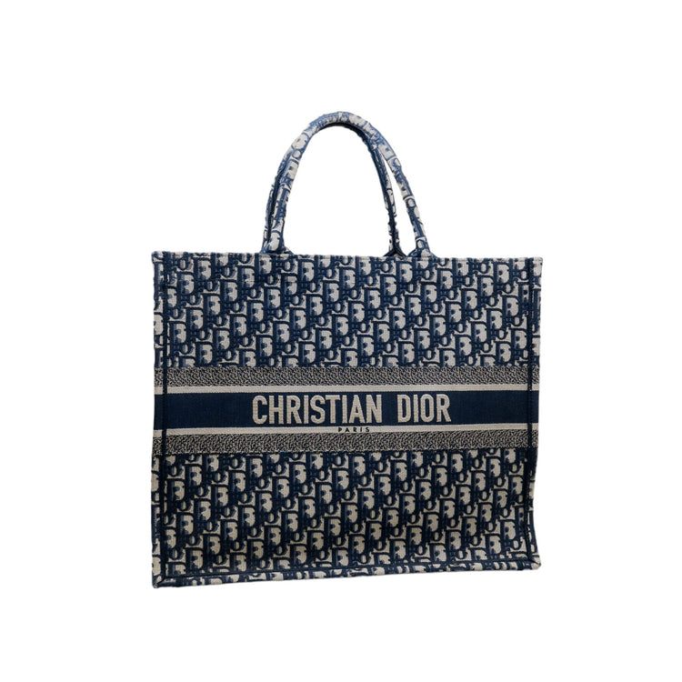 Bolso Christian Dior tipo Tote, confeccionado en lienzo blanco con negro con el monograma de la marca, poco sucia en asas, base y esquina. ARTICULO DE SEGUNDA MANO EN BUEN ESTADO. Cuenta con caja, sin cubre polvo.
