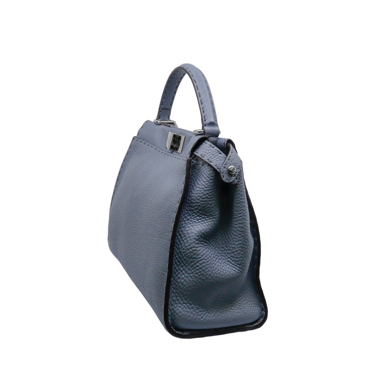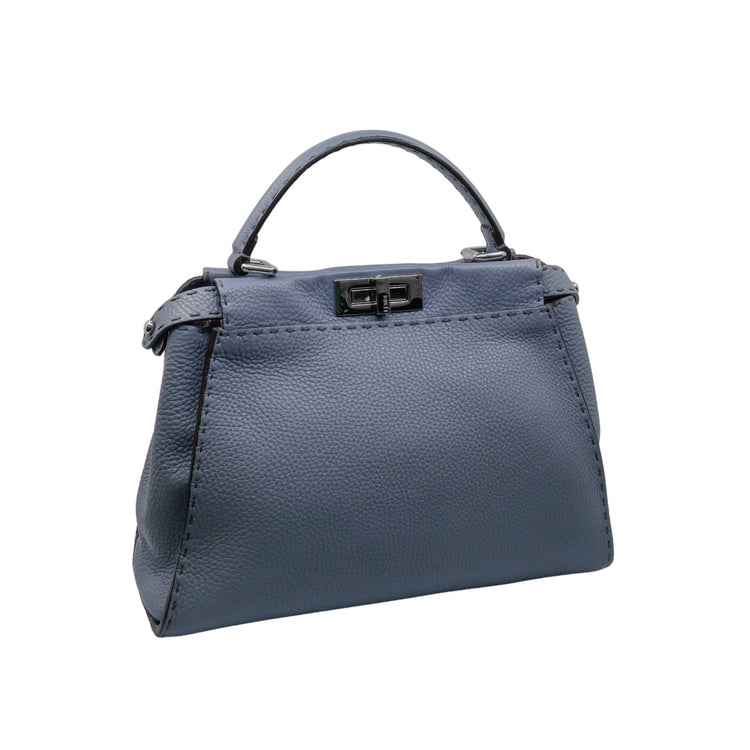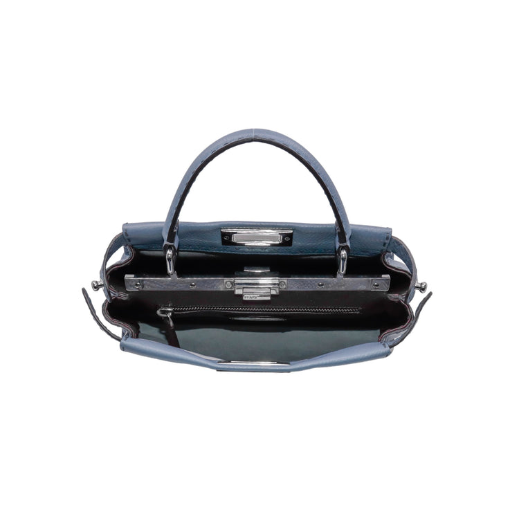 Bolso Fendi Peekaboo Medium IseeU, confeccionado en piel color azul, interior en piel color vino, con 2 compartimentos, 1 de ellos con cierre de cremallera, incluye correa de piel para llevar al hombro.