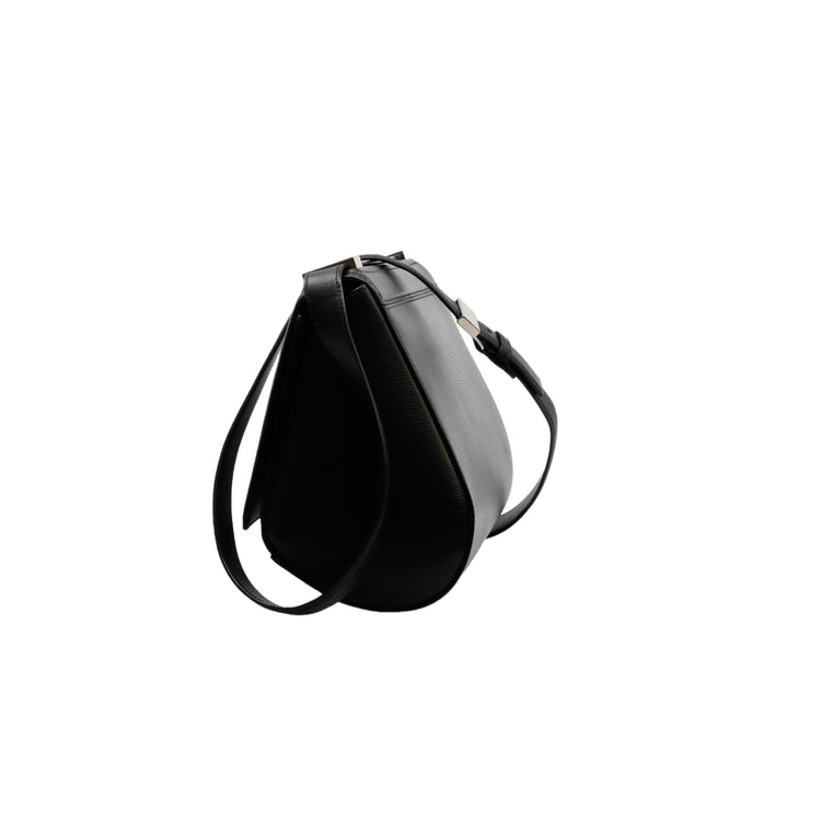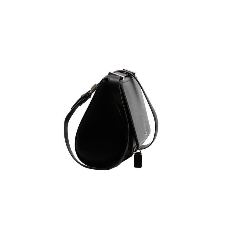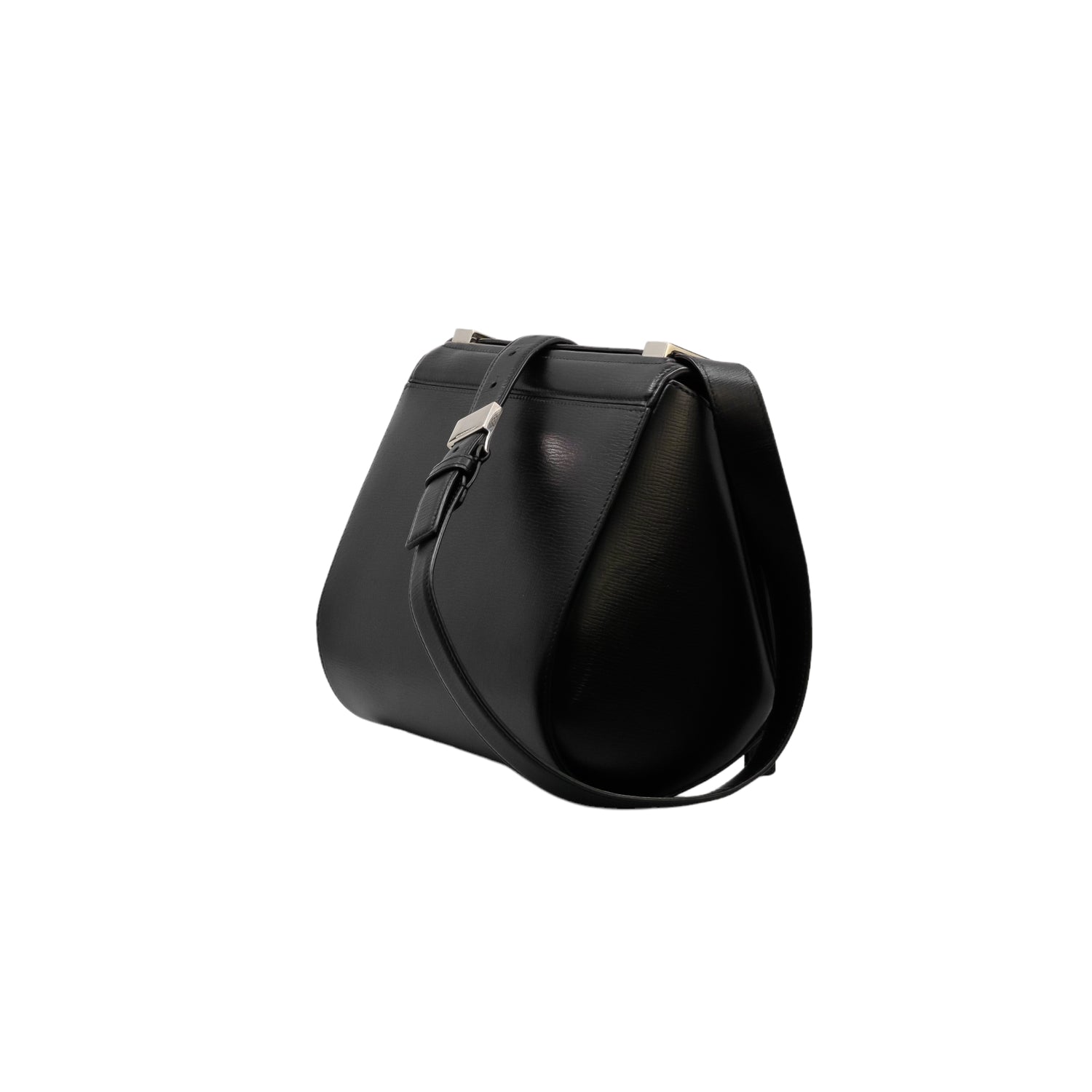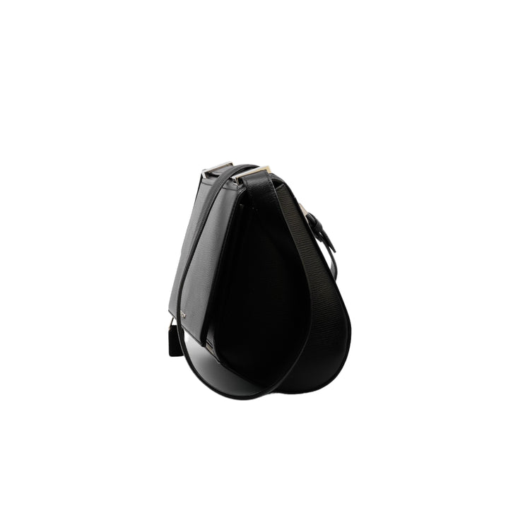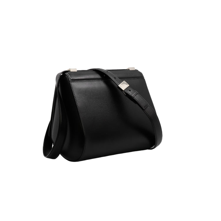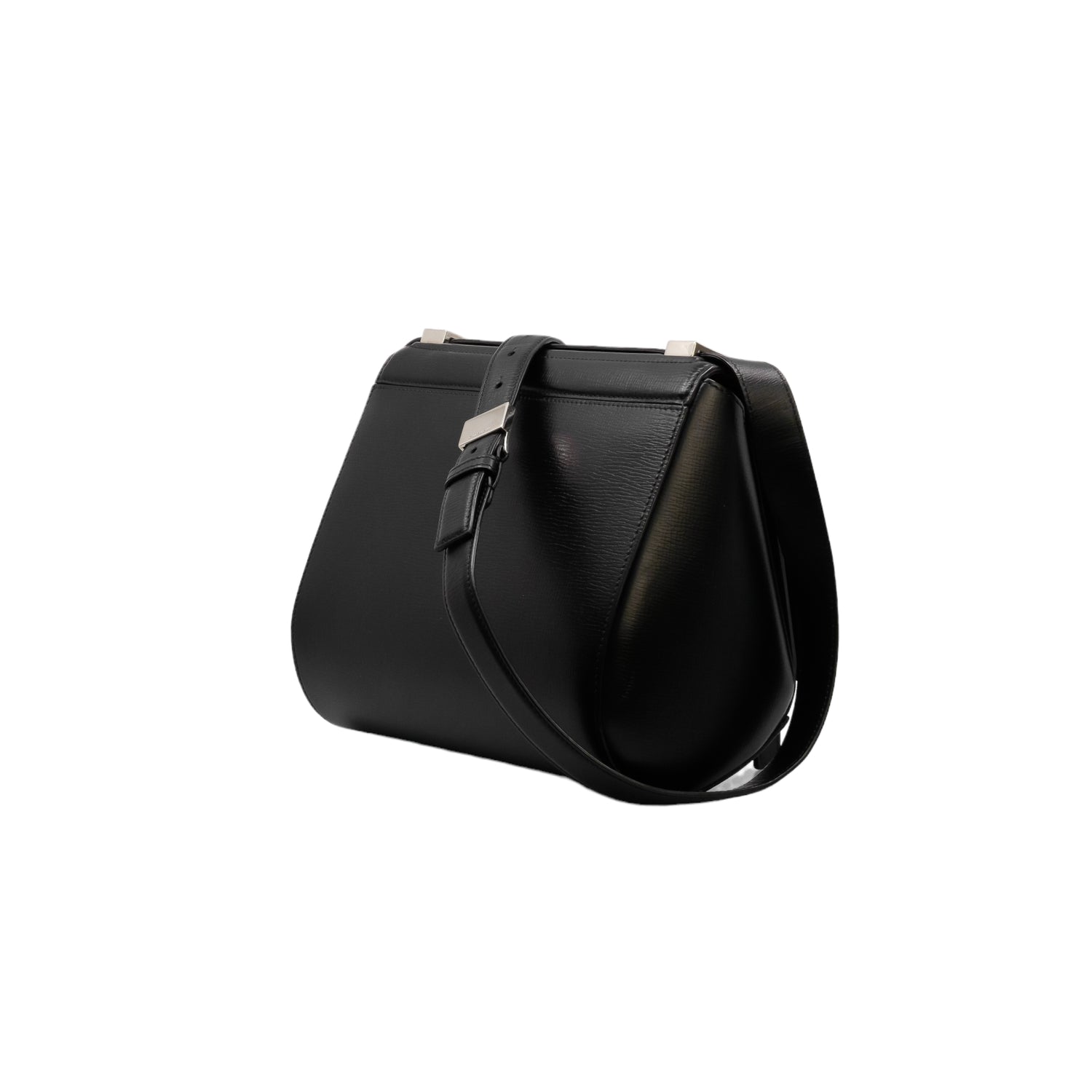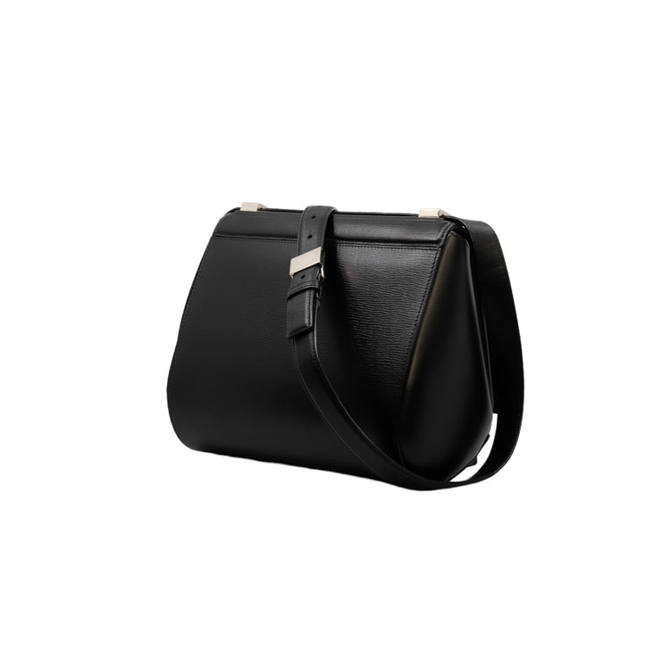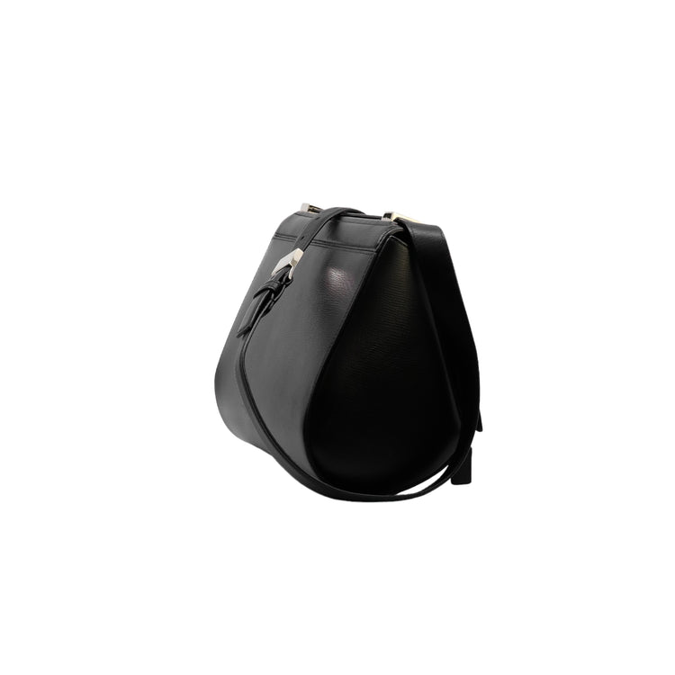 Bolso de la marca Givenchy modelo Caja de Pandora, confeccionado en piel rígida color negro, con asa-bandolera autoajustable en mismo material, interior en ante negro, con bolsillo interno, cierres de cremallera y herrajes en color dorado, solapa con seguro de botón.