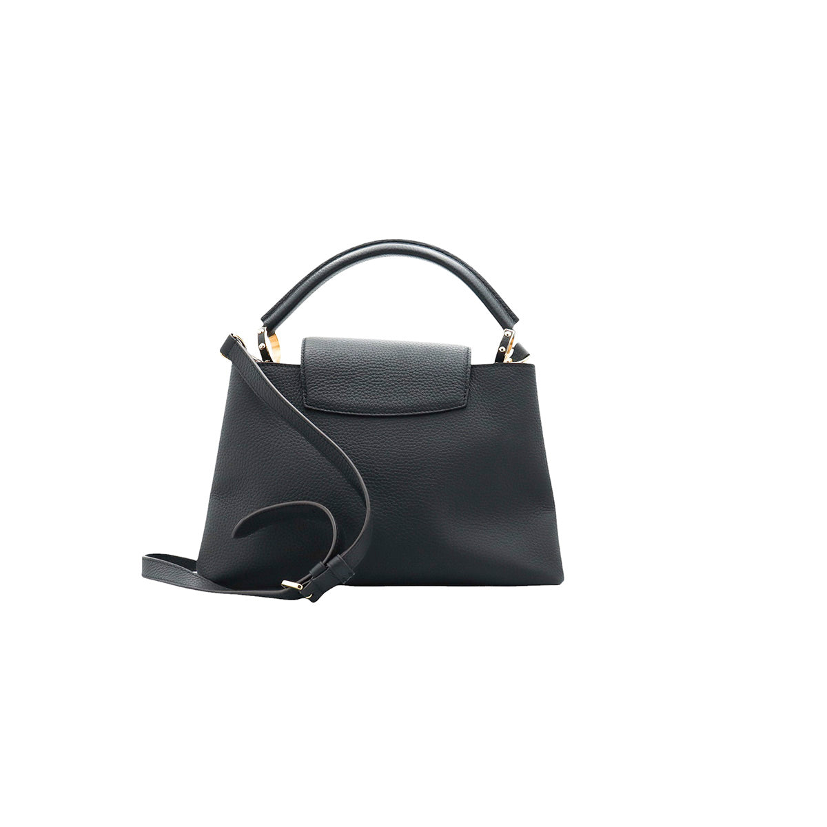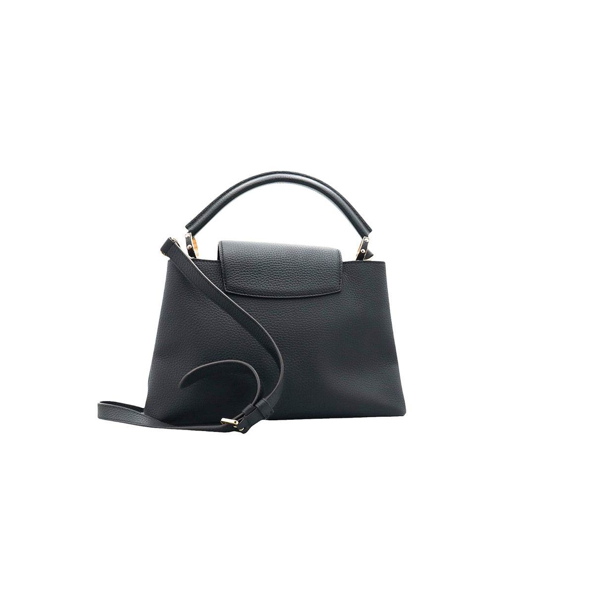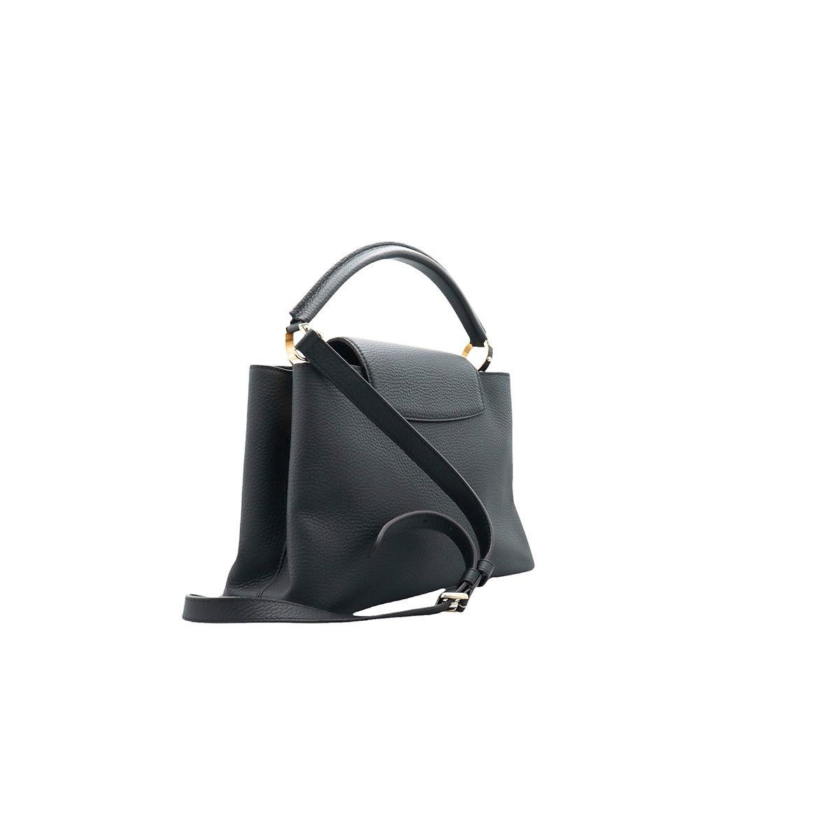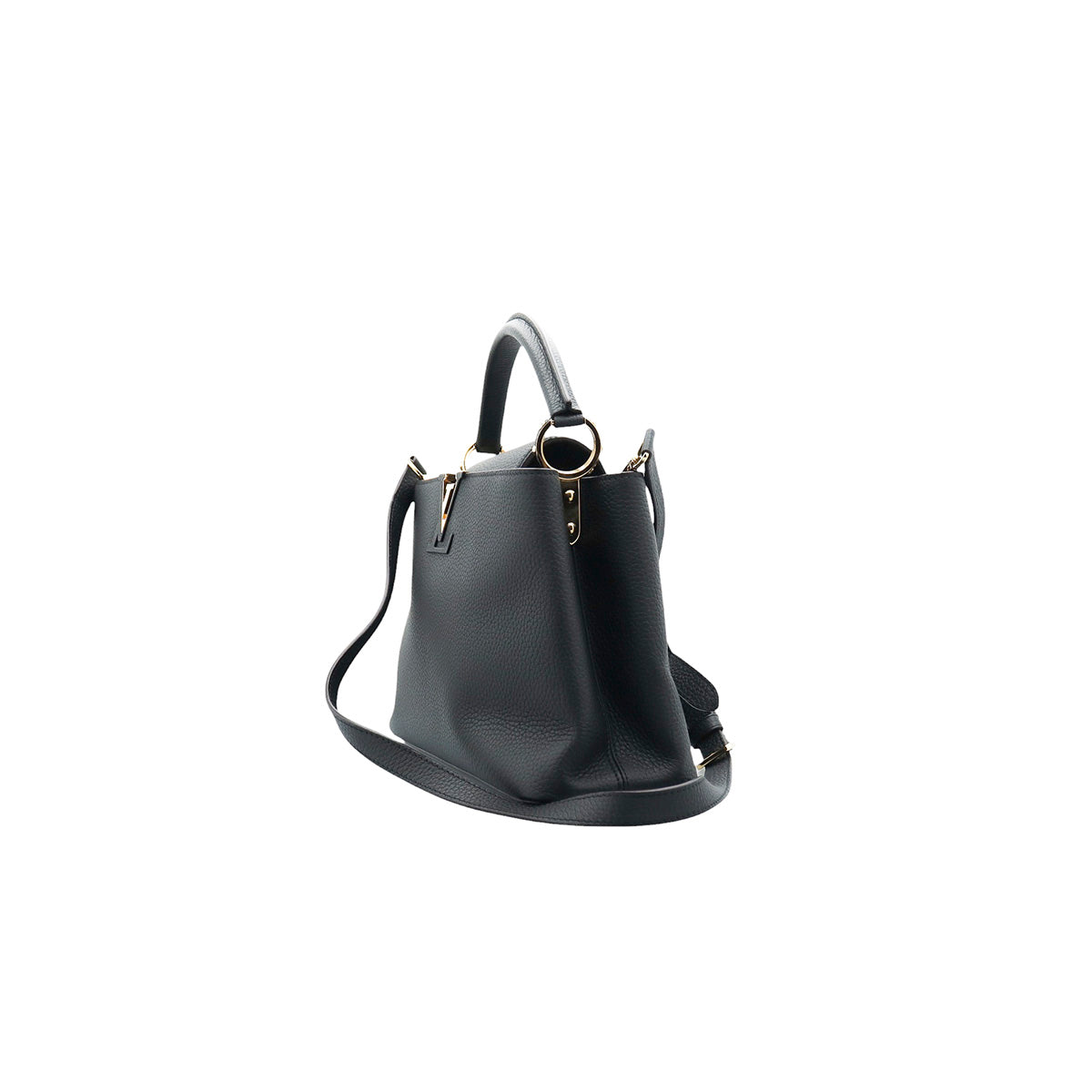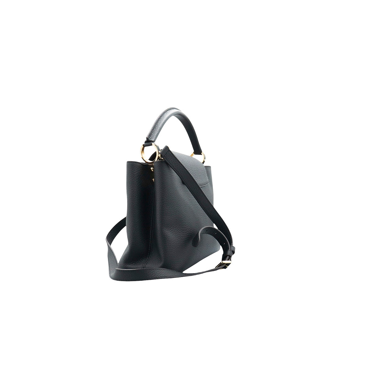 Bolso Louis Vuitton de la colección Capucines, confeccionado en piel taurillon, asa rígida y bandolera, con forro interno en piel color rosa, herrajes en color dorado, poco sucia.