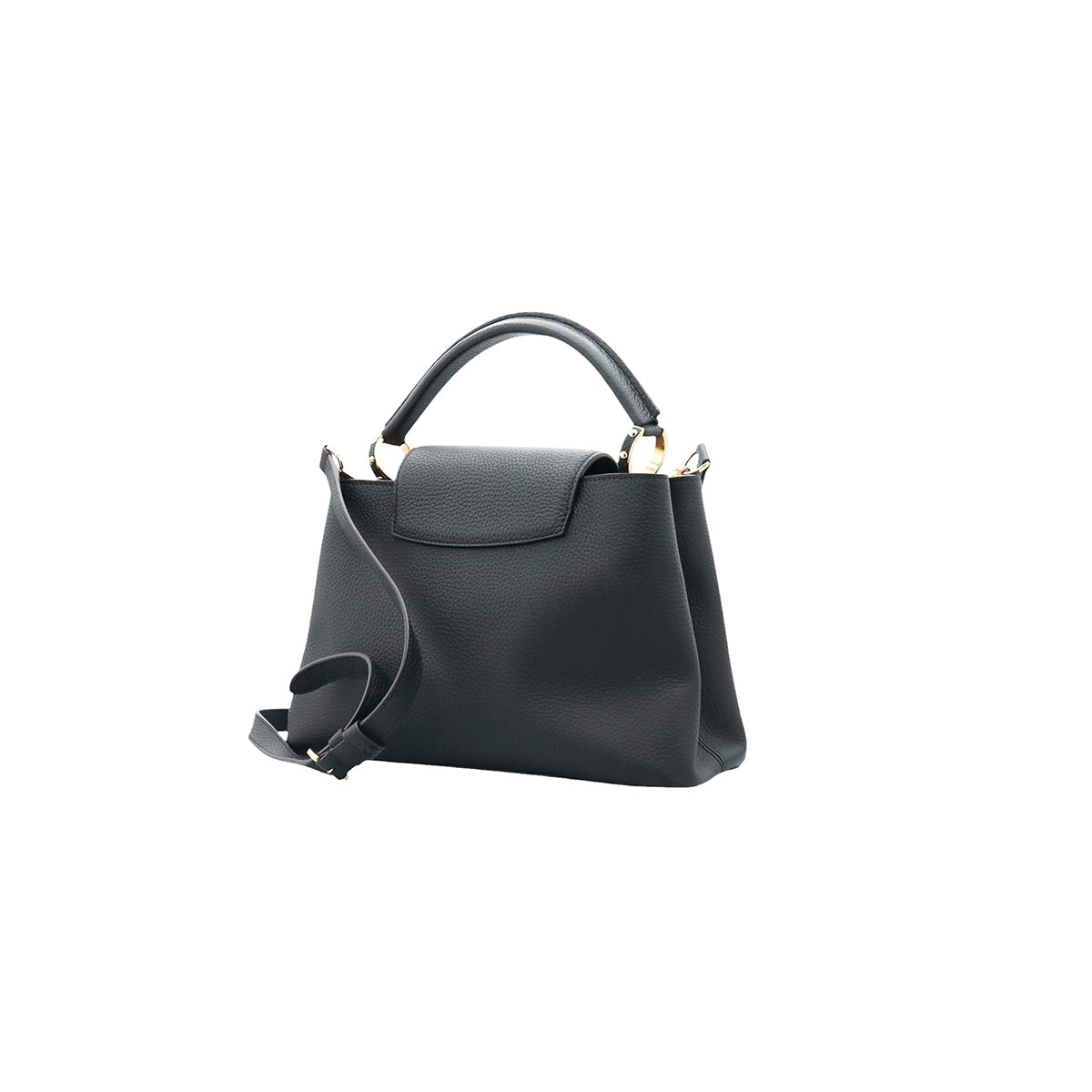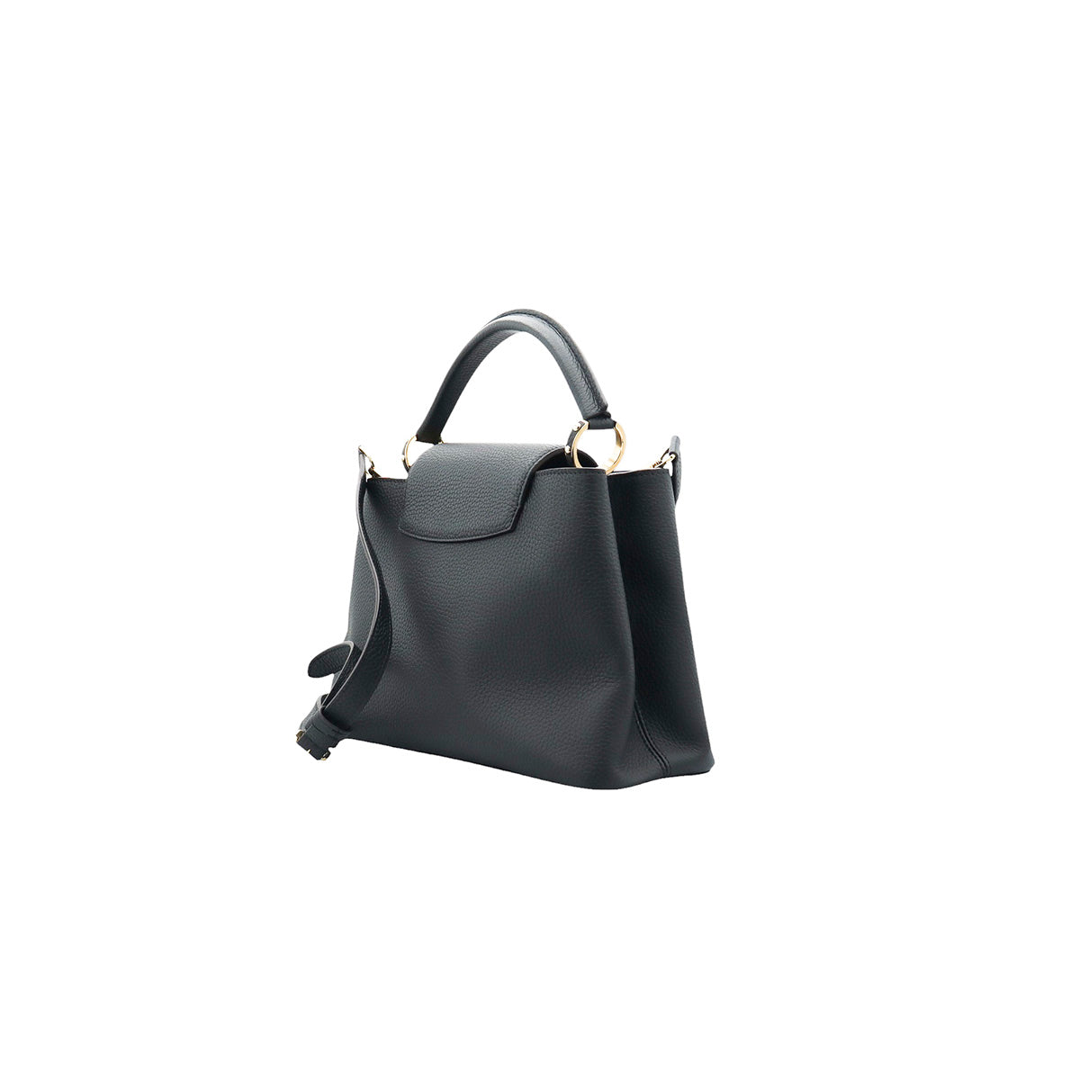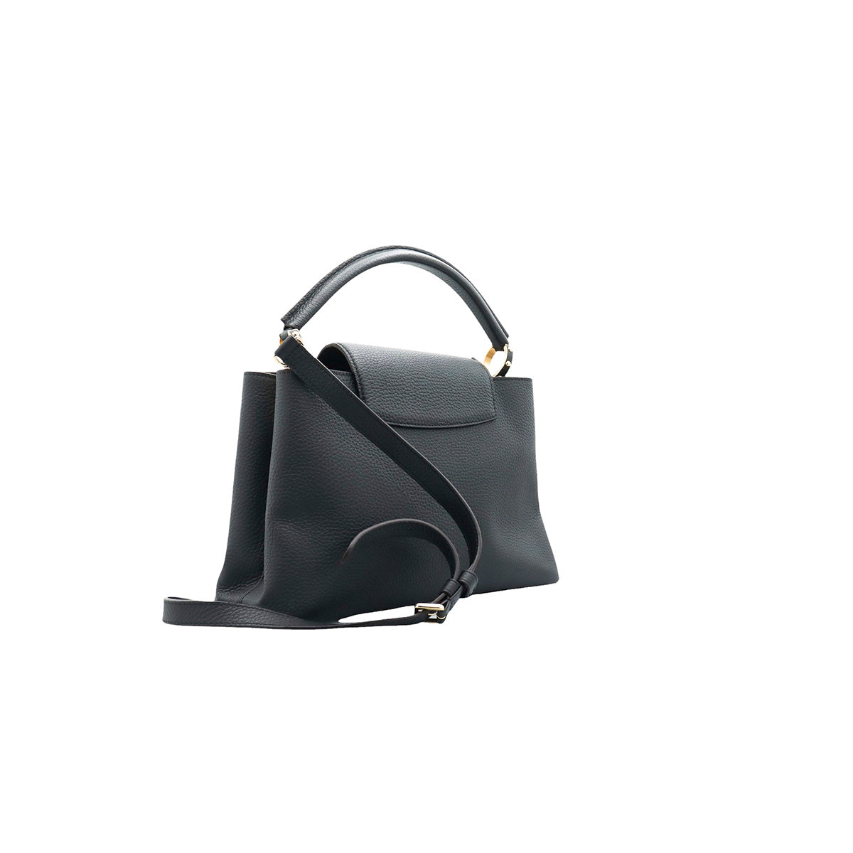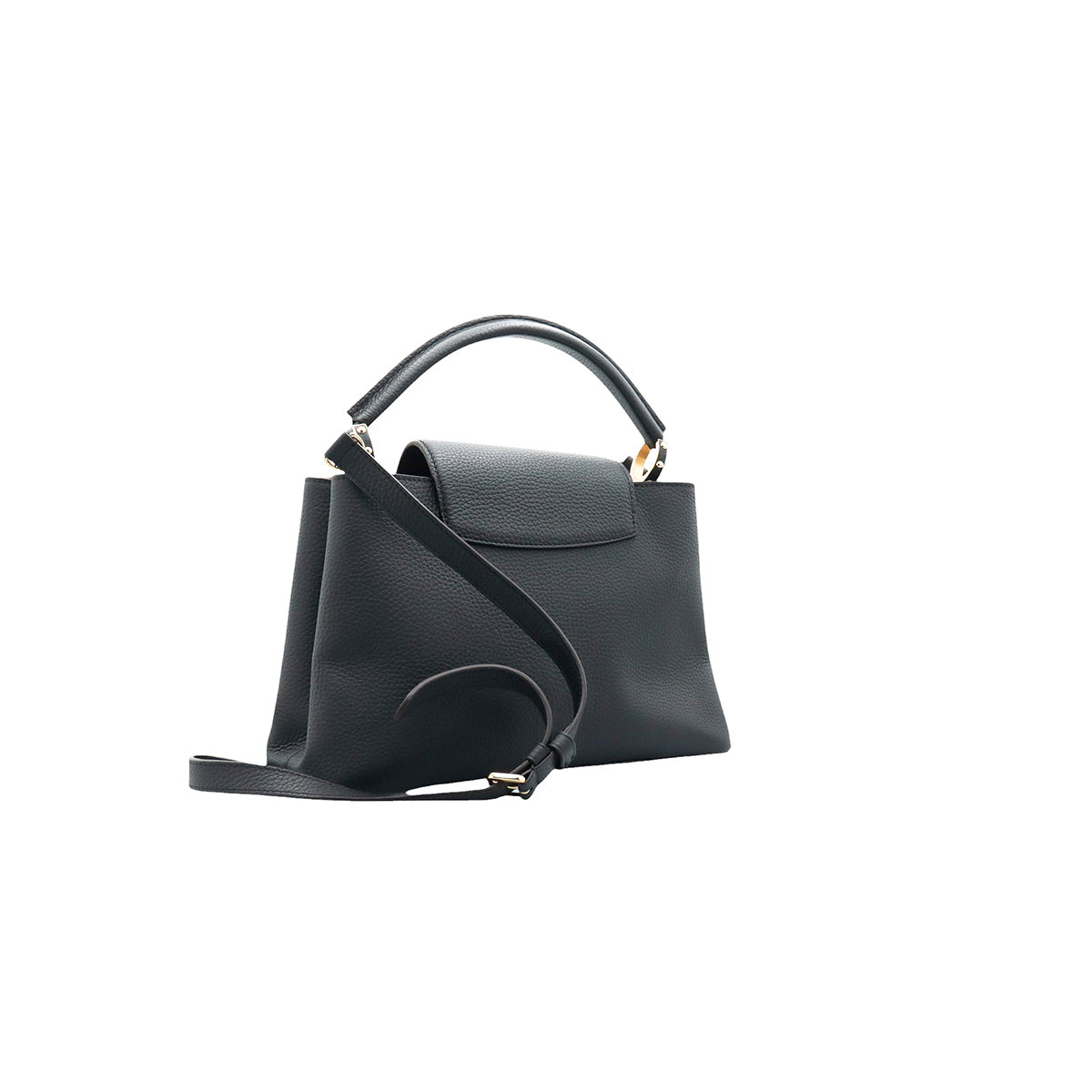 Bolso Louis Vuitton de la colección Capucines, confeccionado en piel taurillon, asa rígida y bandolera, con forro interno en piel color rosa, herrajes en color dorado, poco sucia.