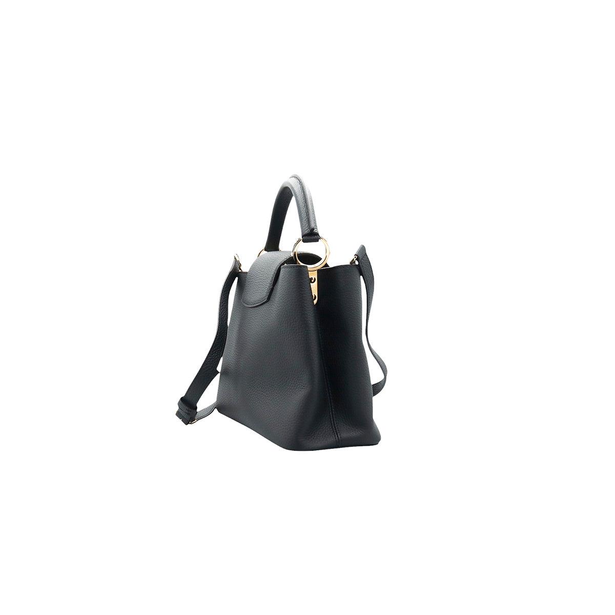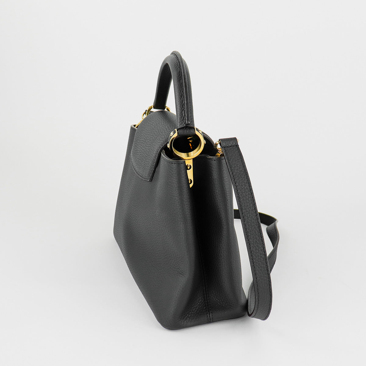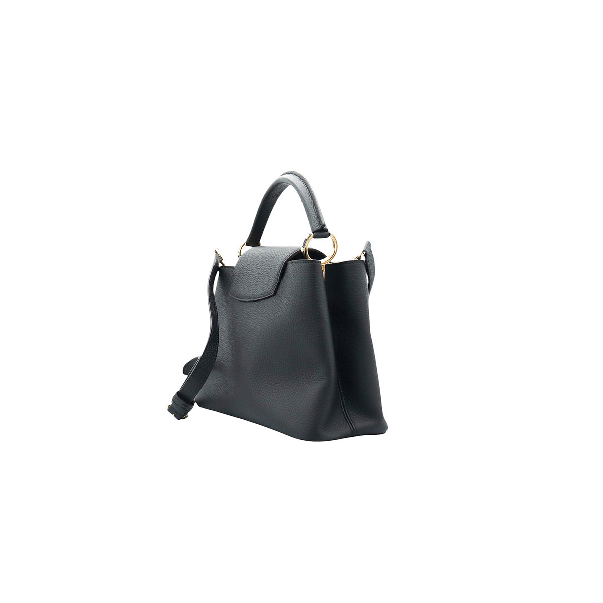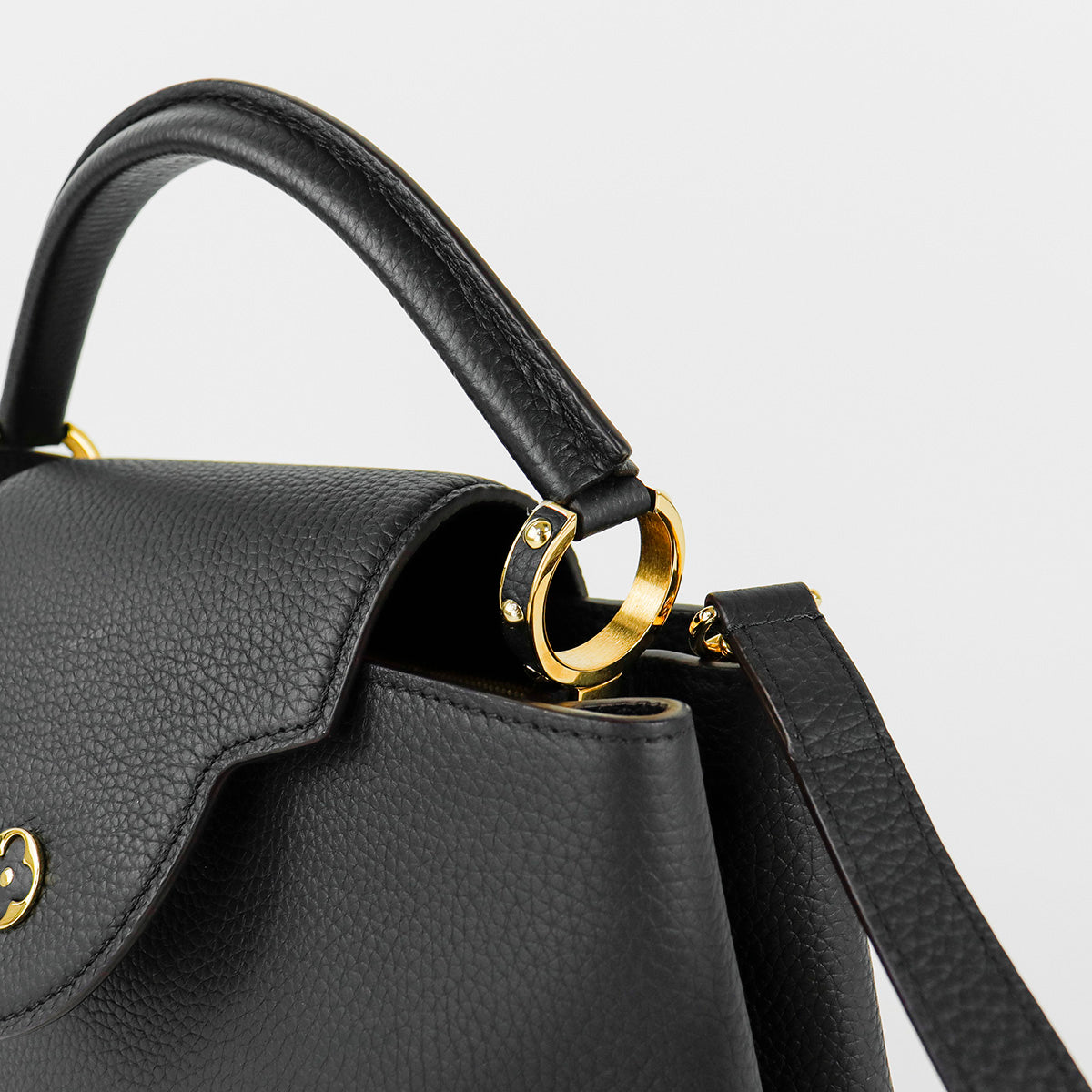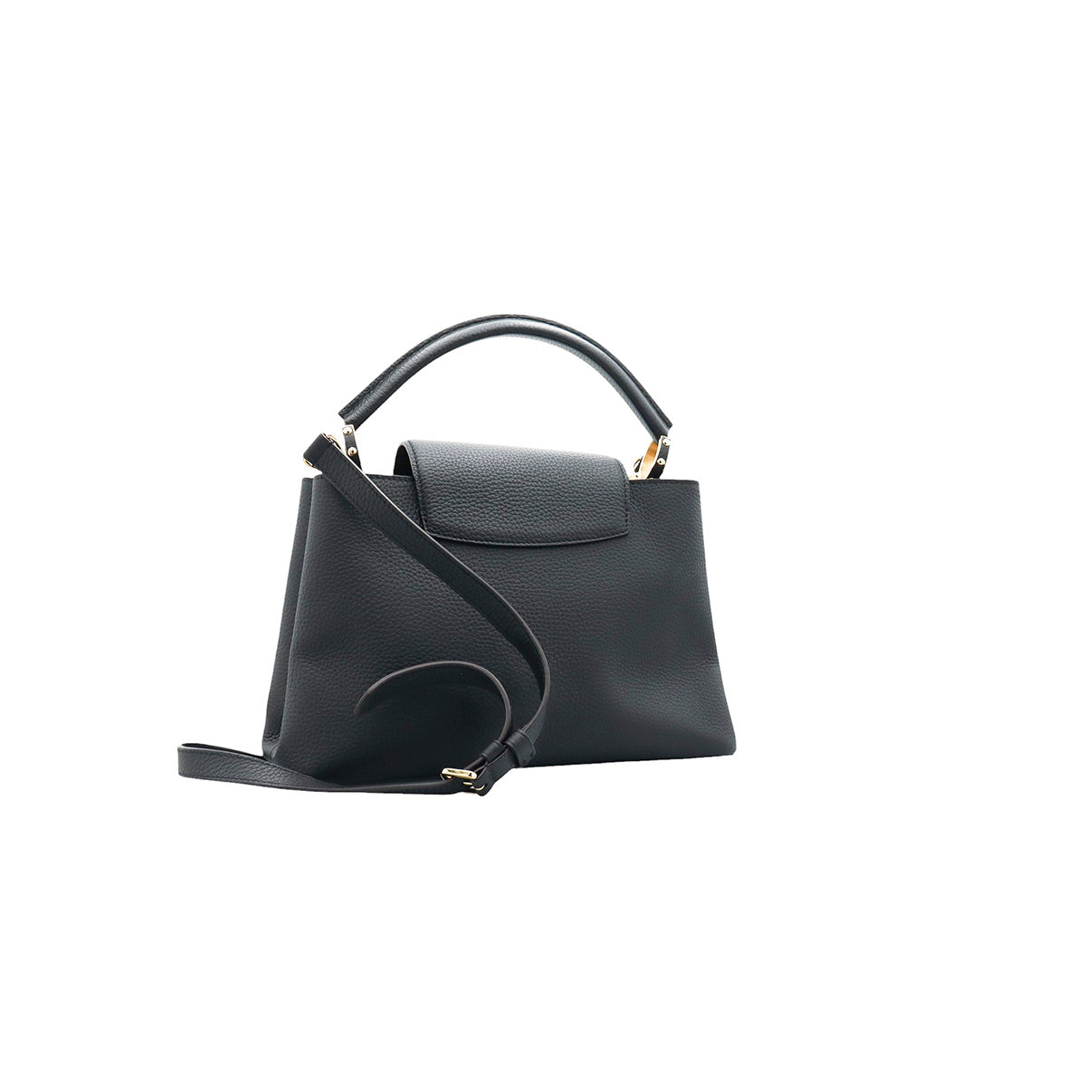 Bolso Louis Vuitton de la colección Capucines, confeccionado en piel taurillon, asa rígida y bandolera, con forro interno en piel color rosa, herrajes en color dorado, poco sucia.