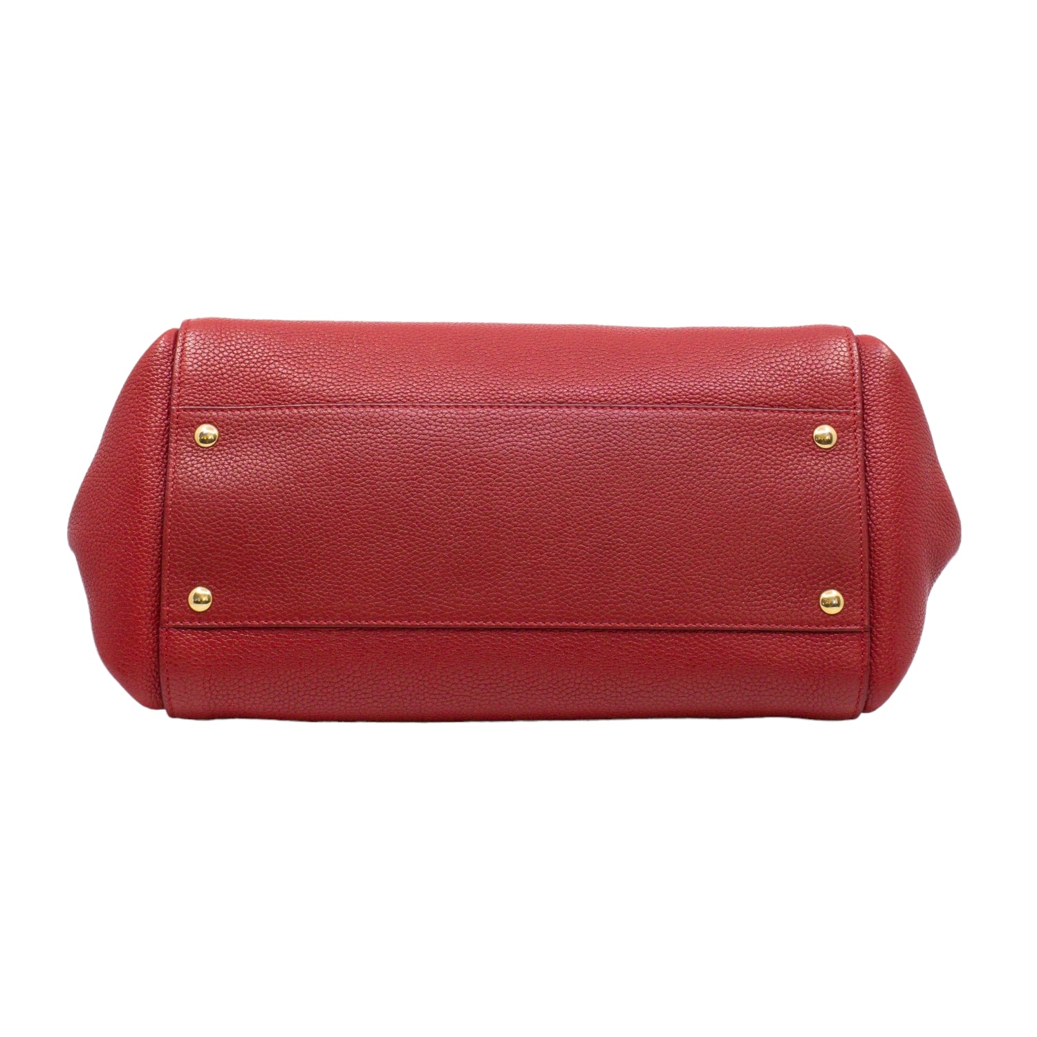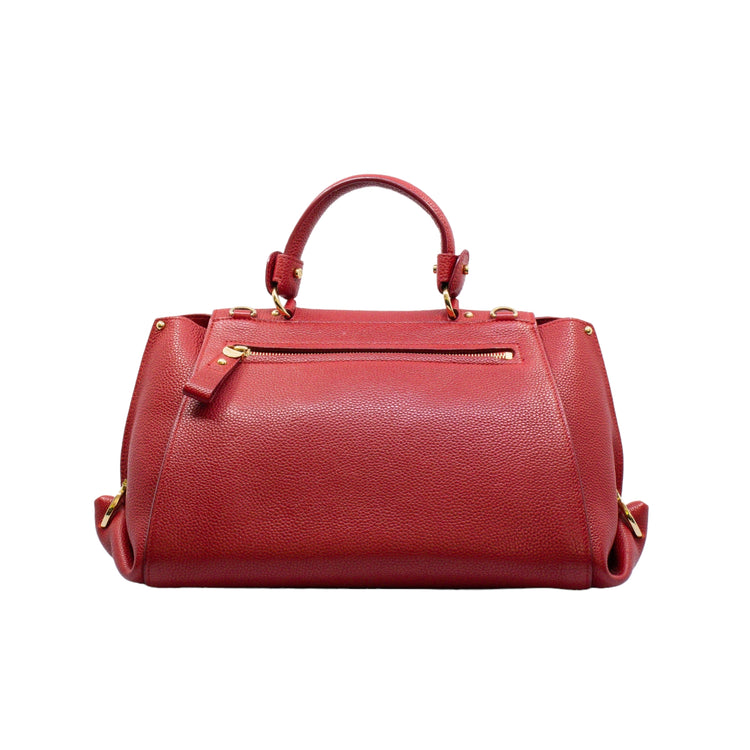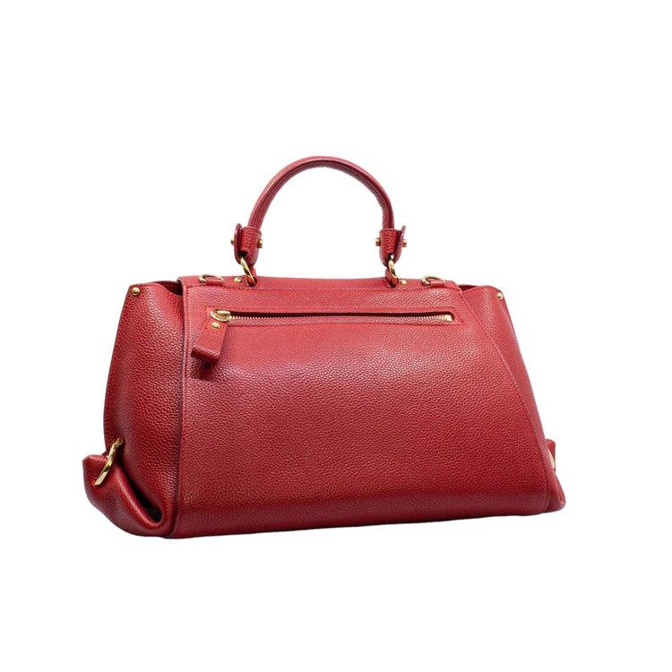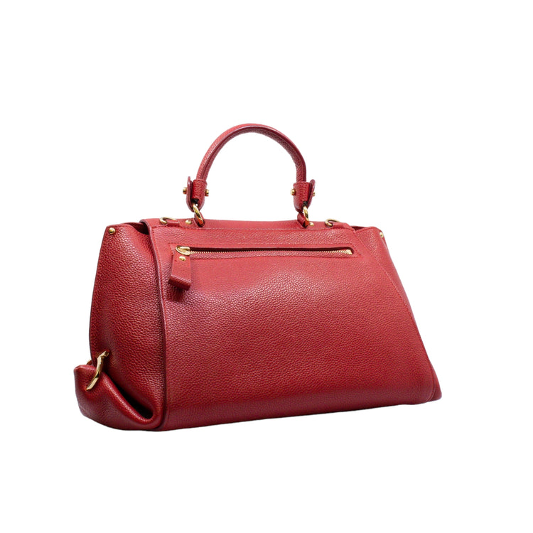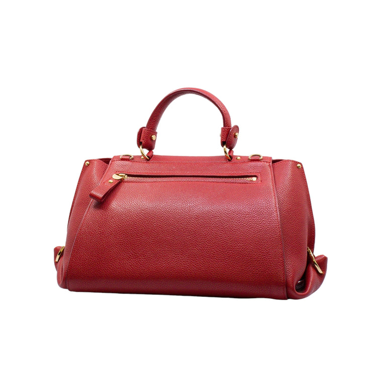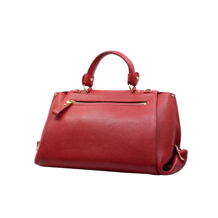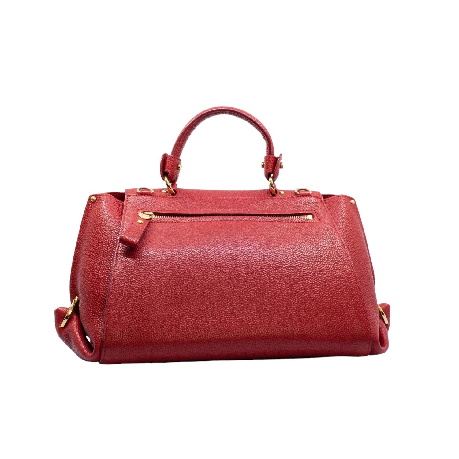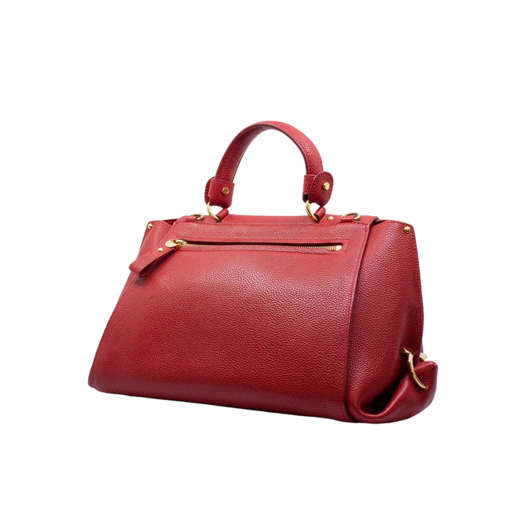 Bolso Salvatore Ferragamo modelo Sofía, confeccionado en piel de becerro color rojo, cuenta con correa extraíble en mismo material y color, y una sola asa superior, herrajes dorados, con 1 bolsillo trasero con cierre de cremallera y solapa con seguro tipo Gancini.