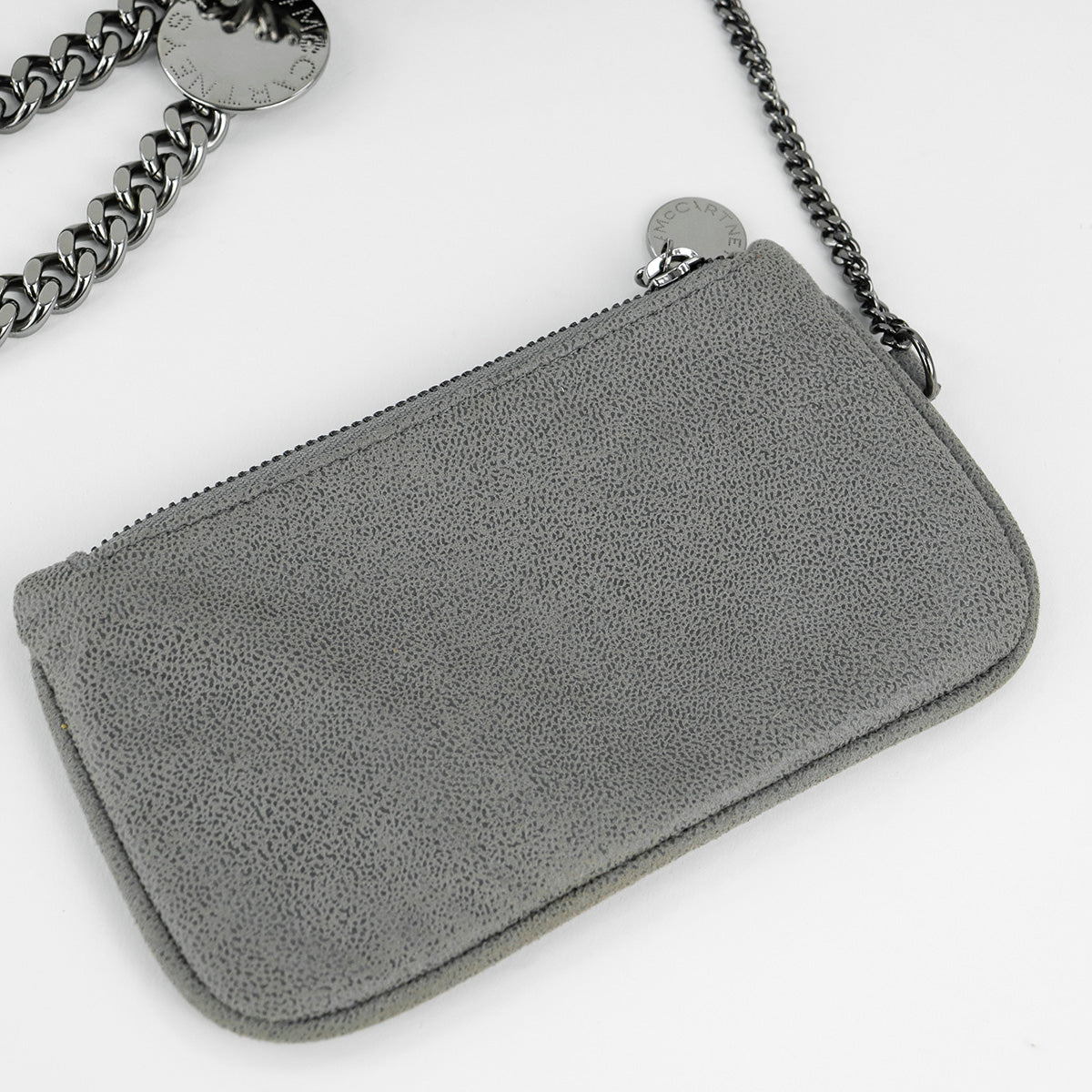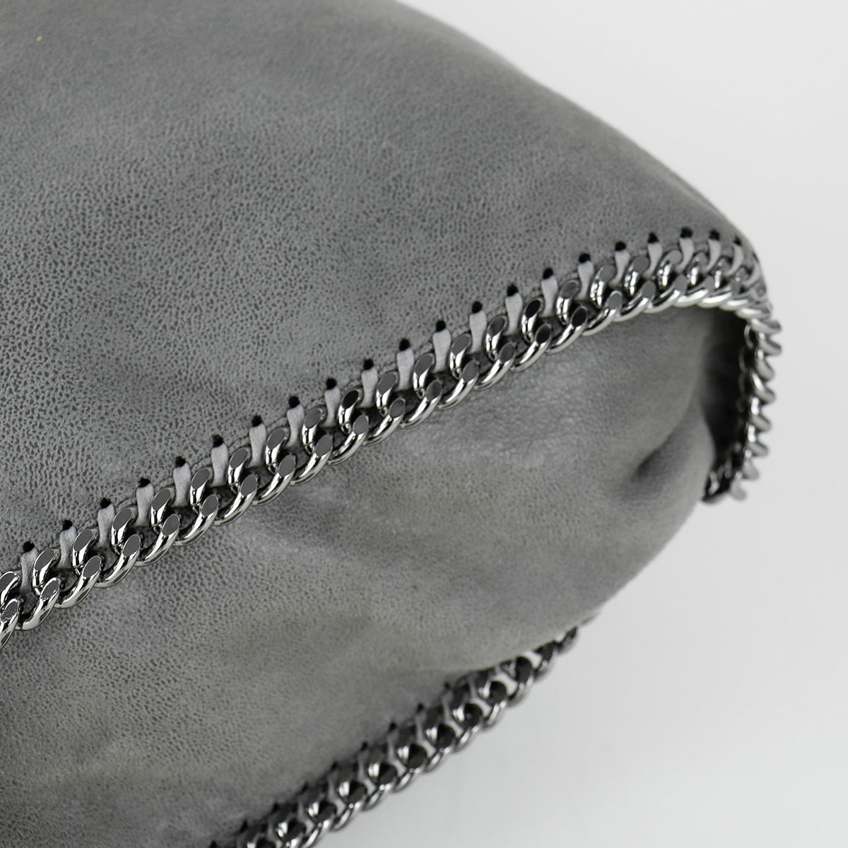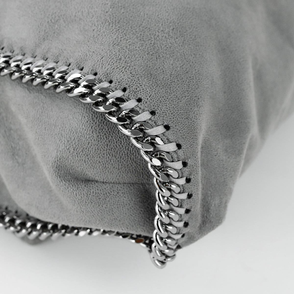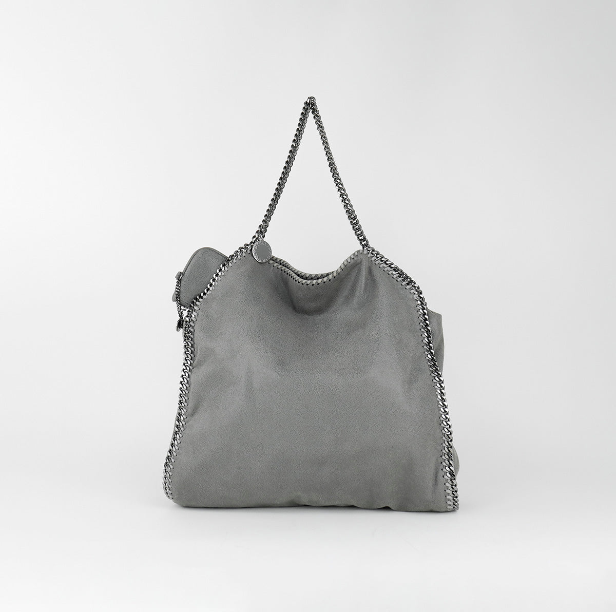 Bolso Stella McCartney, modelo Falabella Tote Bag, confeccionado en cuero sintético color gris elaborado a base de poliéster reciclado o poliuretano, con forro interno en textil nude, con herrajes en color plateado y monedero extraíble.