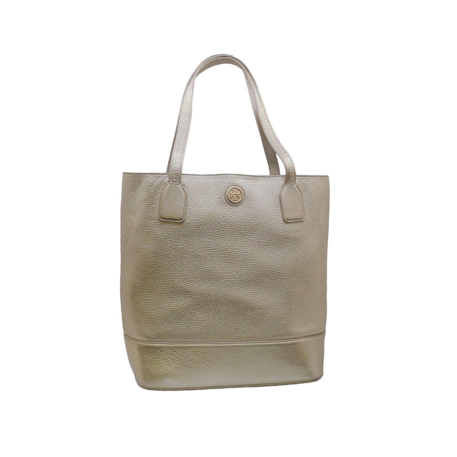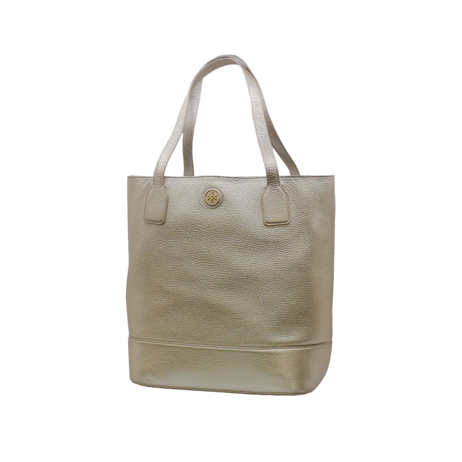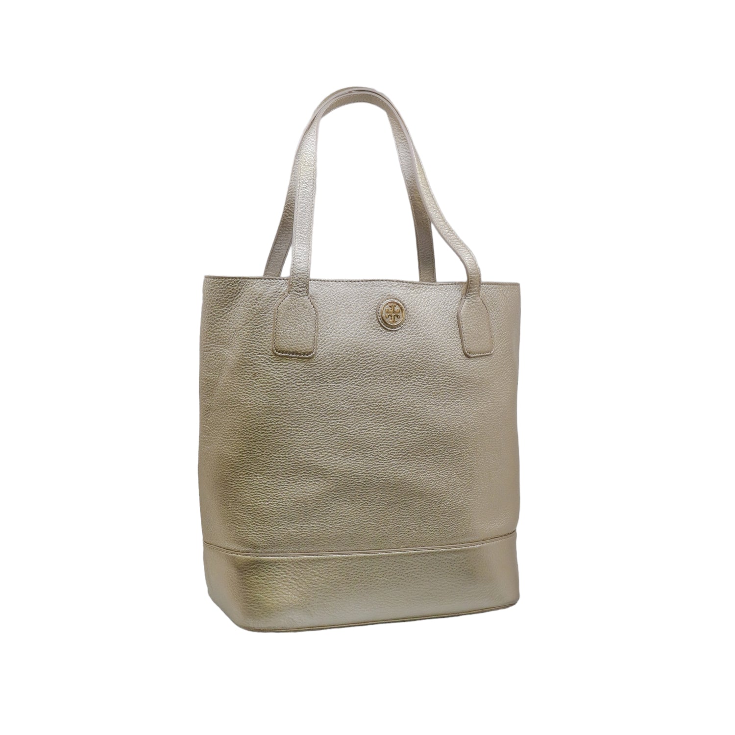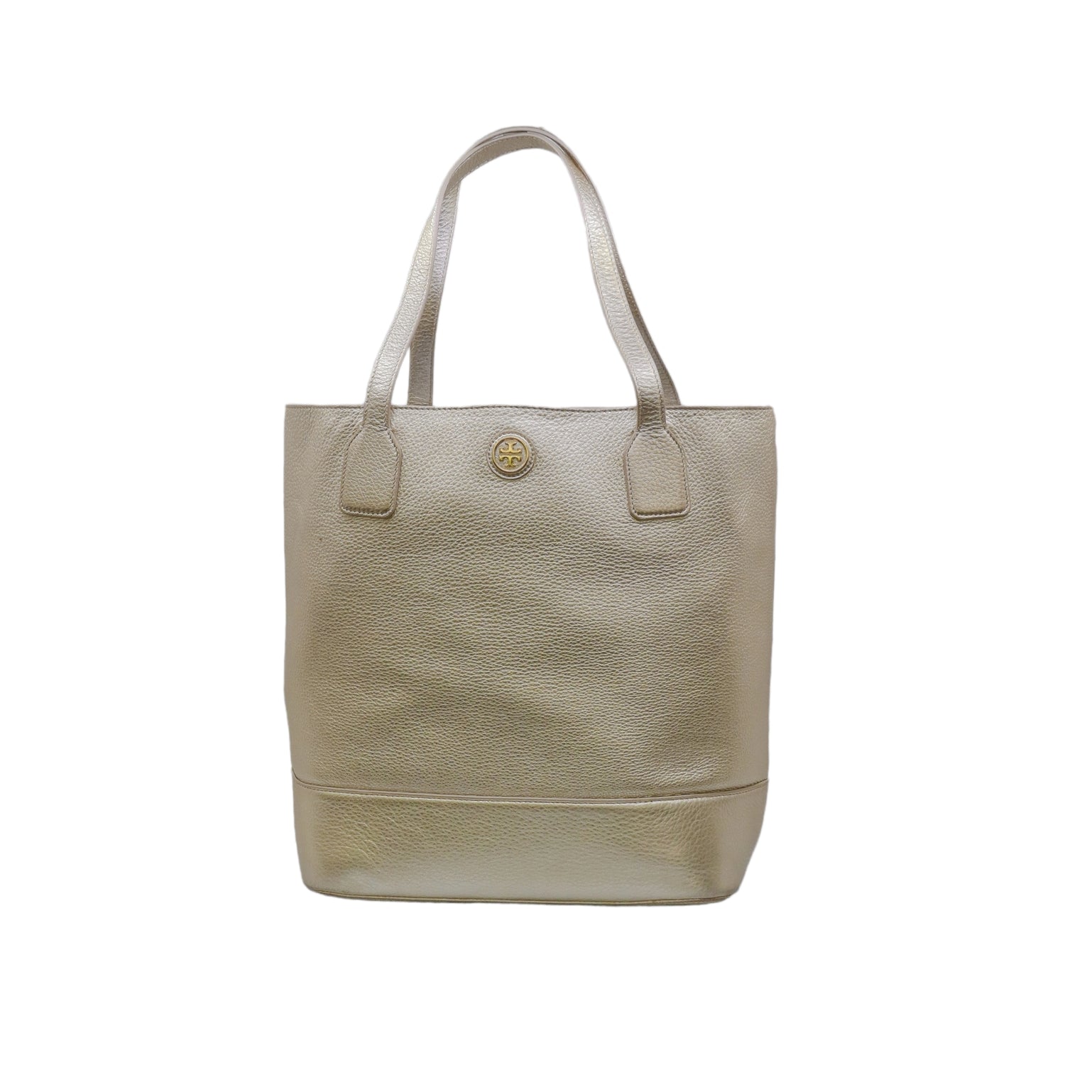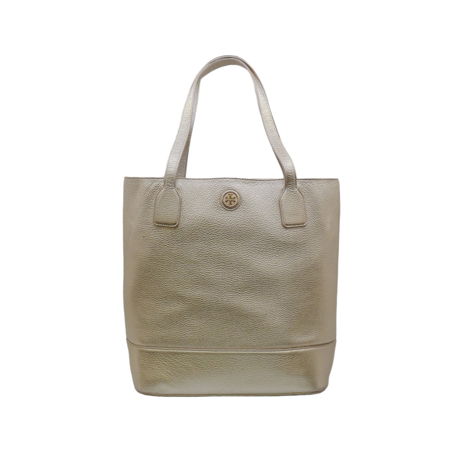 Bolso tote Tory Burch modelo Michelle, confeccionado en piel granulada color dorado, cuenta con 2 asas suaves superiores, forro interno en tela color negro, leves detalles por uso.