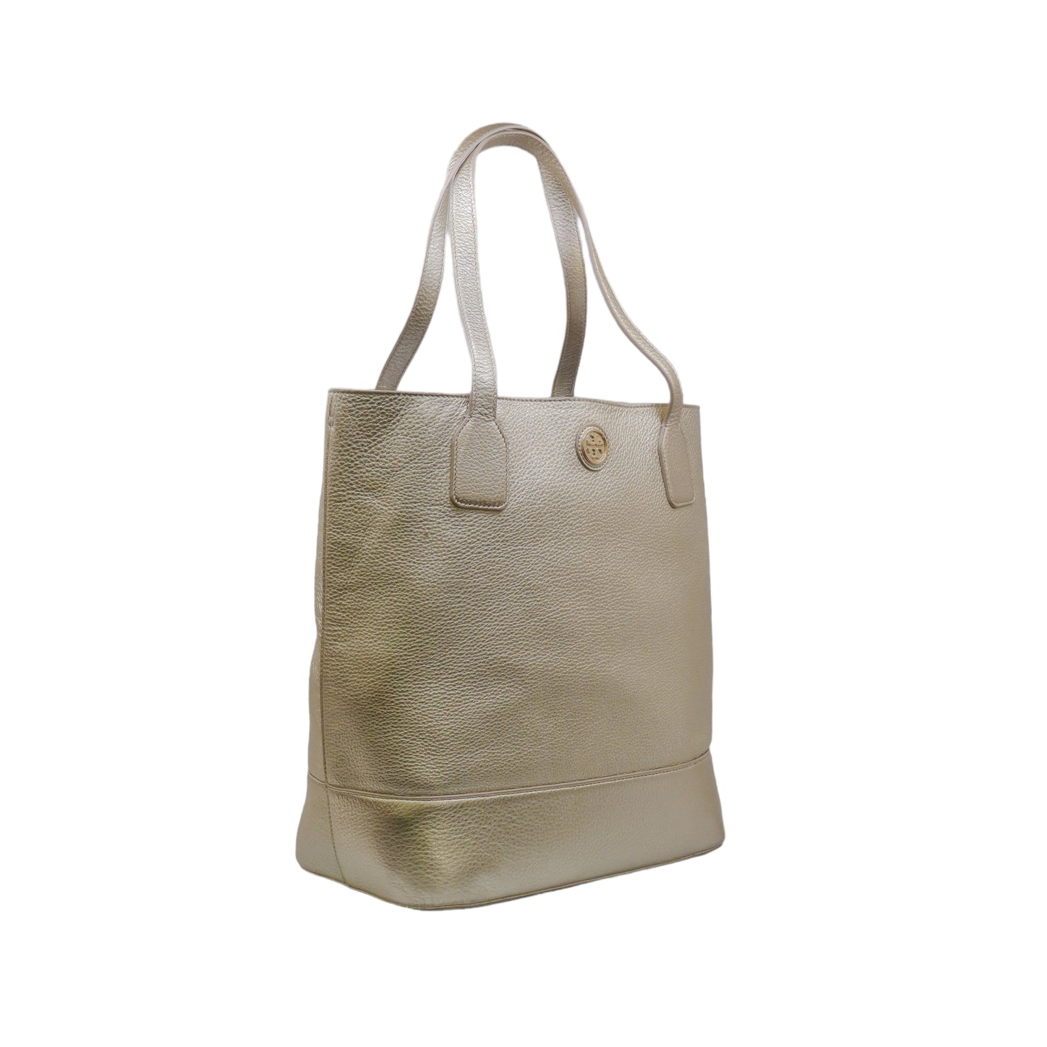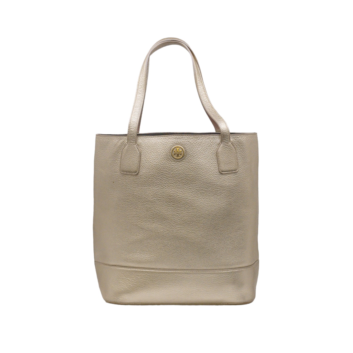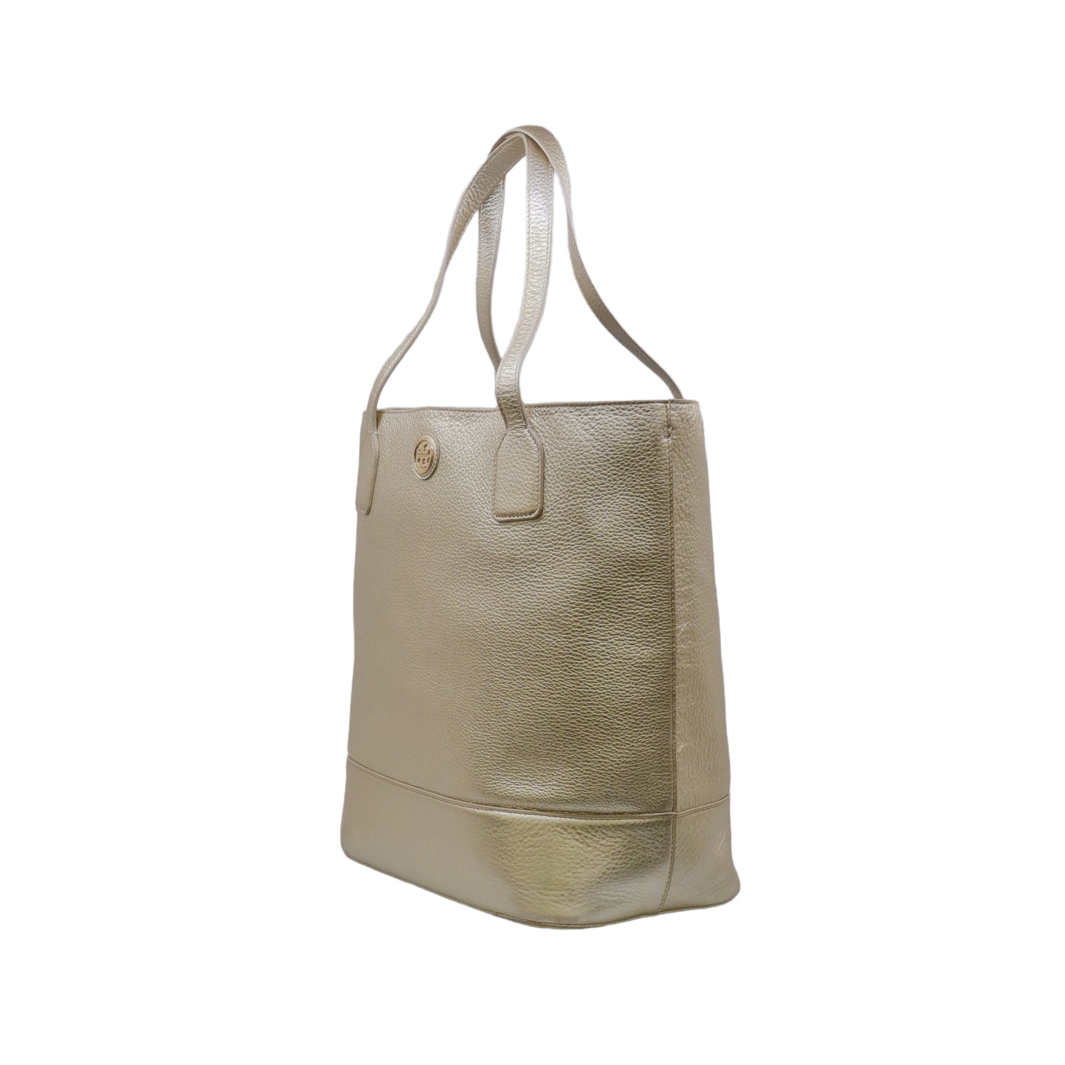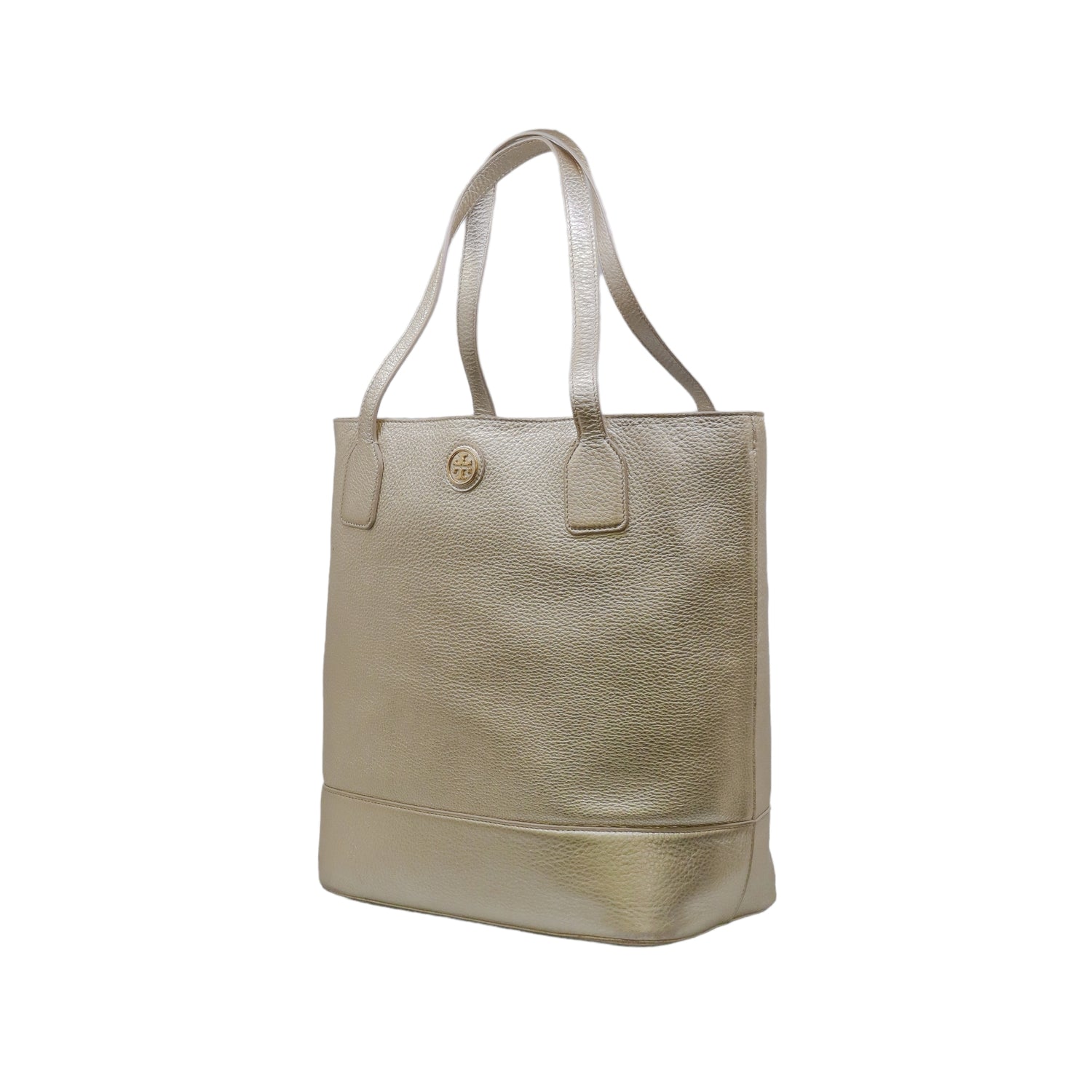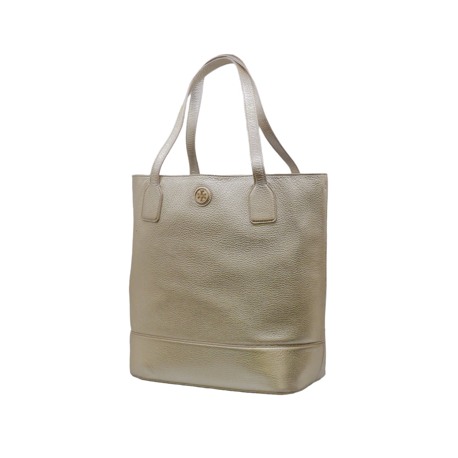 Bolso tote Tory Burch modelo Michelle, confeccionado en piel granulada color dorado, cuenta con 2 asas suaves superiores, forro interno en tela color negro, leves detalles por uso.