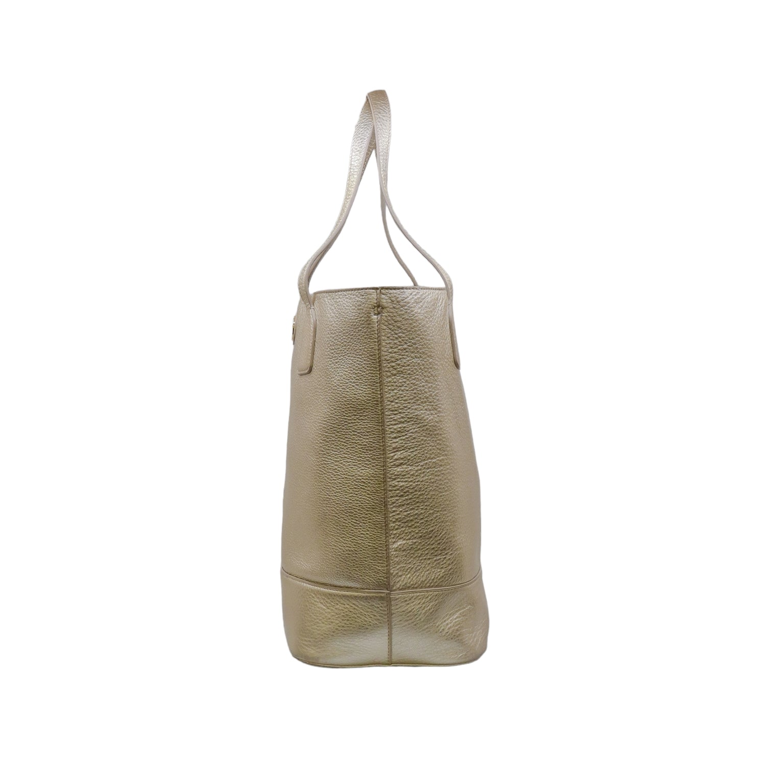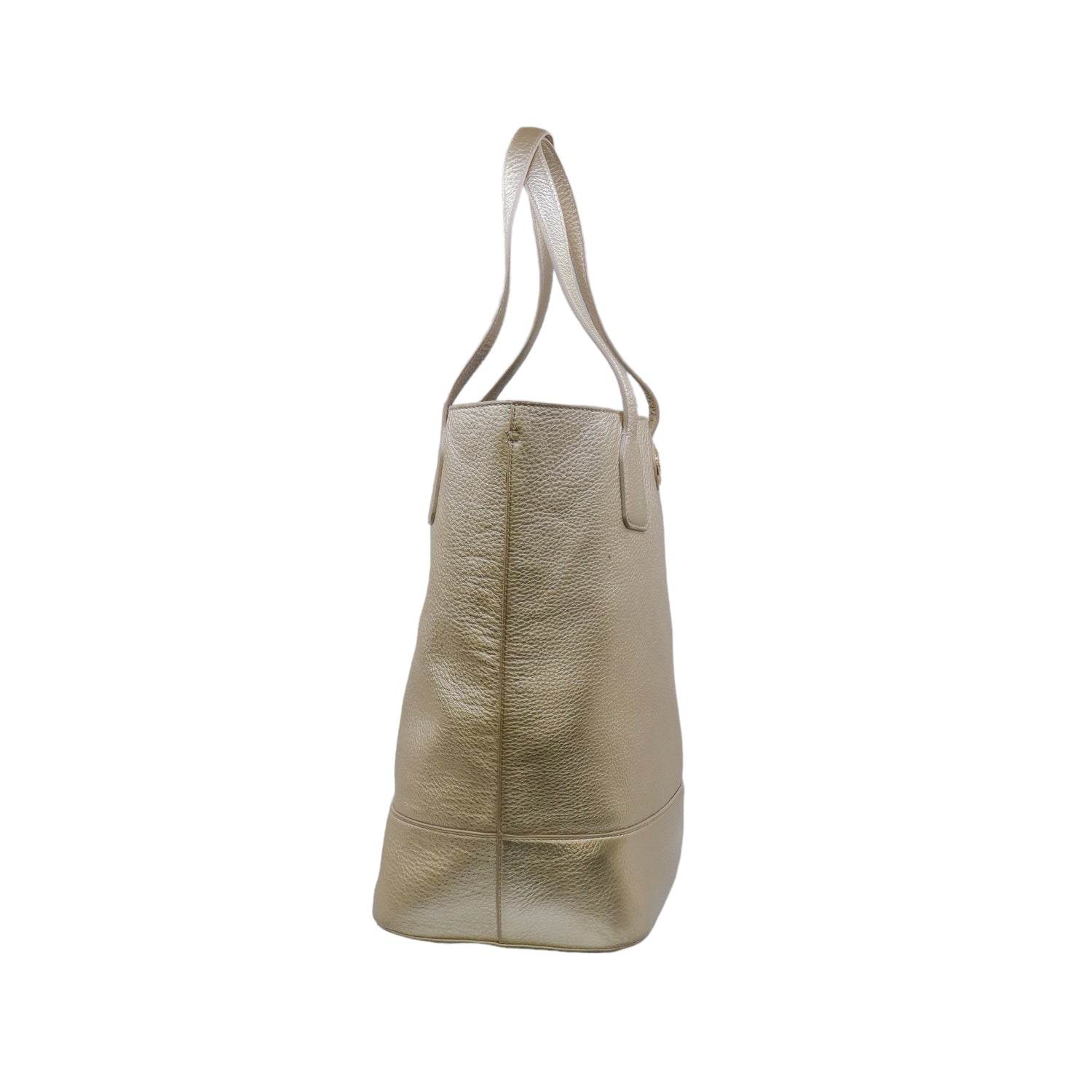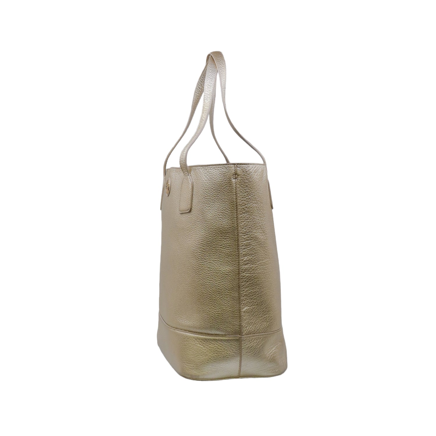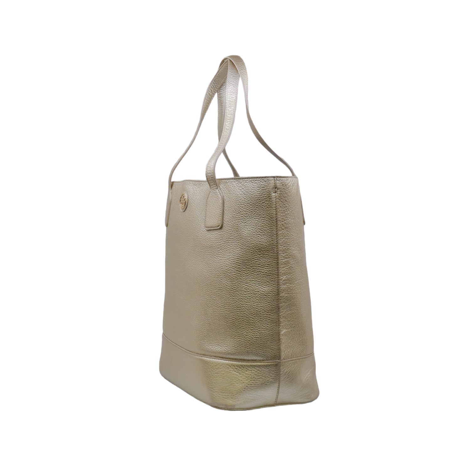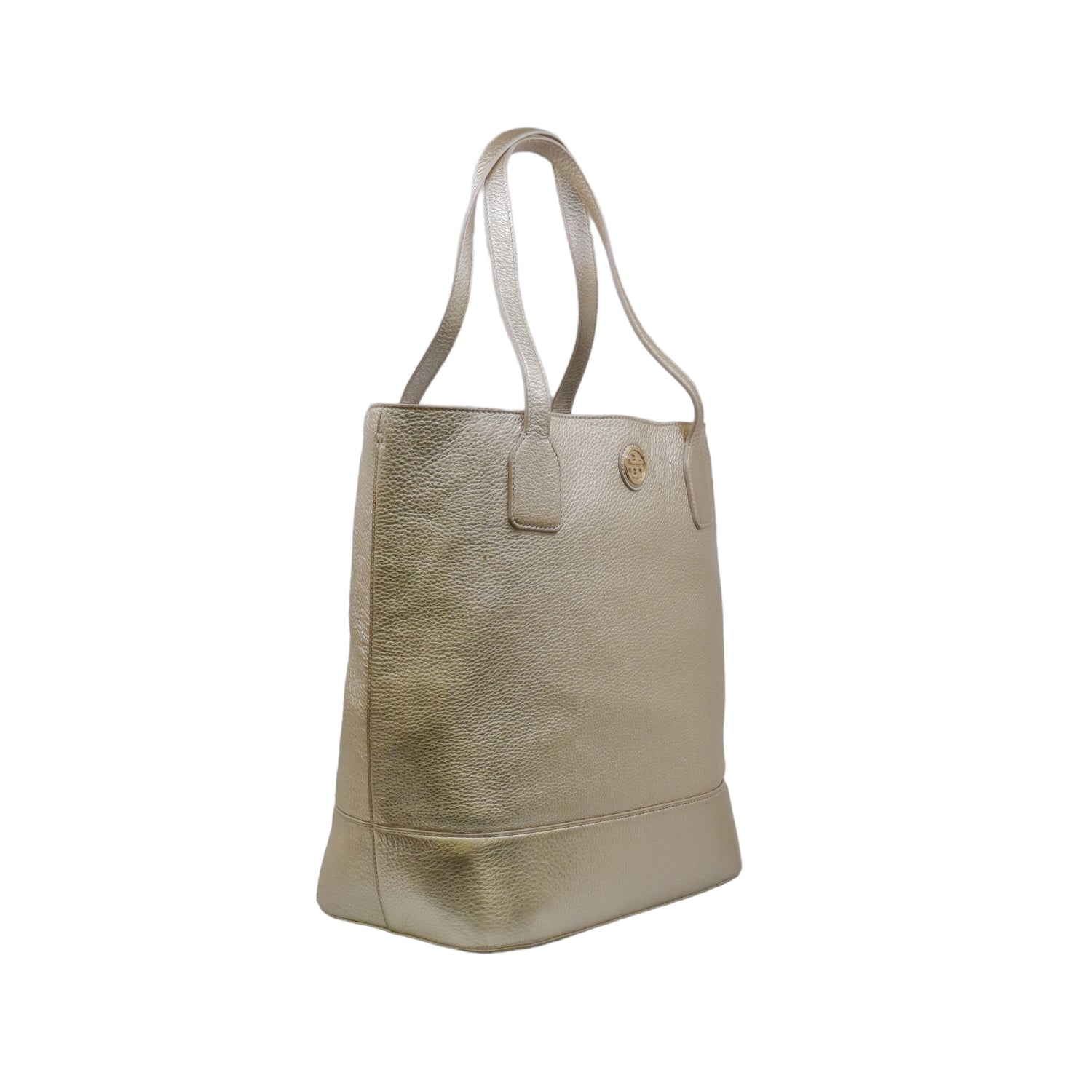 Bolso tote Tory Burch modelo Michelle, confeccionado en piel granulada color dorado, cuenta con 2 asas suaves superiores, forro interno en tela color negro, leves detalles por uso.