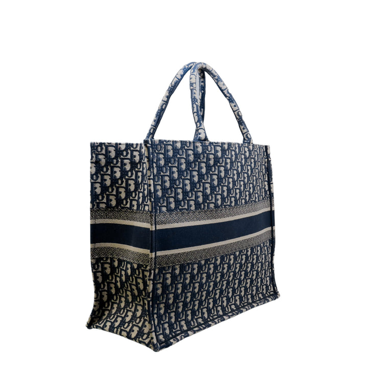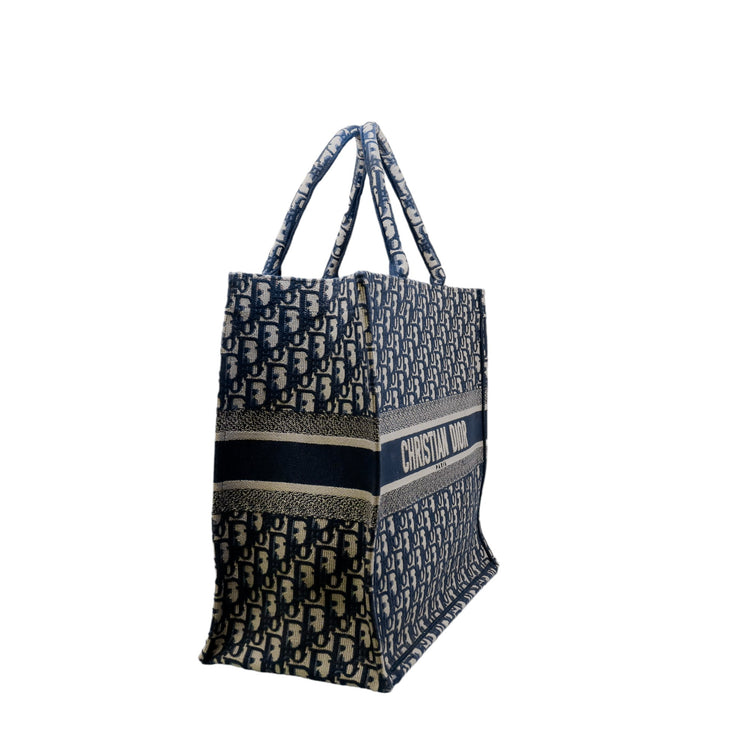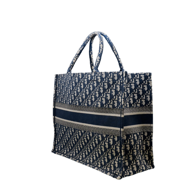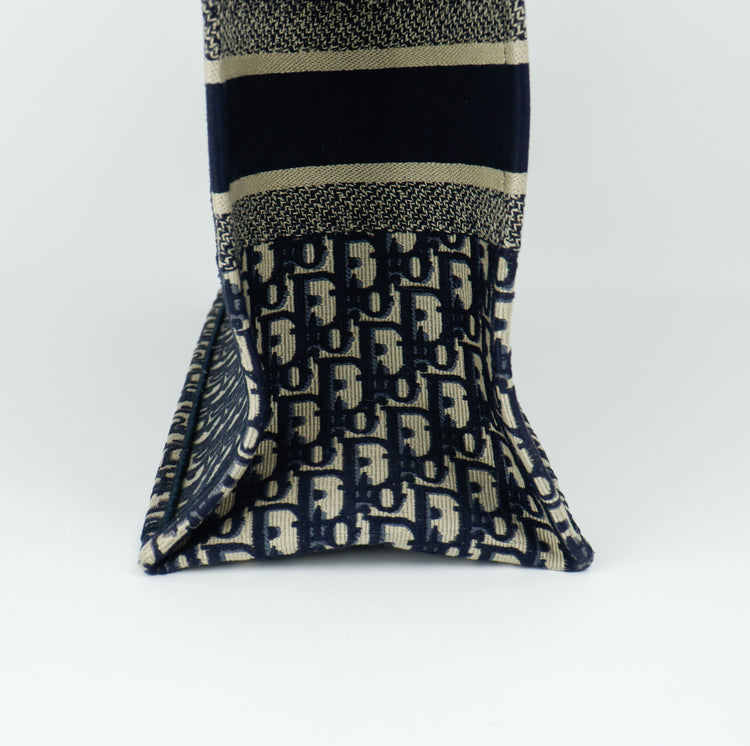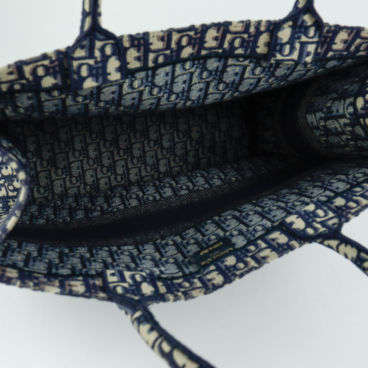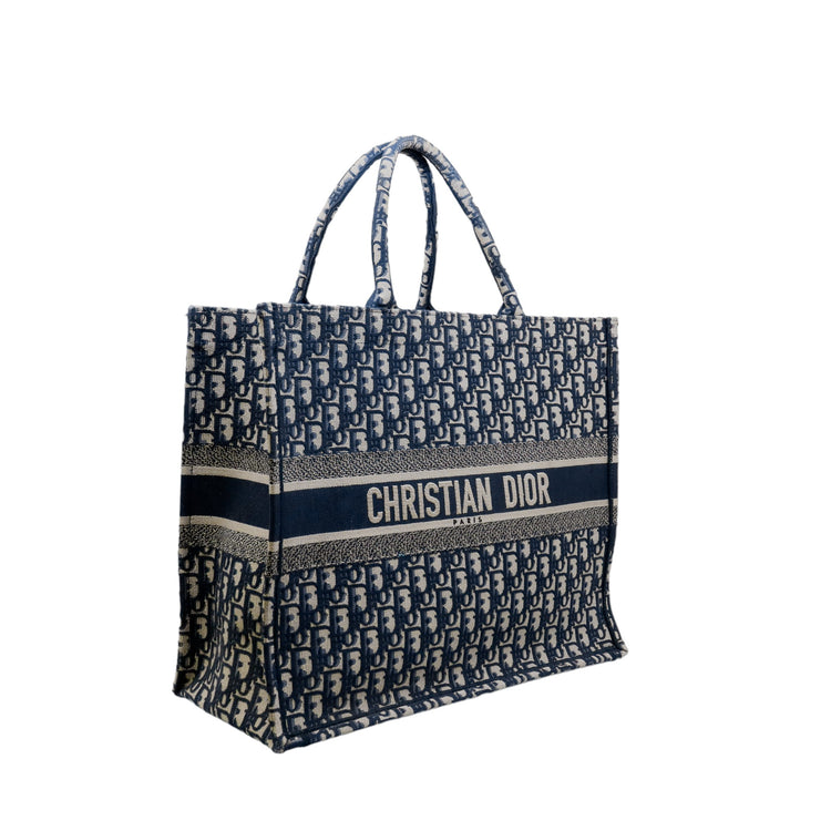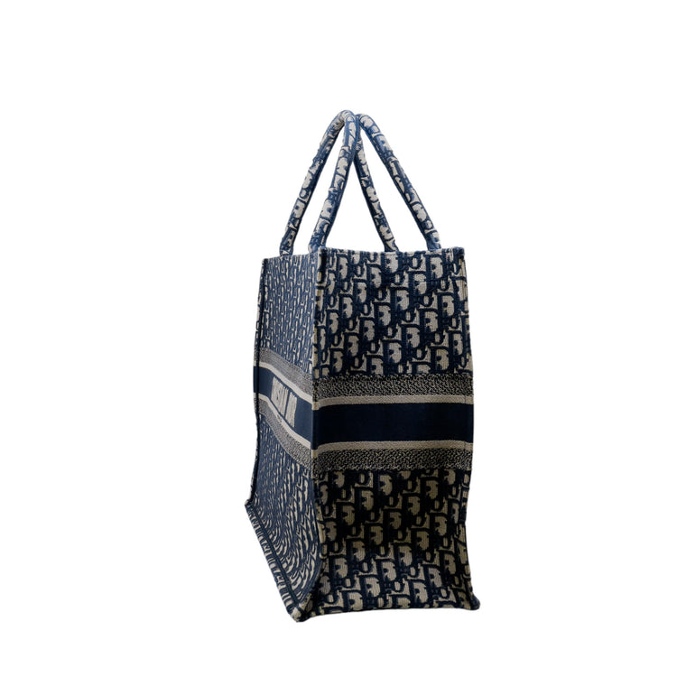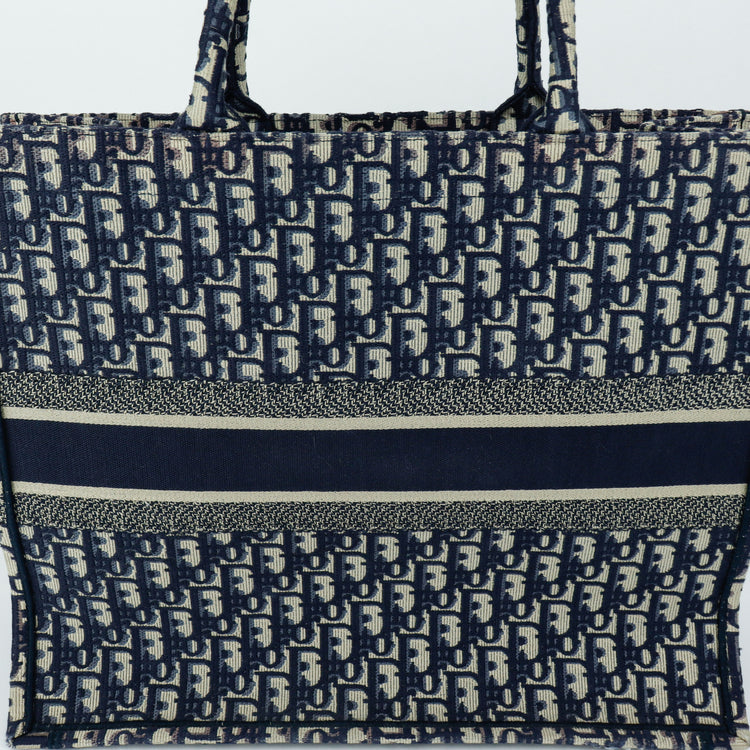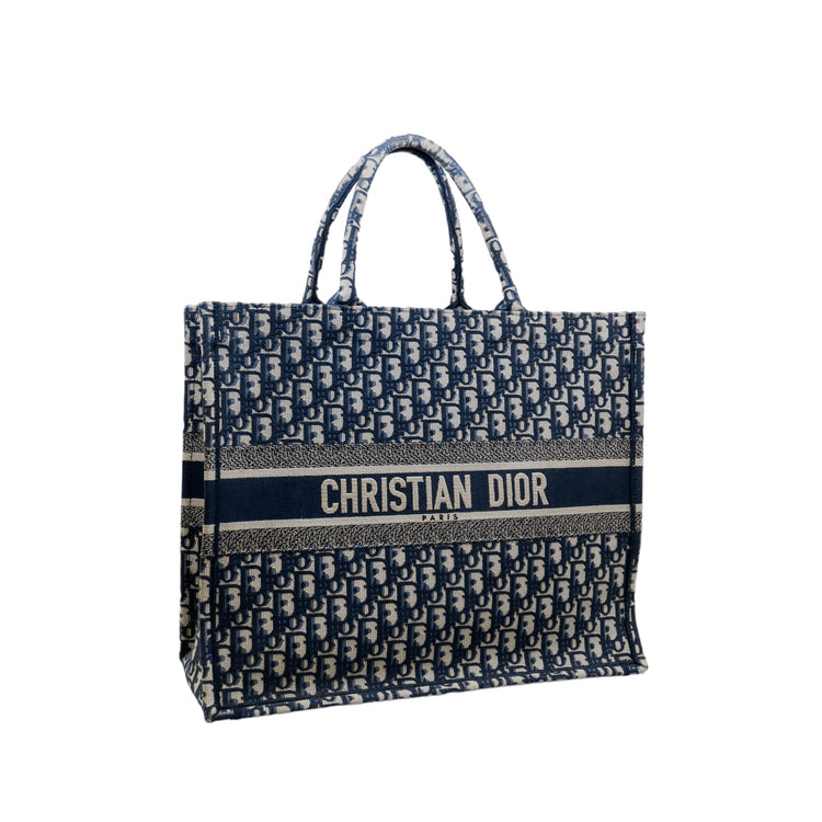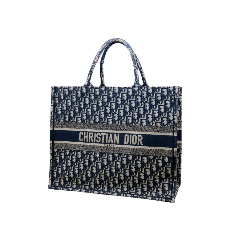 Bolso Christian Dior tipo Tote, confeccionado en lienzo blanco con negro con el monograma de la marca, poco sucia en asas, base y esquina.