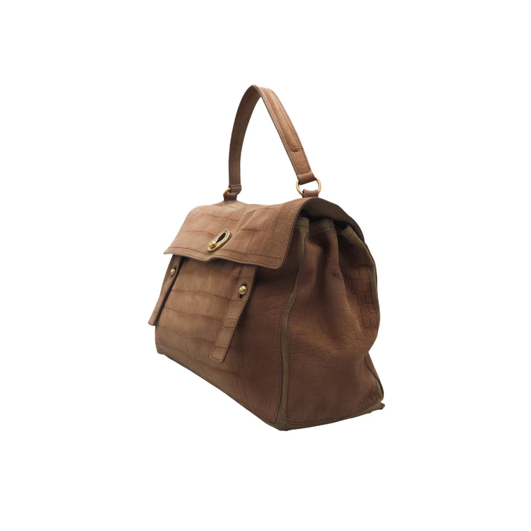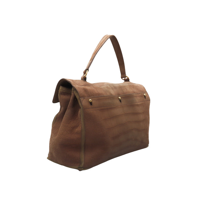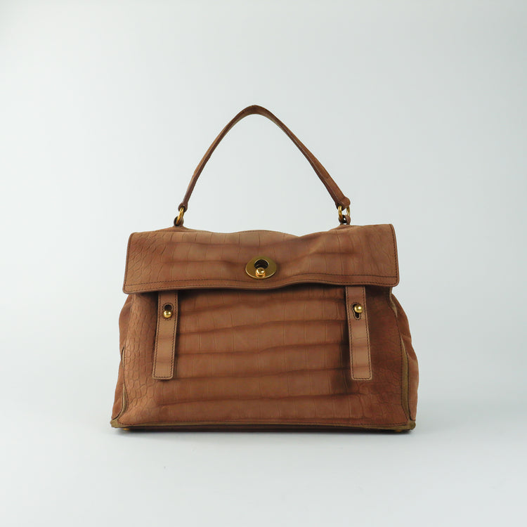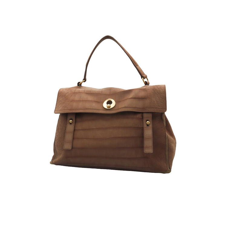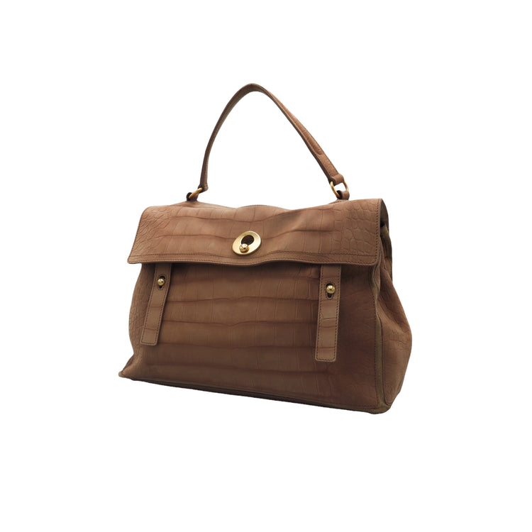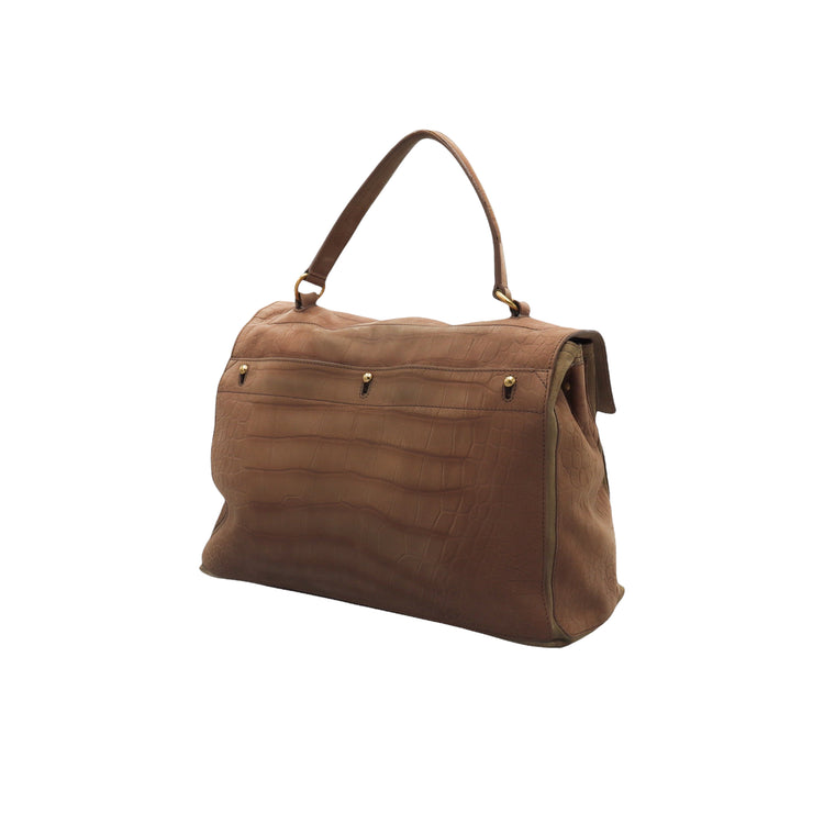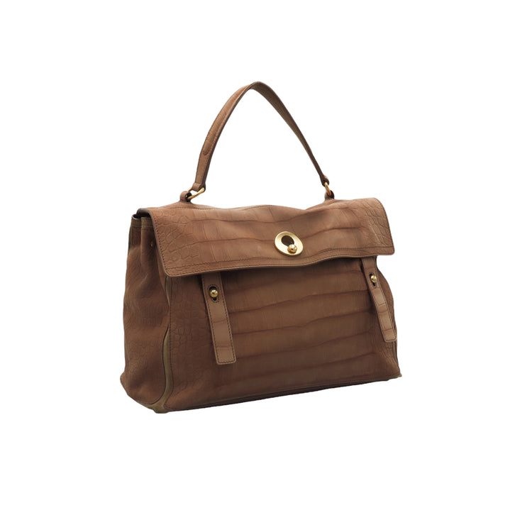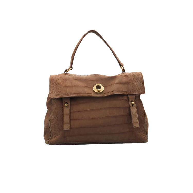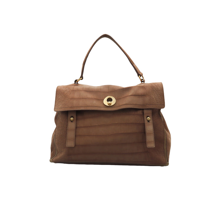 Bolso Yves Saint Laurent Muse 2 Bag confeccionado en ante corte tipo cocodrilo, con ribete de gamuza, compartimento funcional con cremallera independiente, con medidas