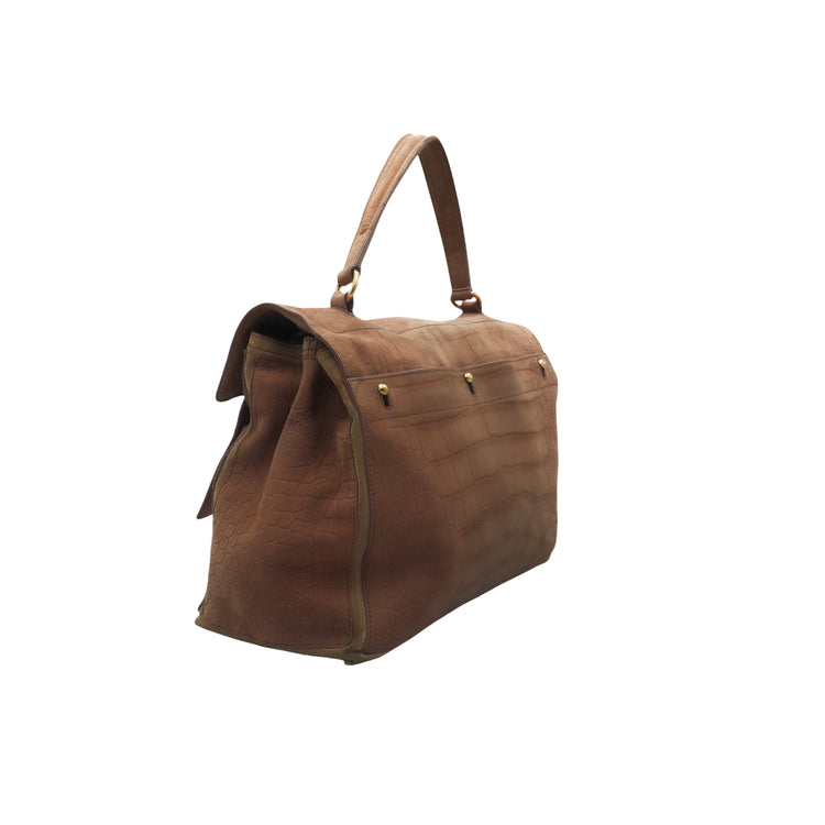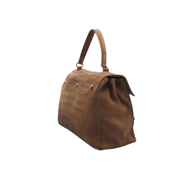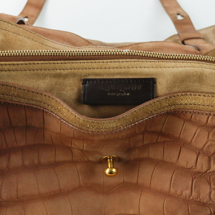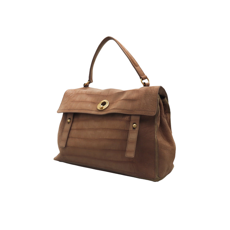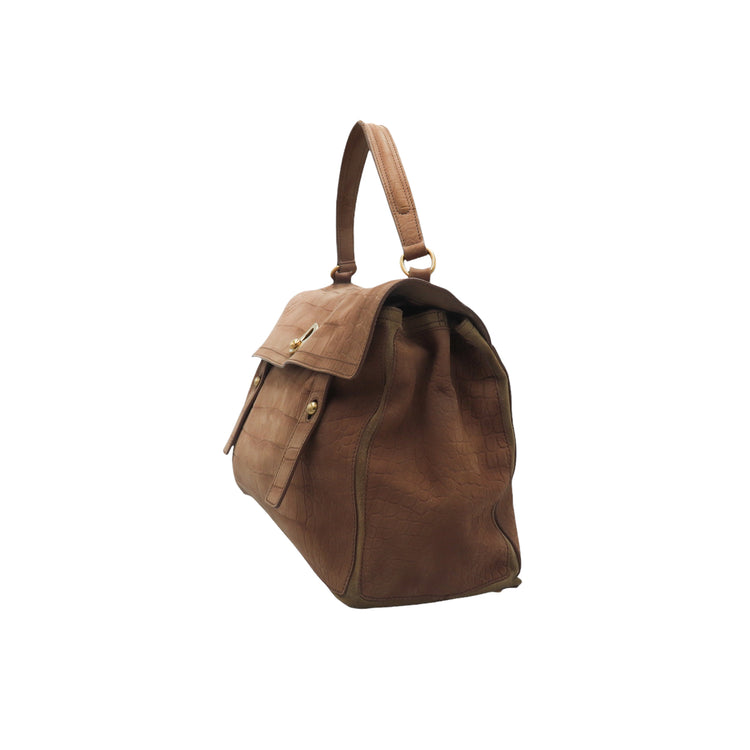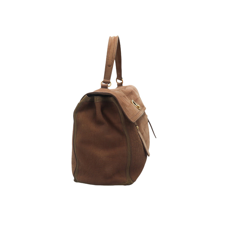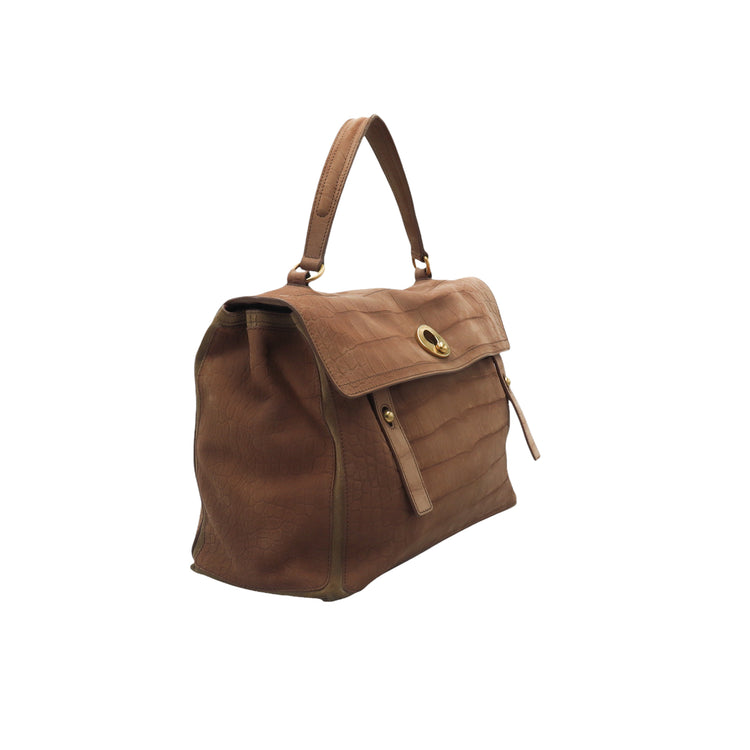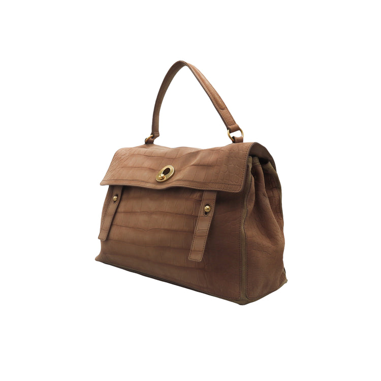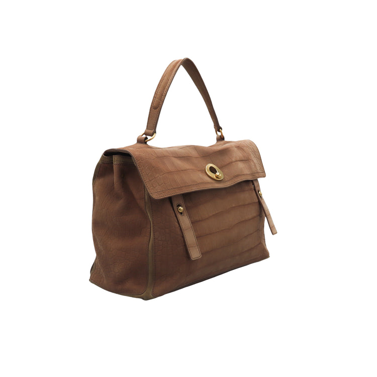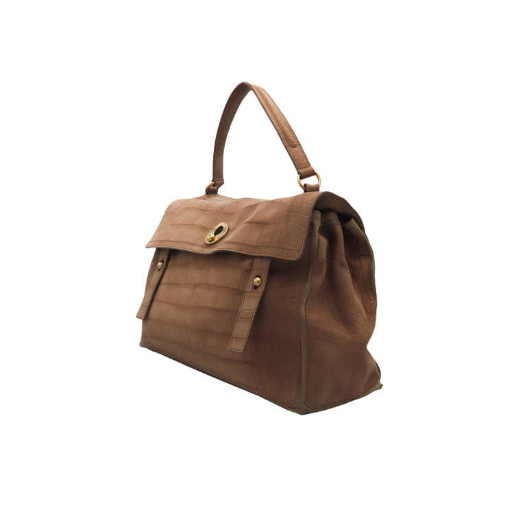 Bolso Yves Saint Laurent Muse 2 Bag confeccionado en ante corte tipo cocodrilo, con ribete de gamuza, compartimento funcional con cremallera independiente, con medidas