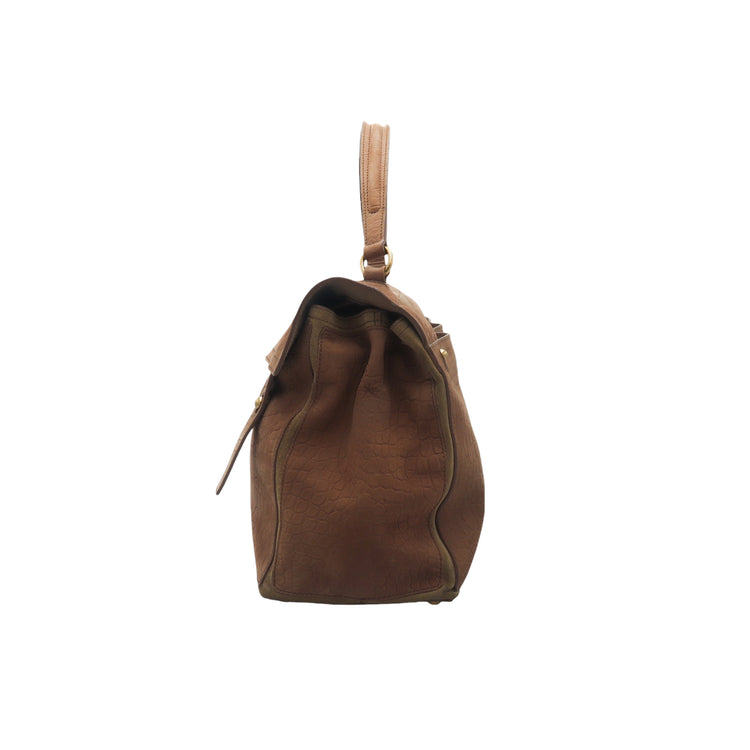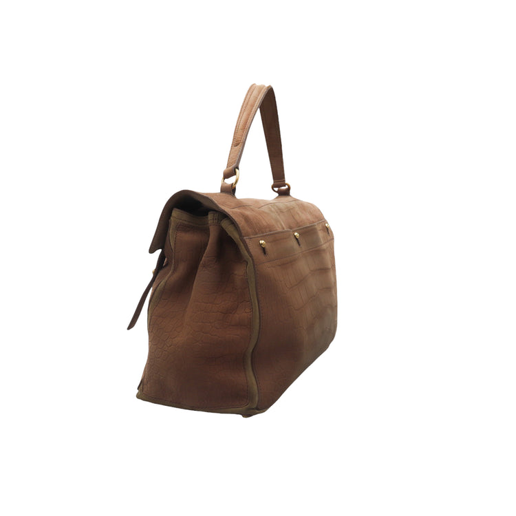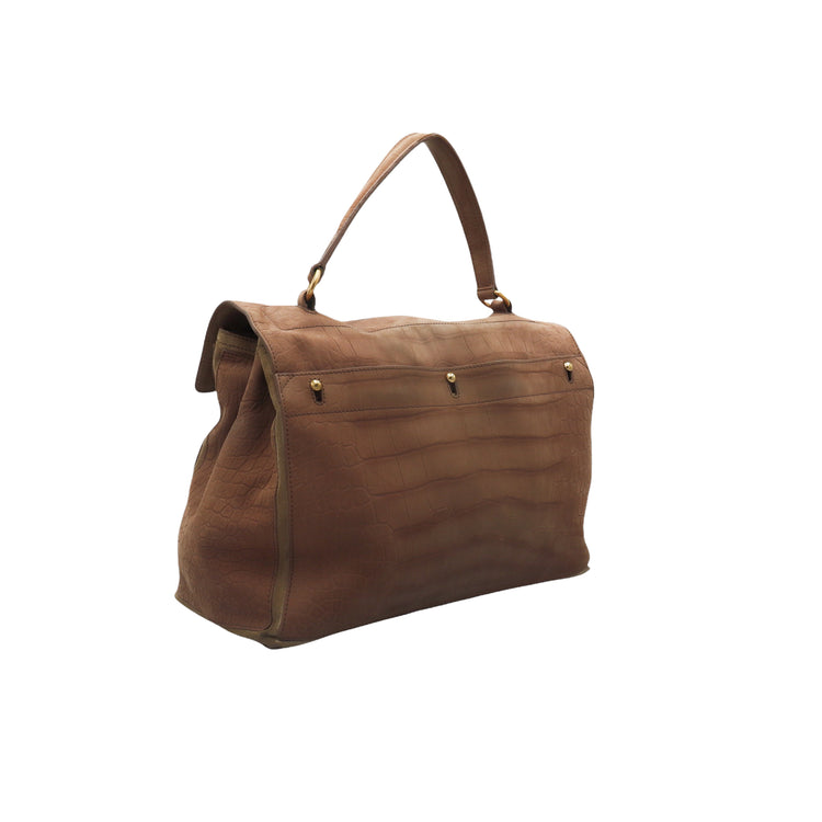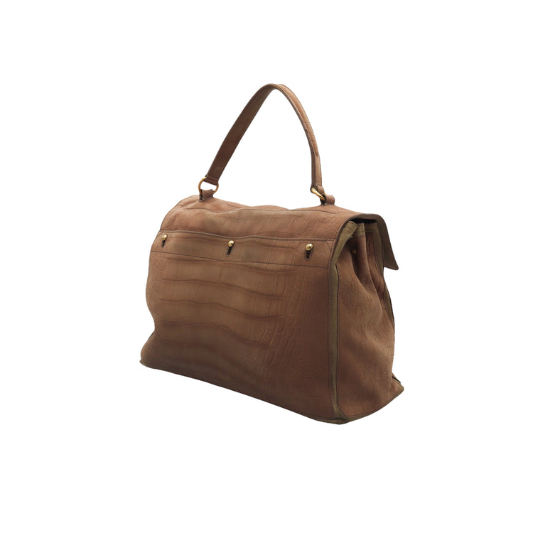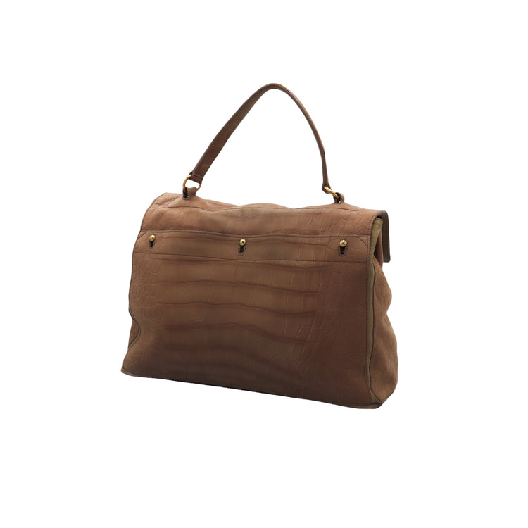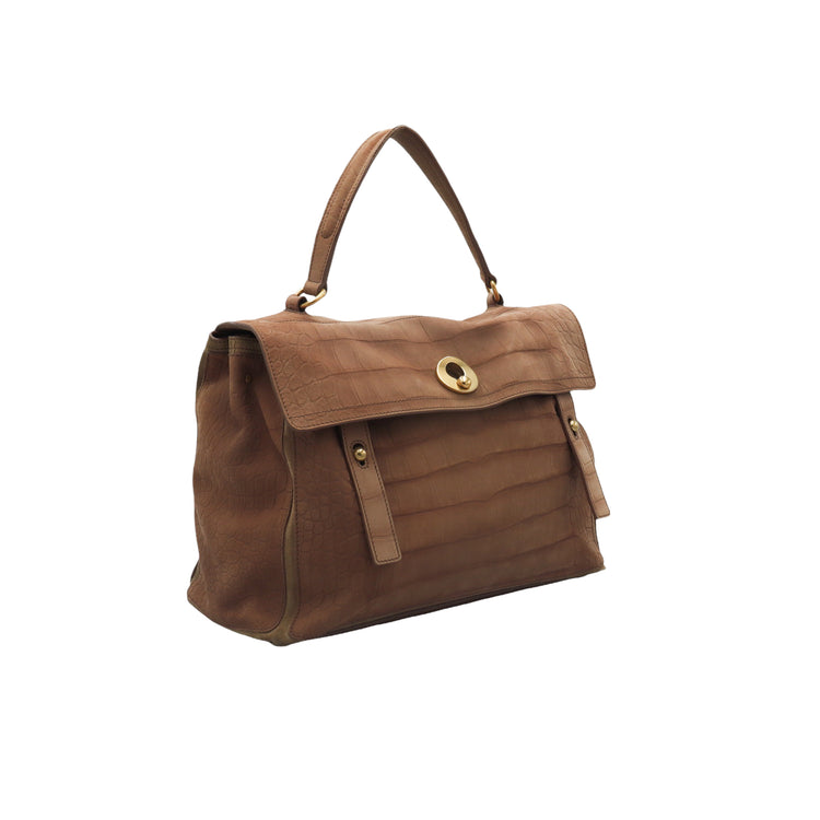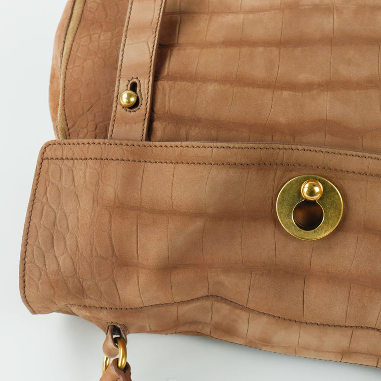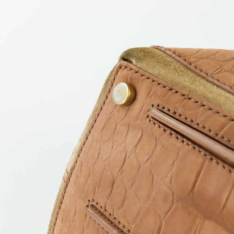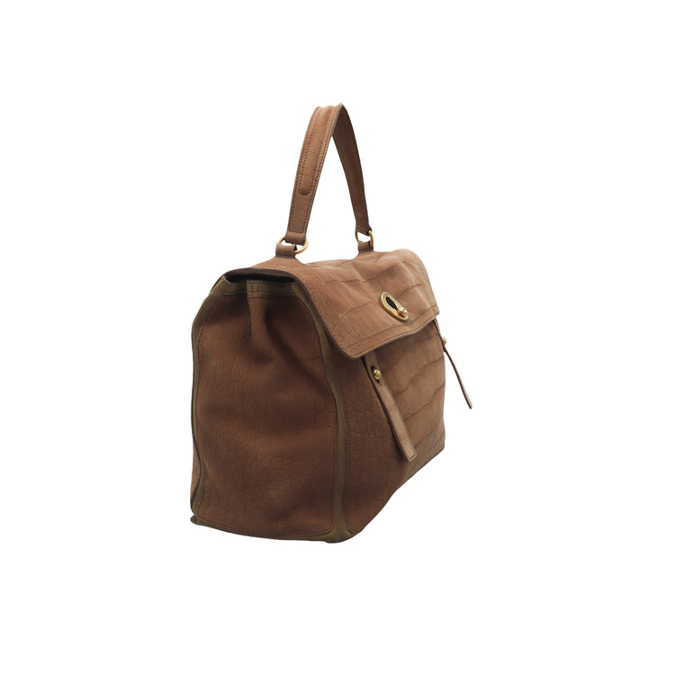 Bolso Yves Saint Laurent Muse 2 Bag confeccionado en ante corte tipo cocodrilo, con ribete de gamuza, compartimento funcional con cremallera independiente, con medidas