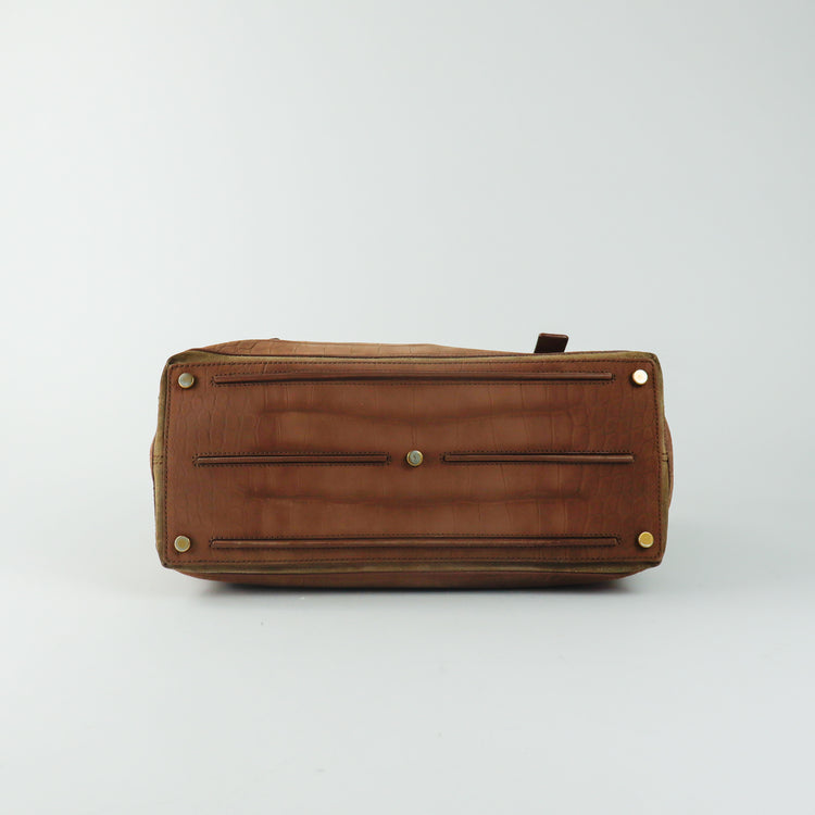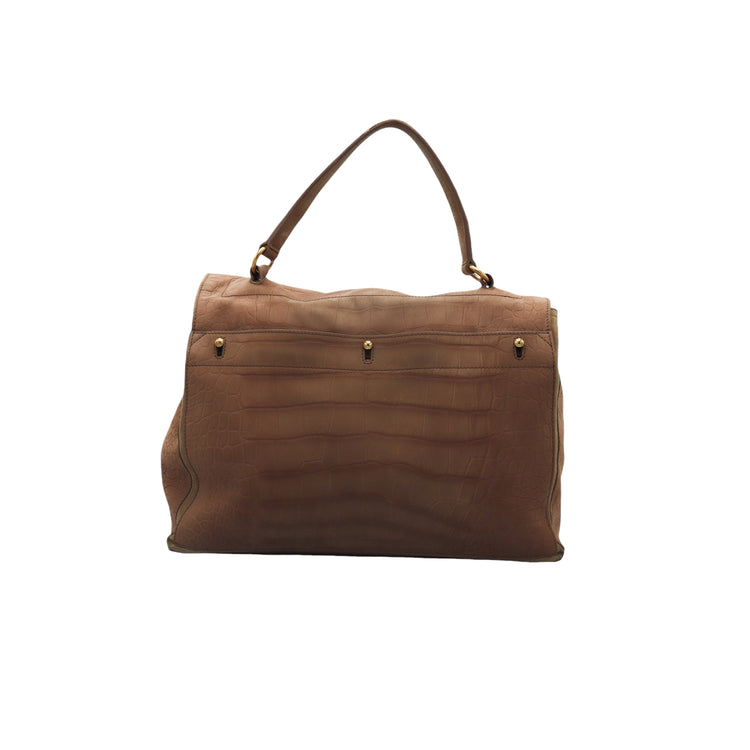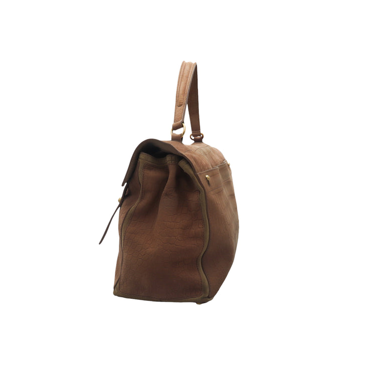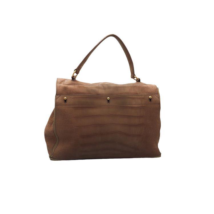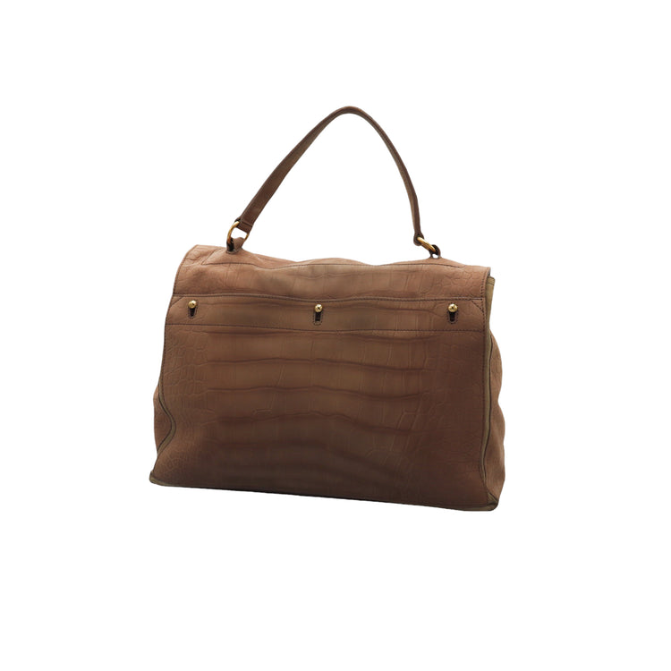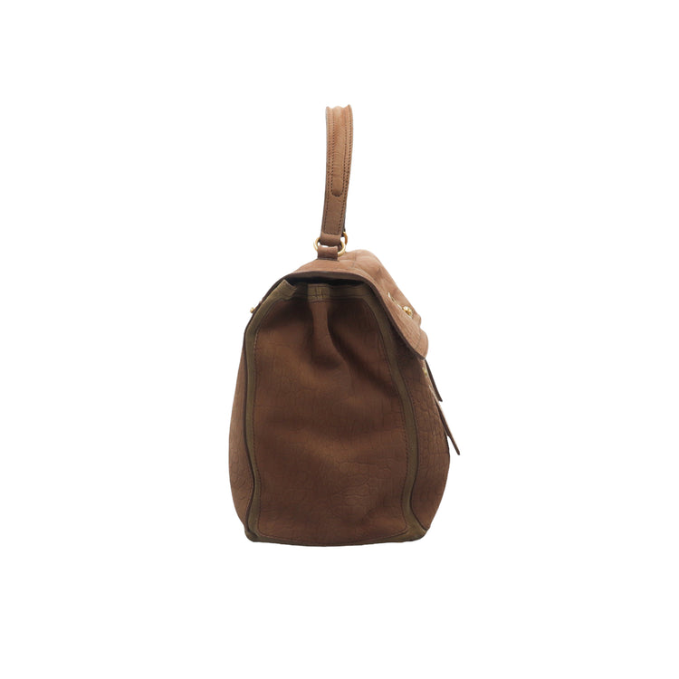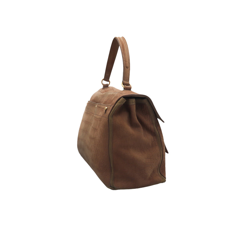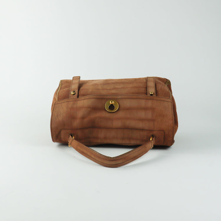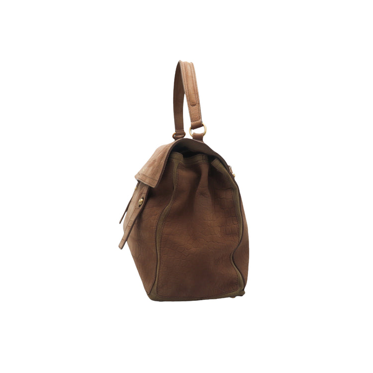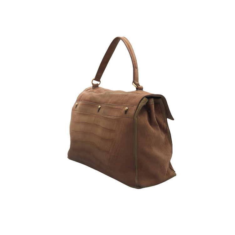 Bolso Yves Saint Laurent Muse 2 Bag confeccionado en ante corte tipo cocodrilo, con ribete de gamuza, compartimento funcional con cremallera independiente, con medidas