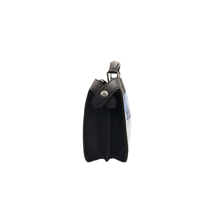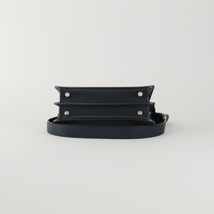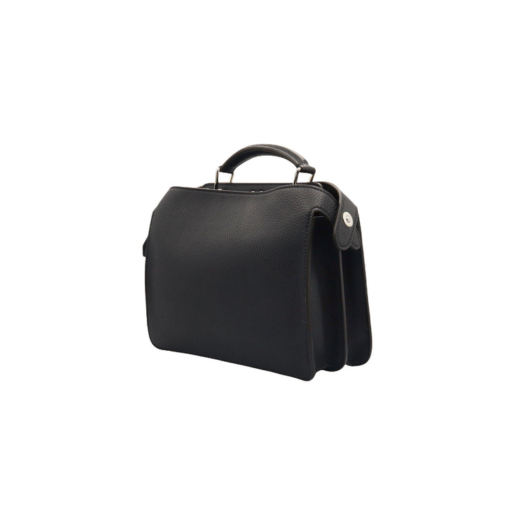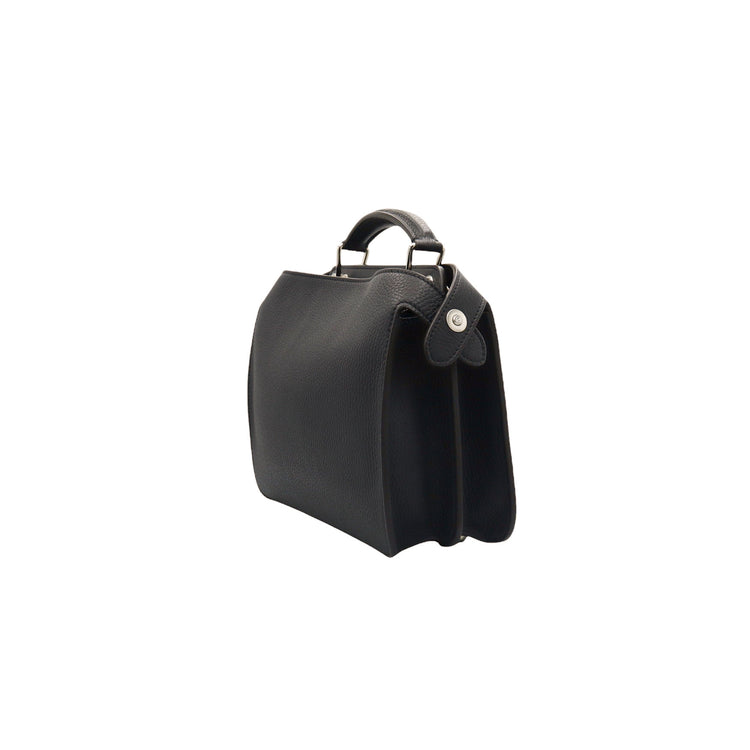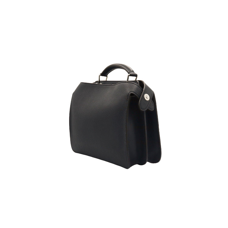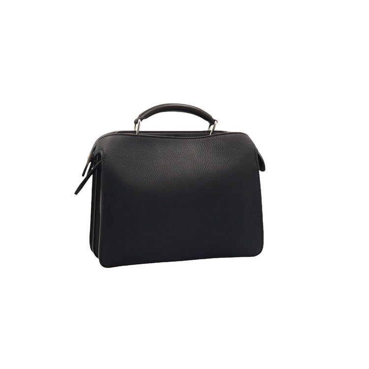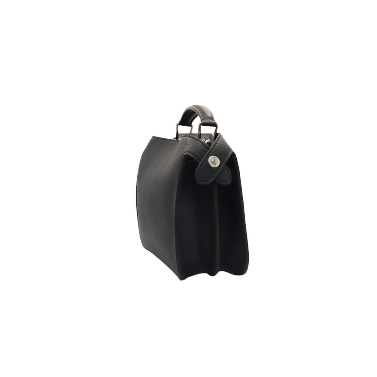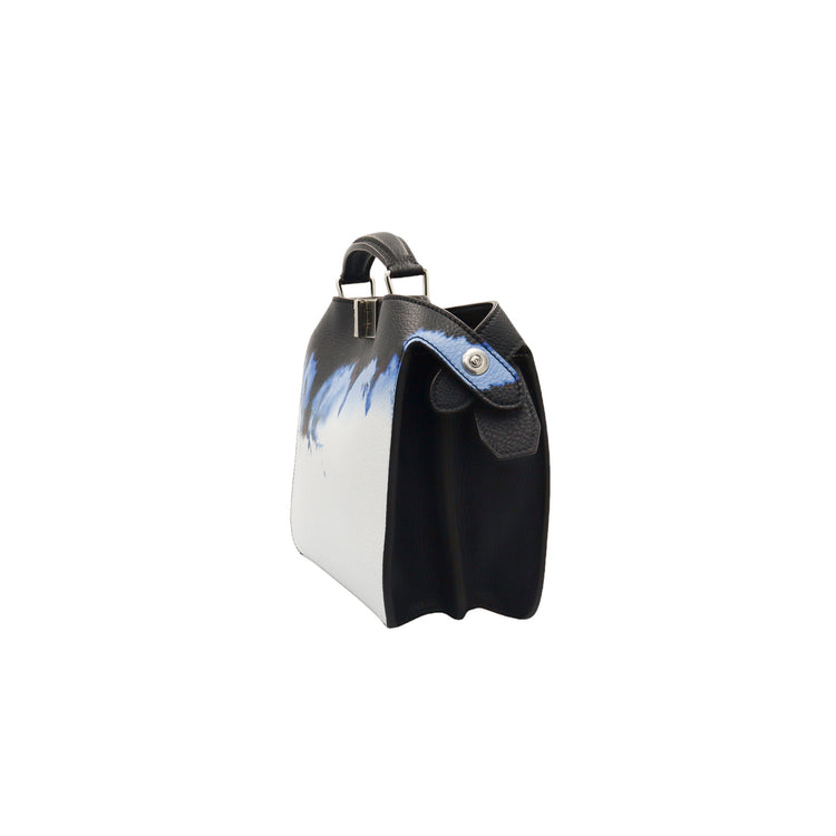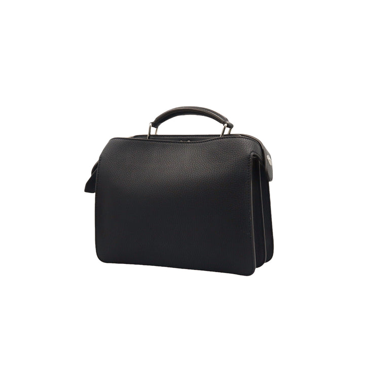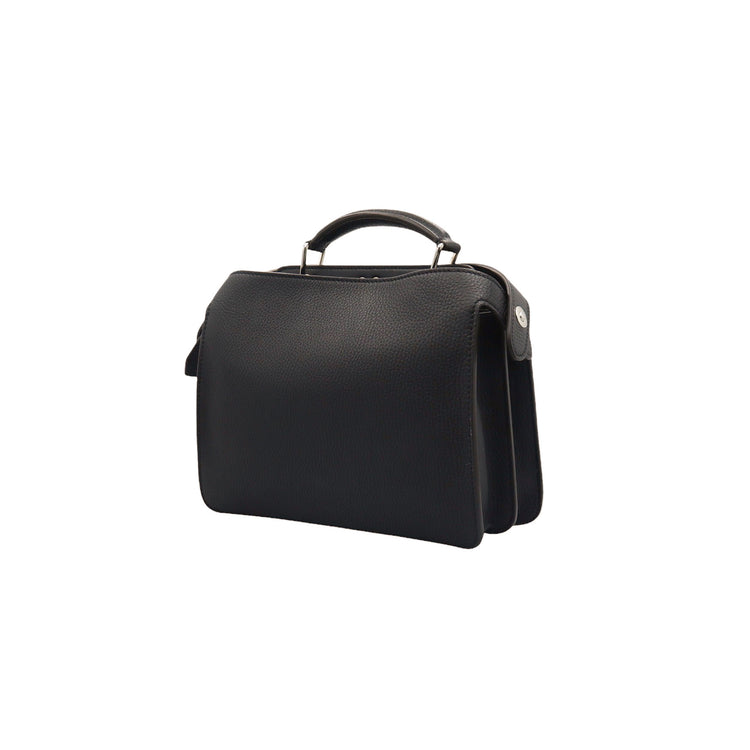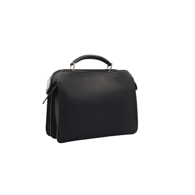 Bolso Fendi Peekaboo ISeeU Mini, confeccionado en cuero color negro entintado tipo nubes, con interior de piel en dos compartimentos divididos por una partición rígida con el emblemático cierre de giro en la parte frontal, bolsillo interno extraíble en color amarillo por un lado y monograma FF por el otro, bandolera ajustable y extraíble.