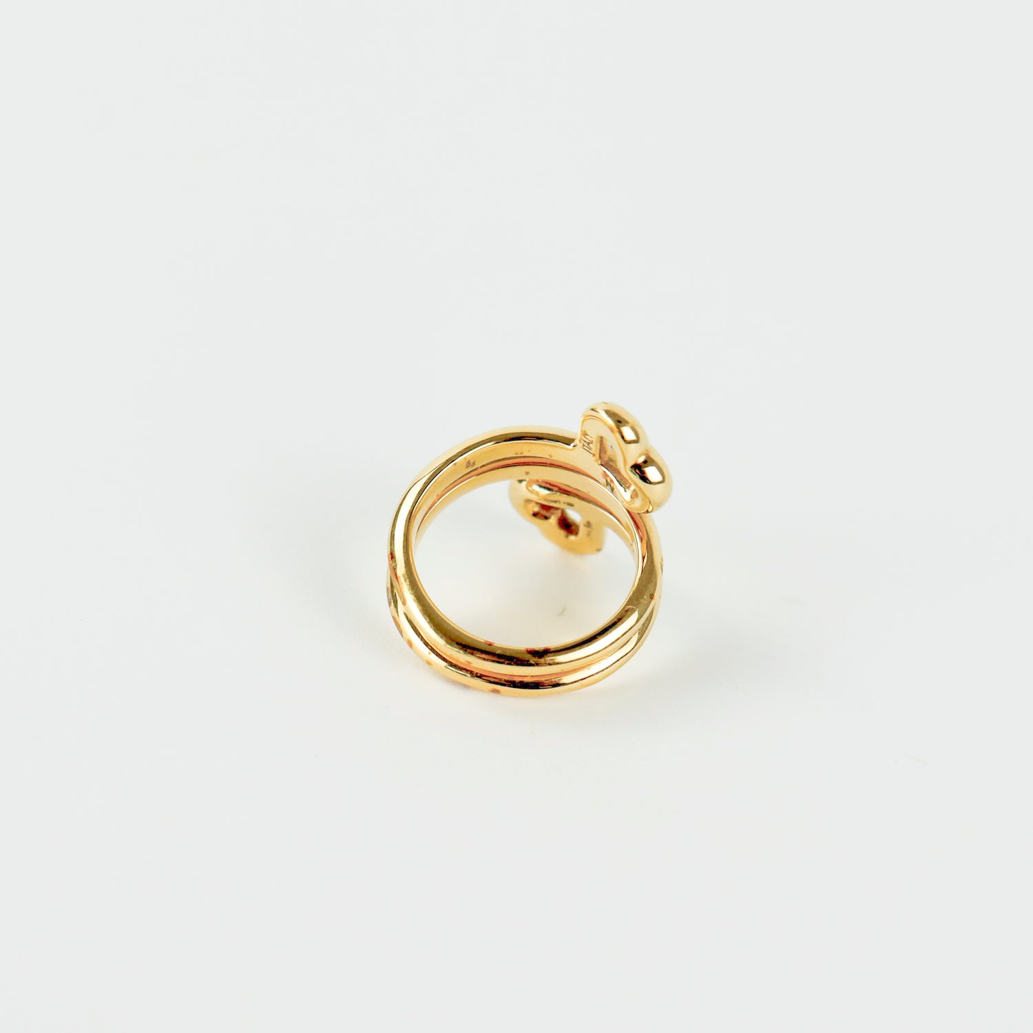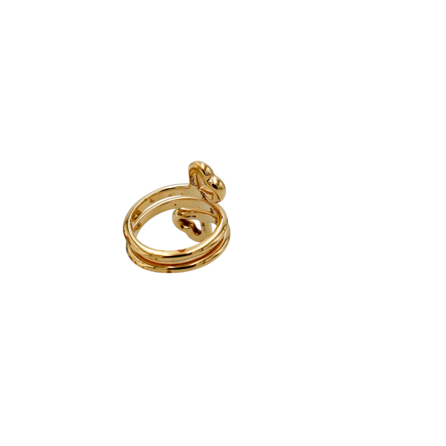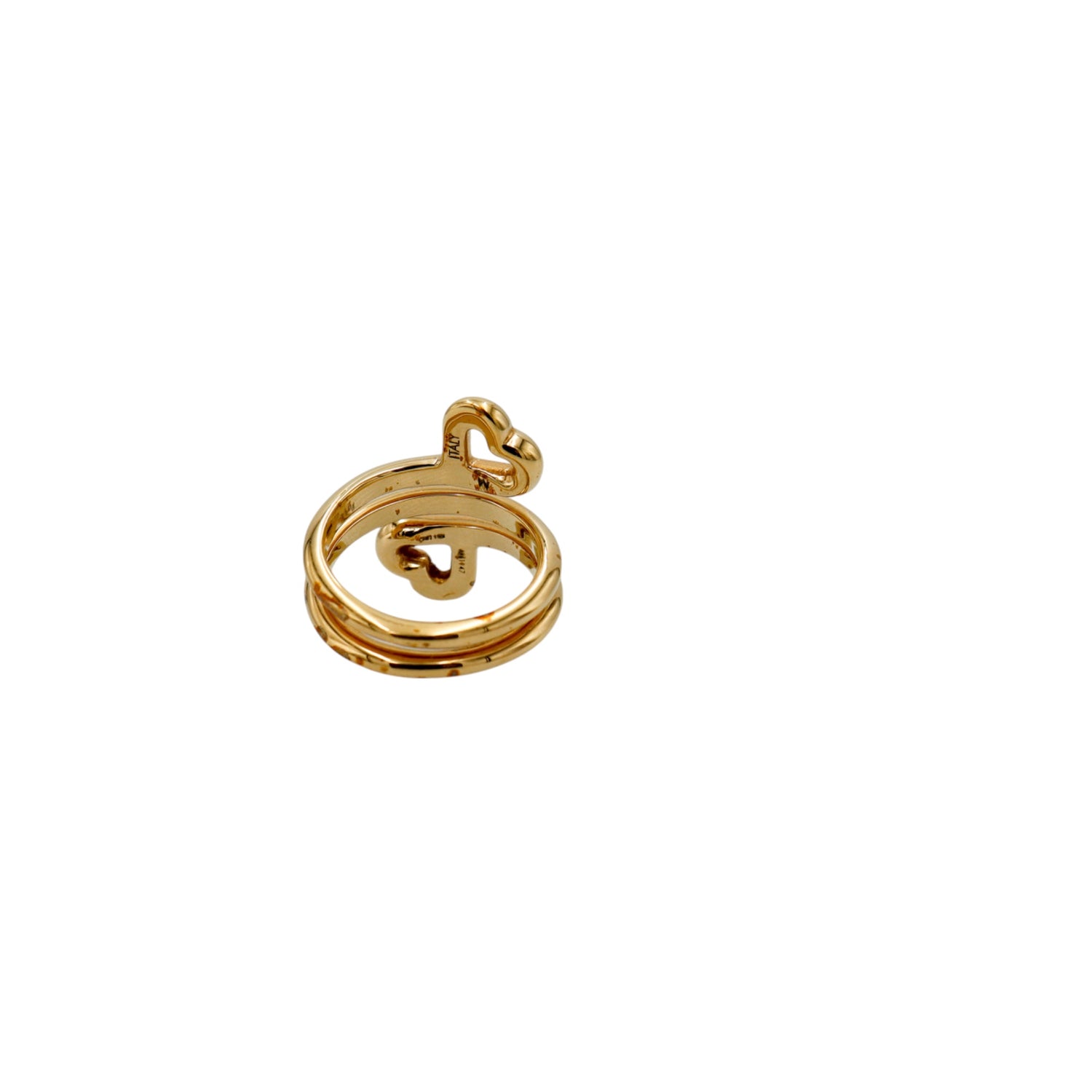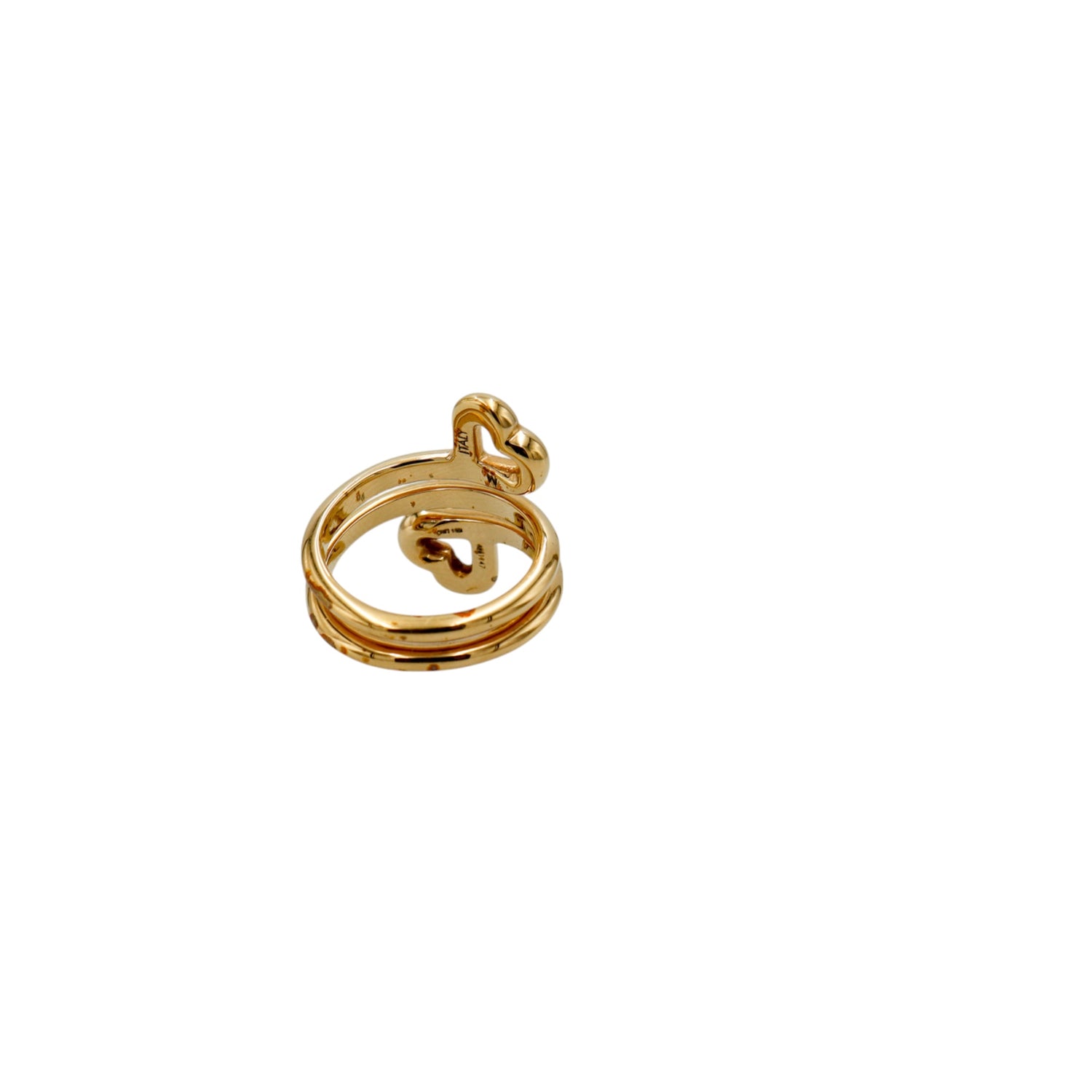 Anillo Louis Vuitton # 6, con diseño de doble corazón en espiral, fabricado en metal con baño dorado.