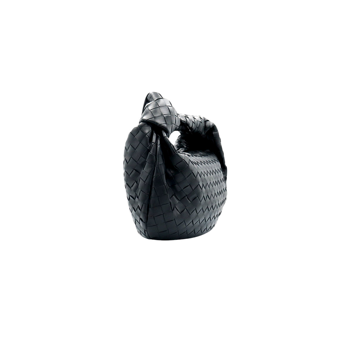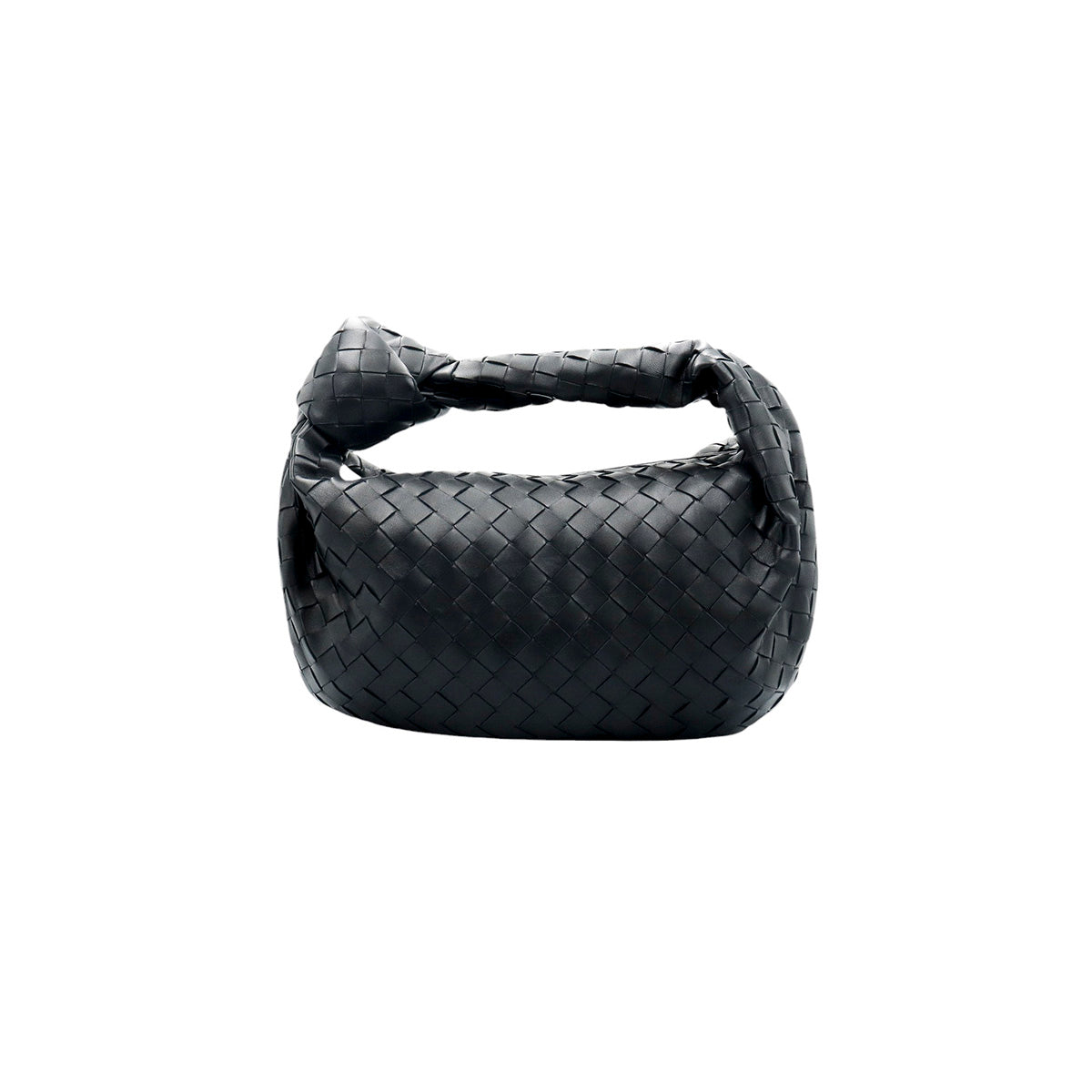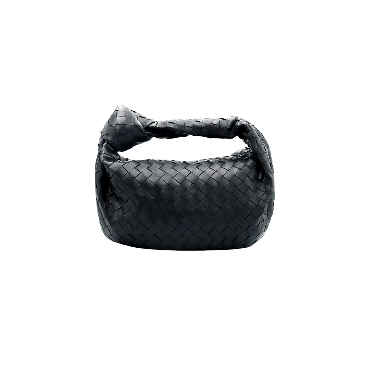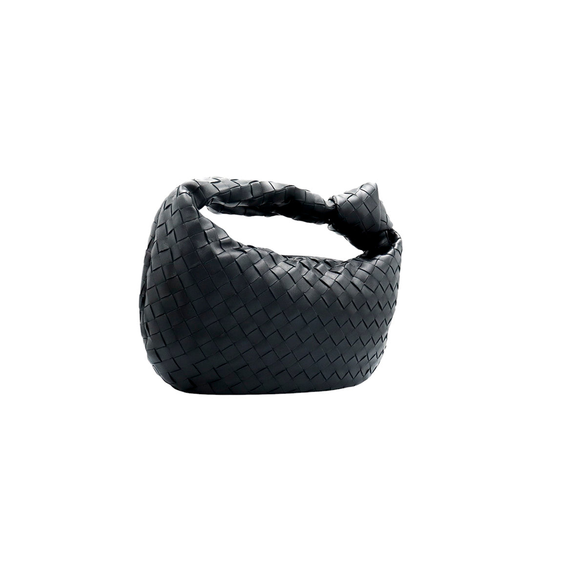 Bolso Bottega Veneta modelo Jodie confeccionado en suave cuero Intrecciato color negro, una sola asa de mismo material y color, forro interno en piel lisa, para lucir en la mano o al hombro, cierre de cremallera en color plata.